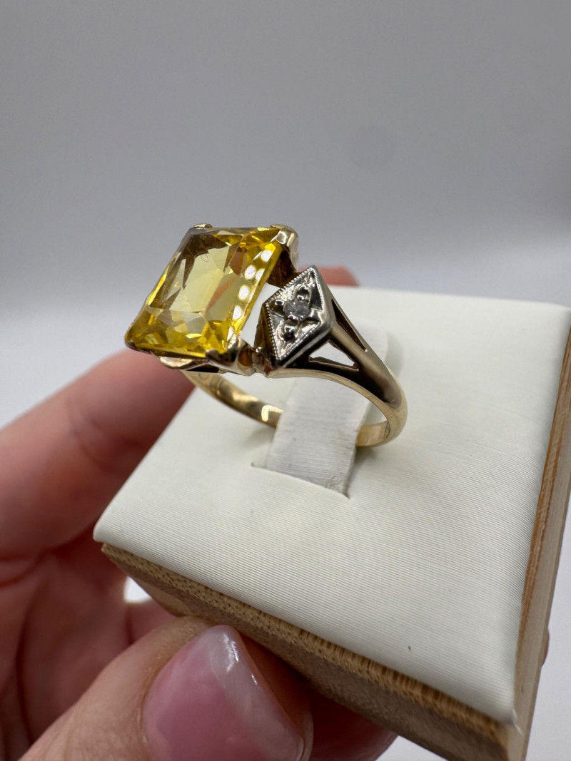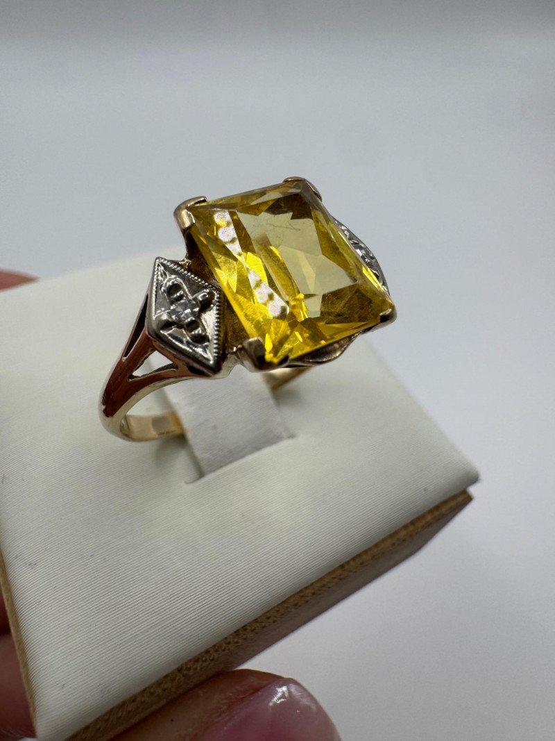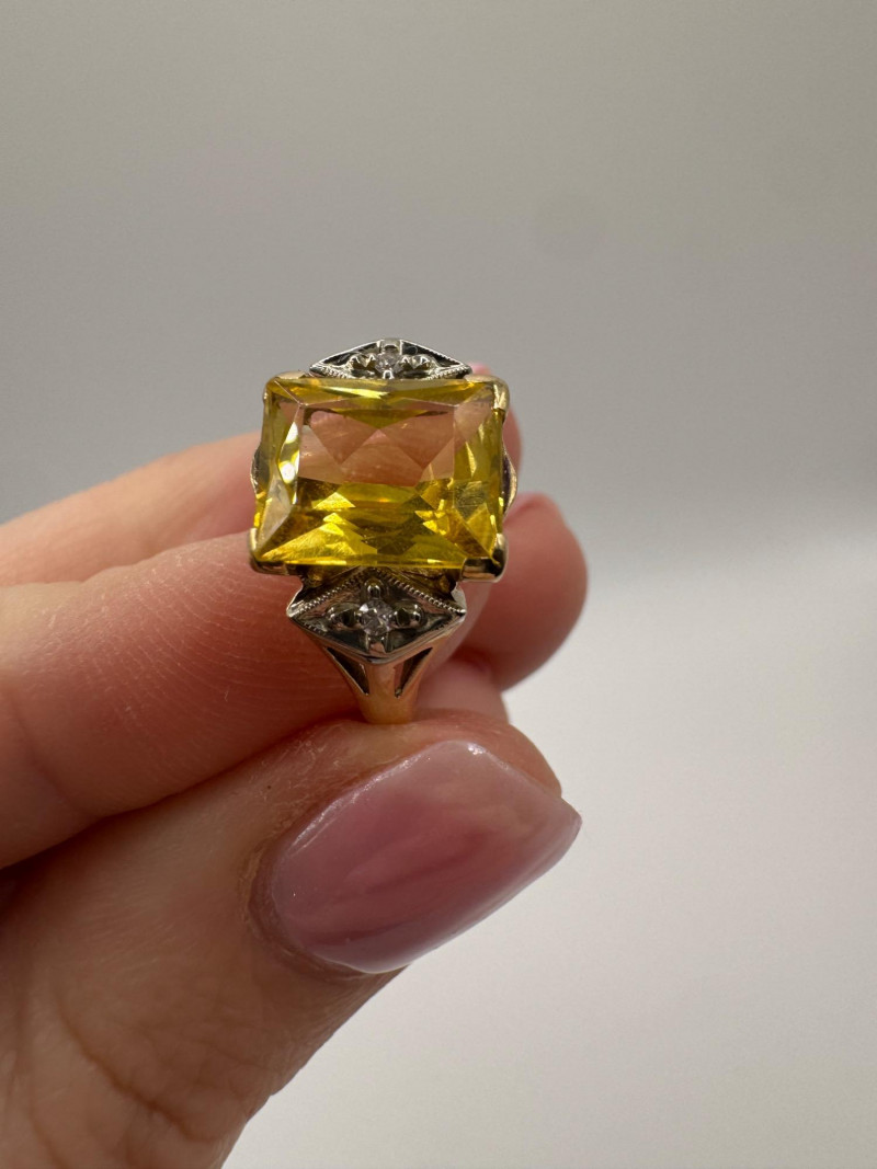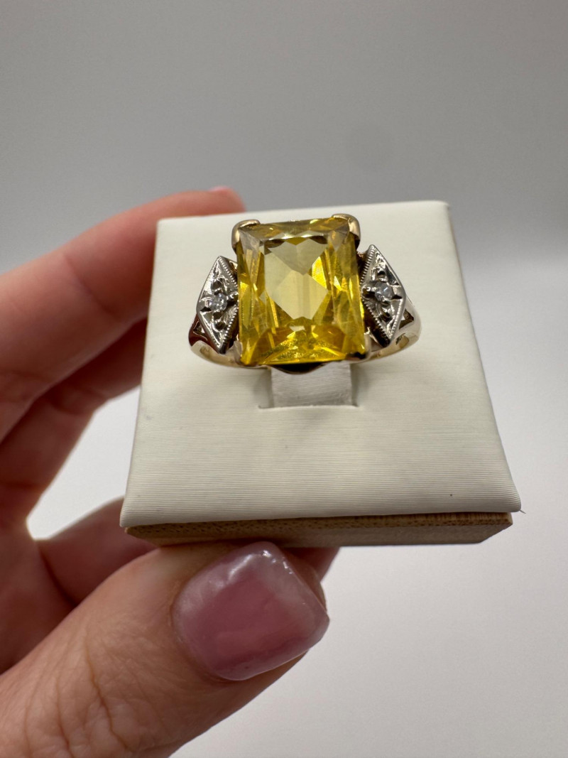 10k Gold Ring w/ Lab Spinel & Diamonds, Size 7.25, 3.38g.
