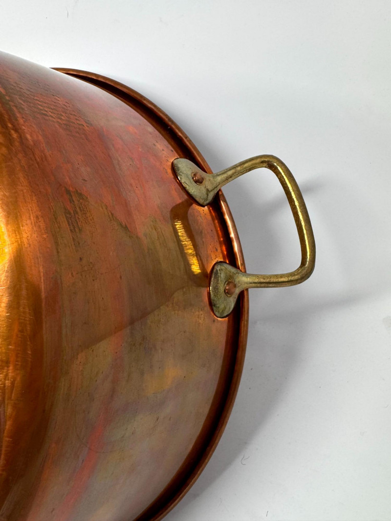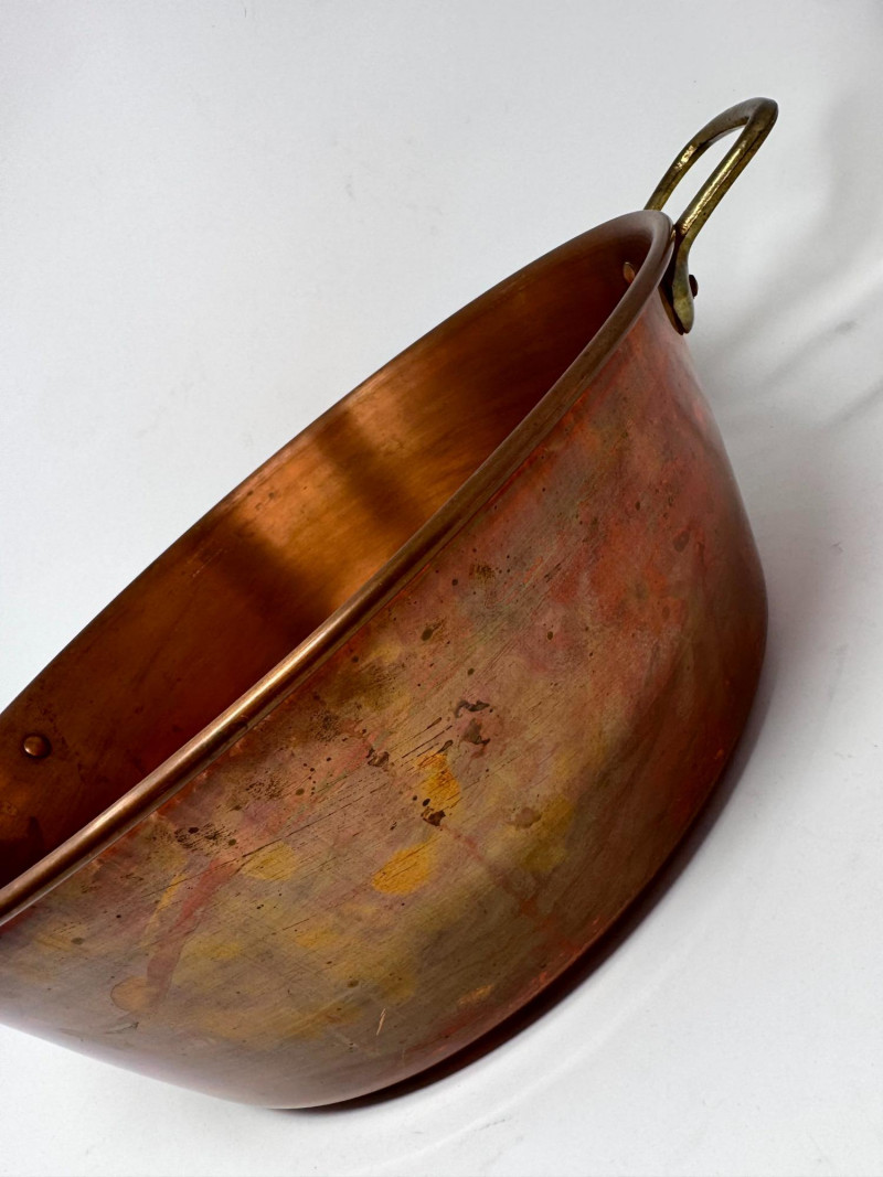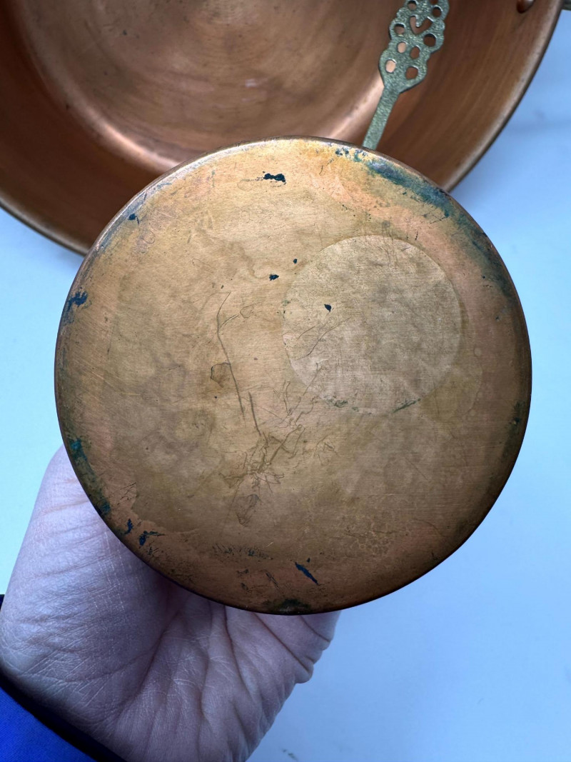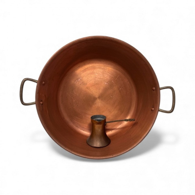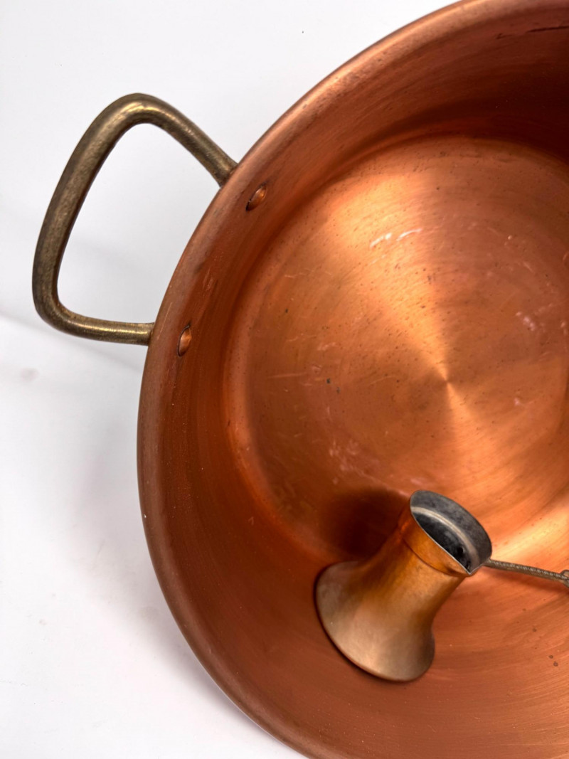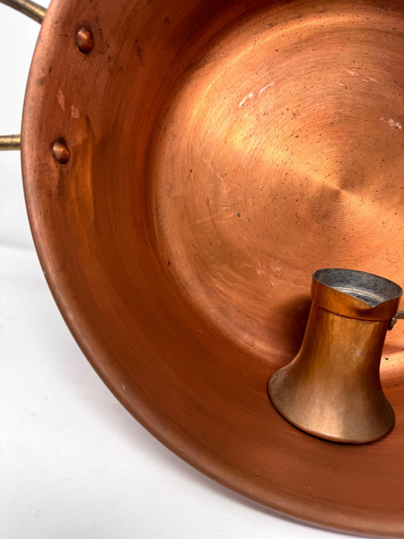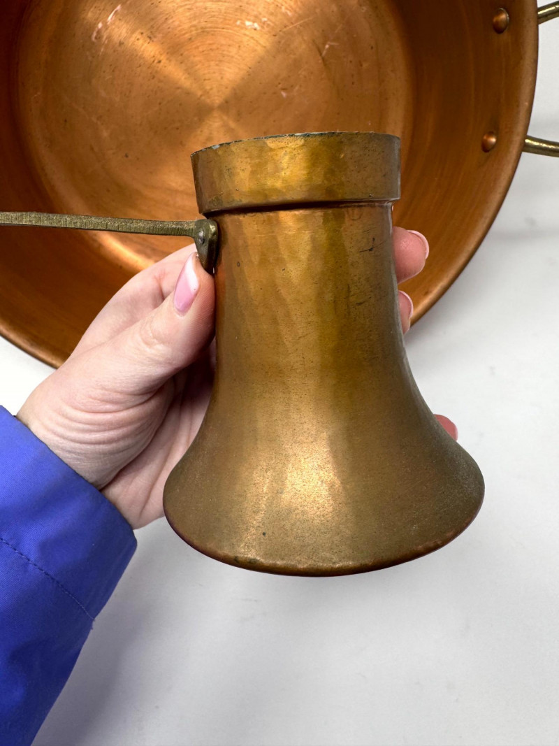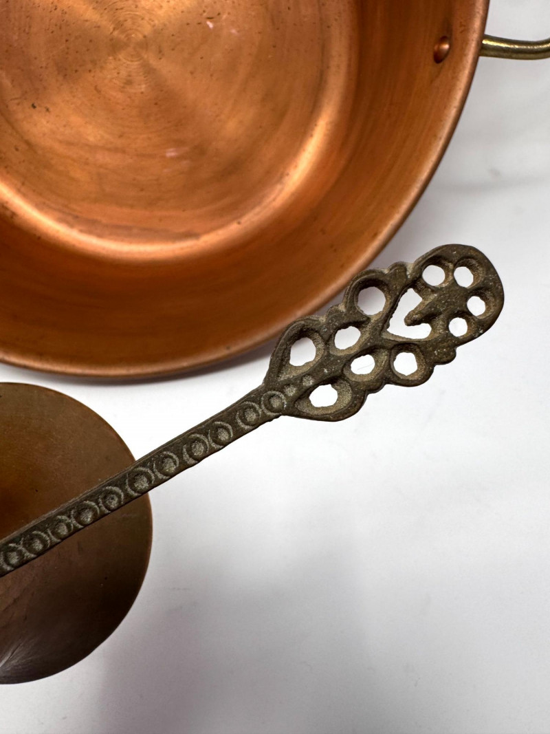 Large Vintage Copper Jam Pot w/ Brass Handles + Small Ladle.