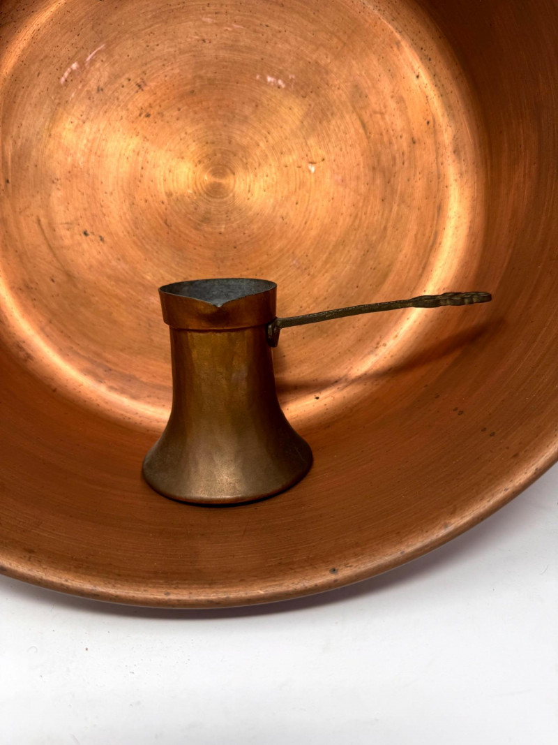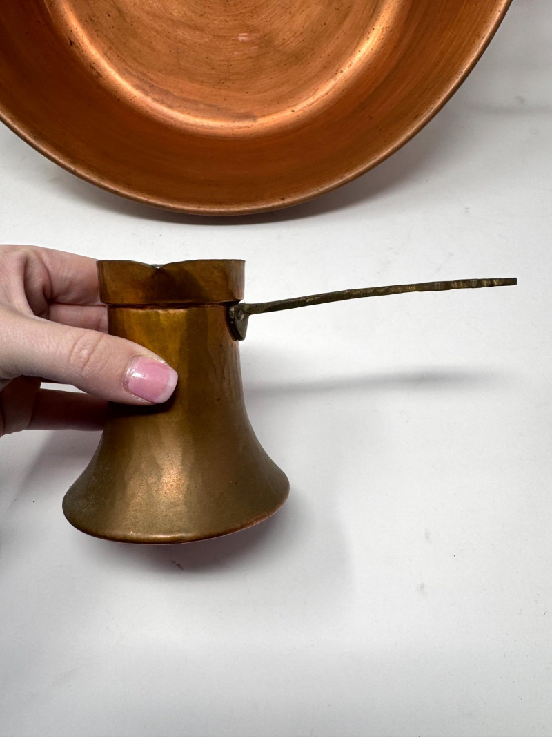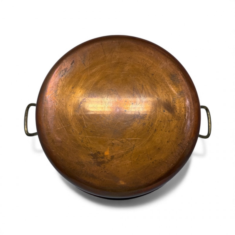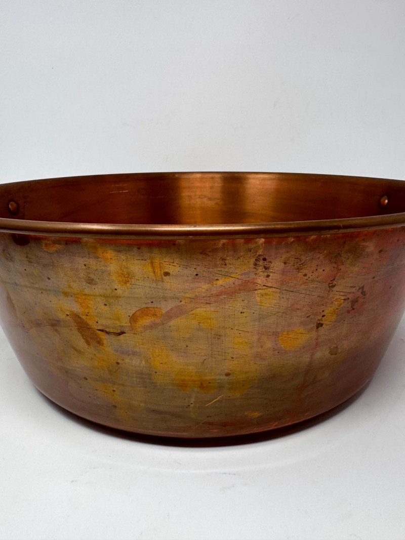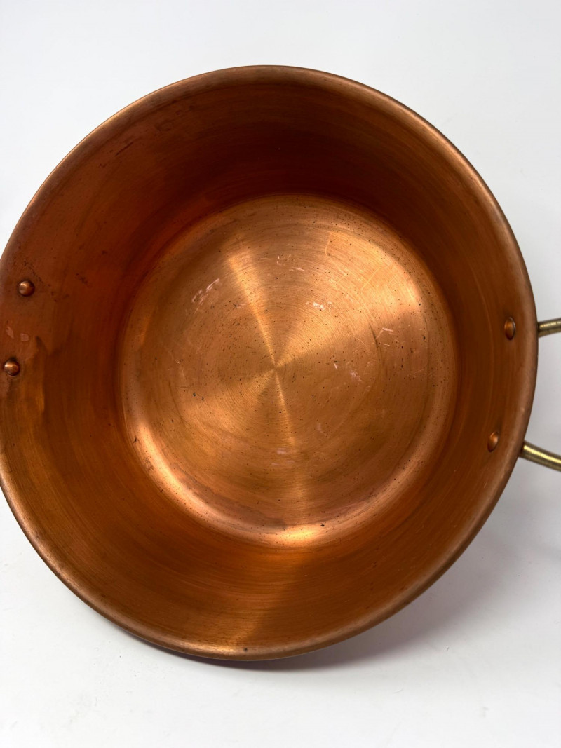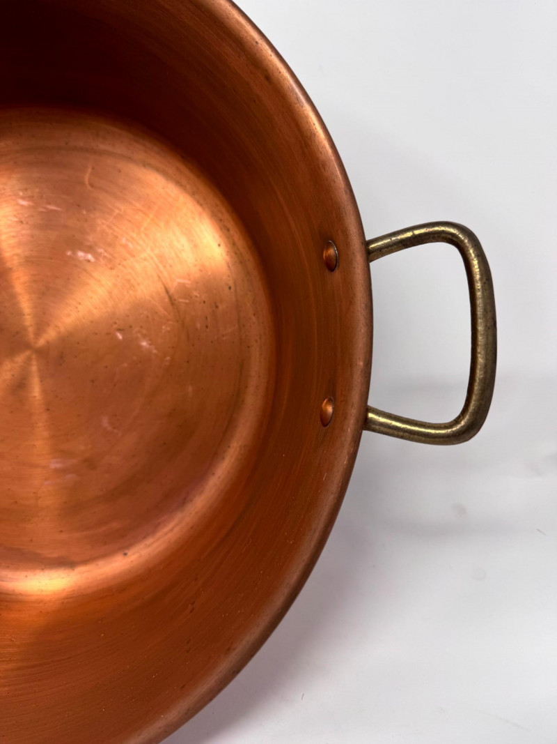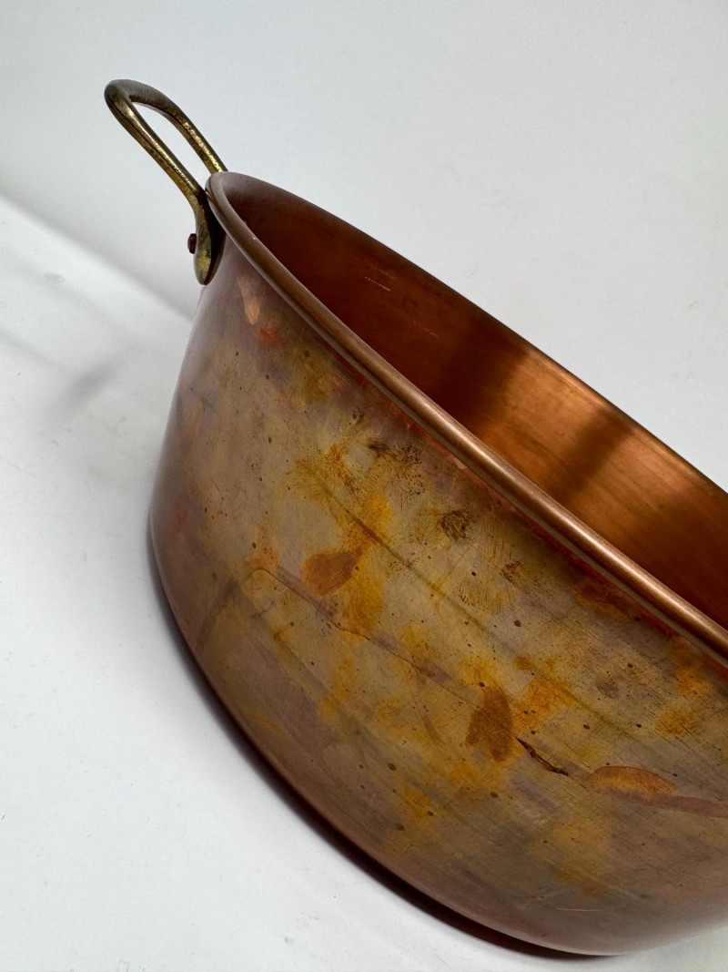 Large Vintage Copper Jam Pot w/ Brass Handles + Small Ladle.
