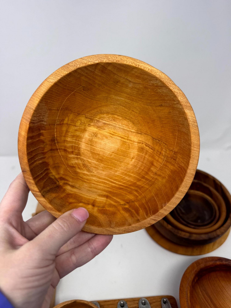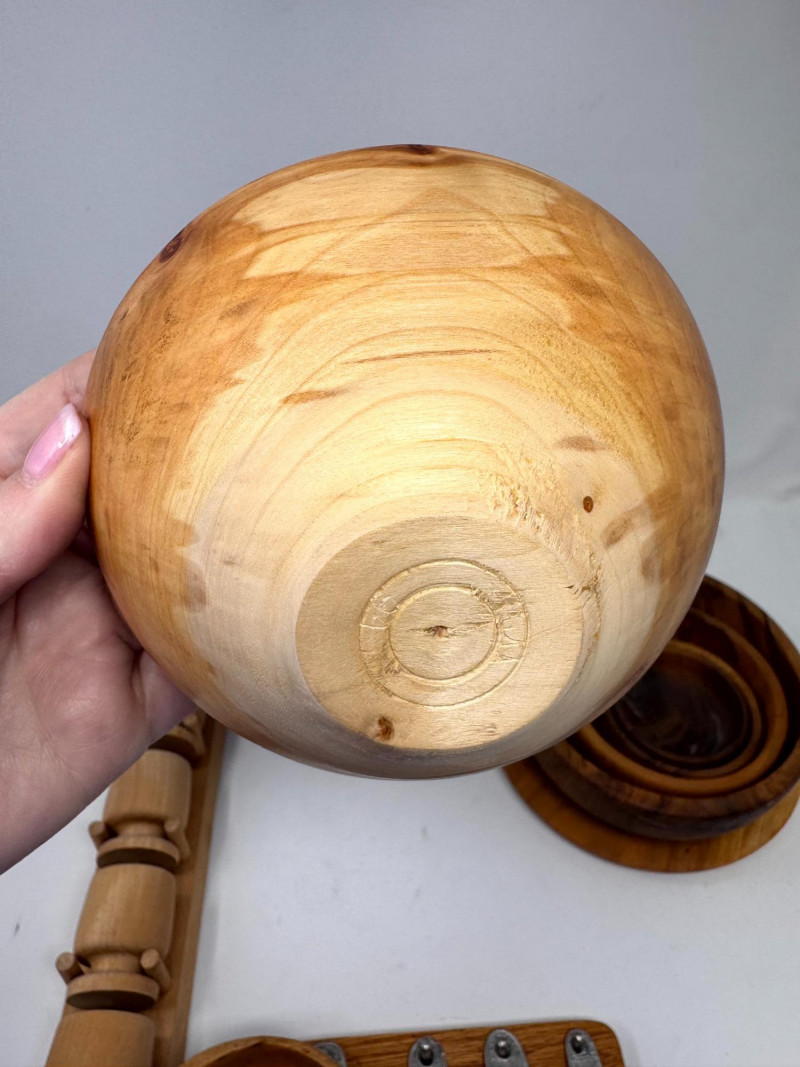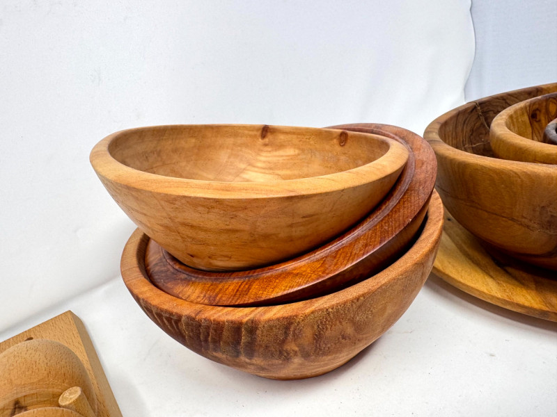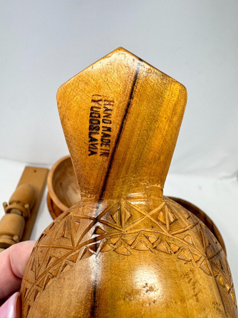Vintage Wood Kitchenware Lot + Pewter Spoons + Egg Cup Rack.