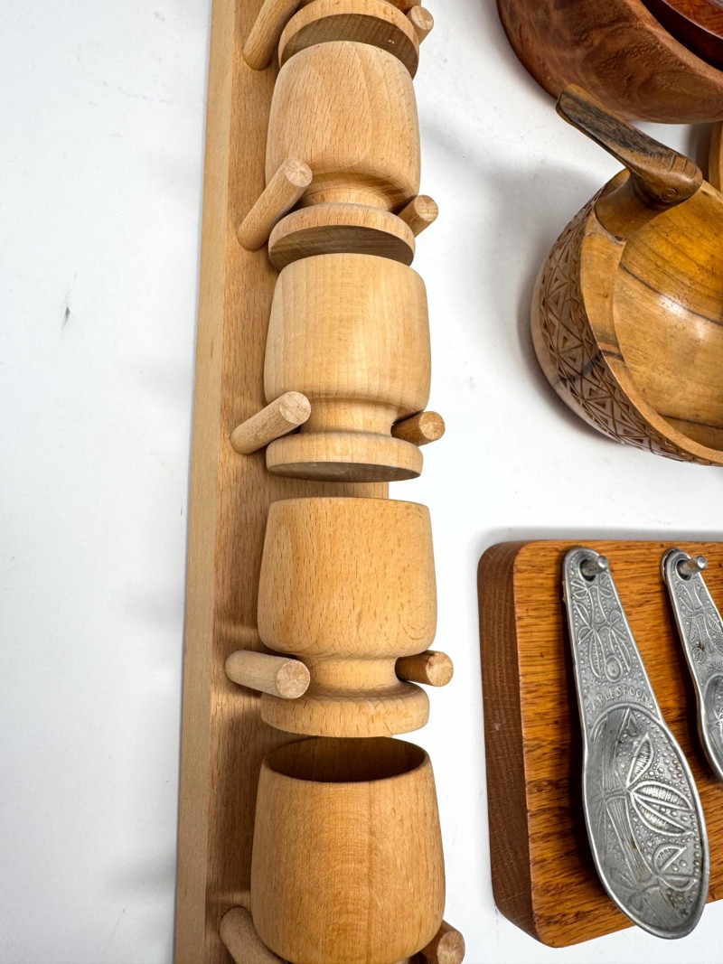 Lot # 62 - Vintage Wood Kitchenware Lot + Pewter Spoons + Egg Cup Rack