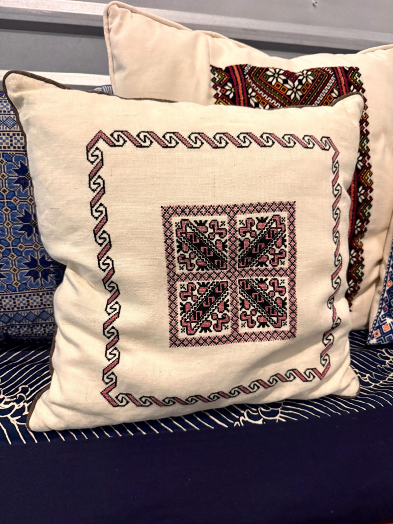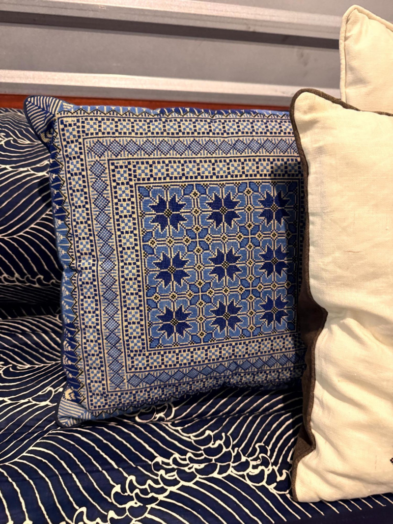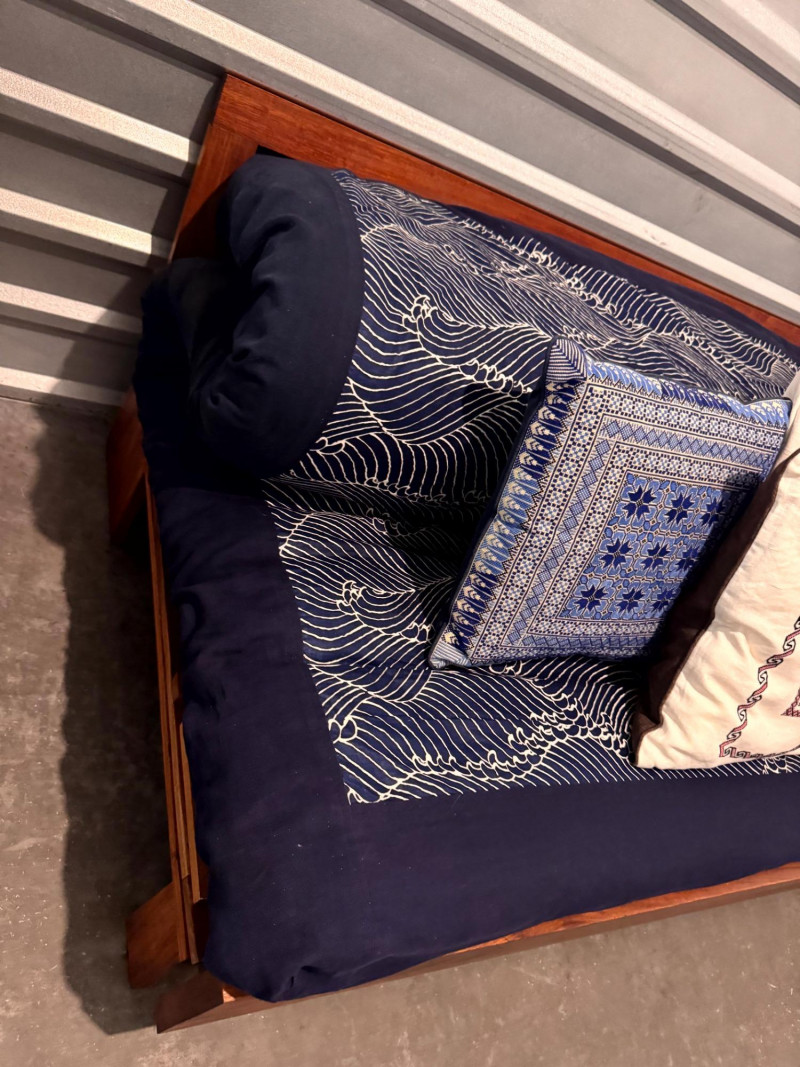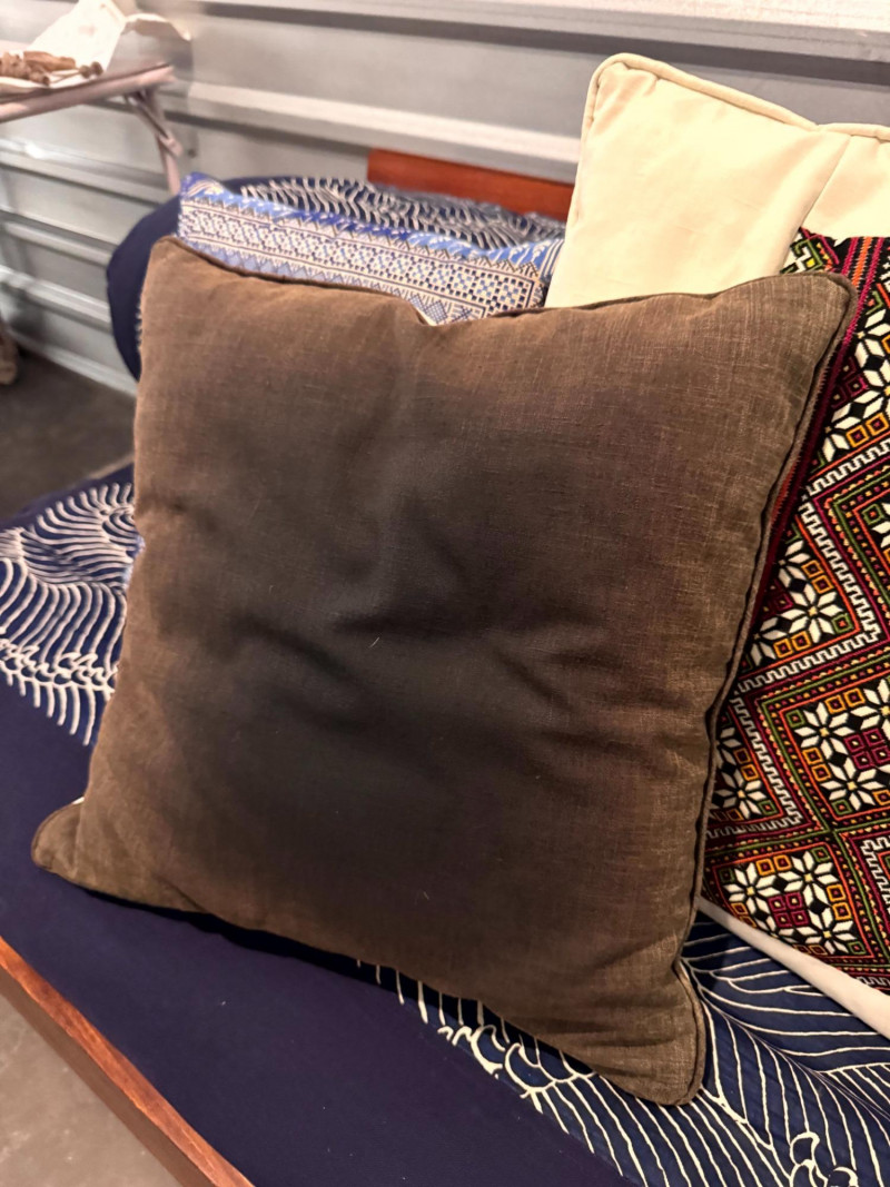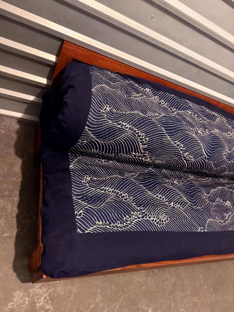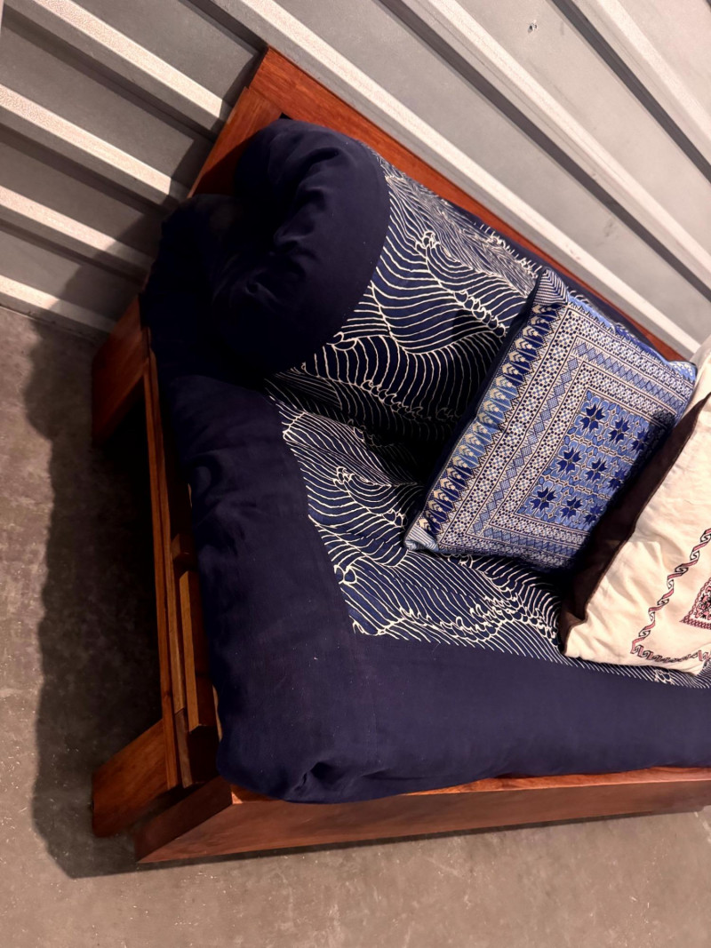 Lot # 75 - Boho-Style Convertible Wood Daybed w/ Hand-Stitched Pillows