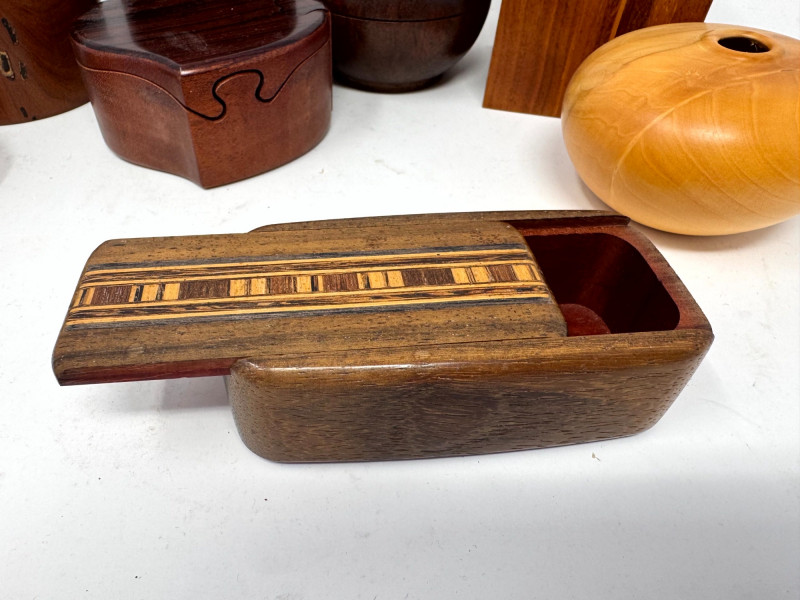 Lot # 82 - Hand-Turned Wood Trinket Boxes - Some Signed Pieces