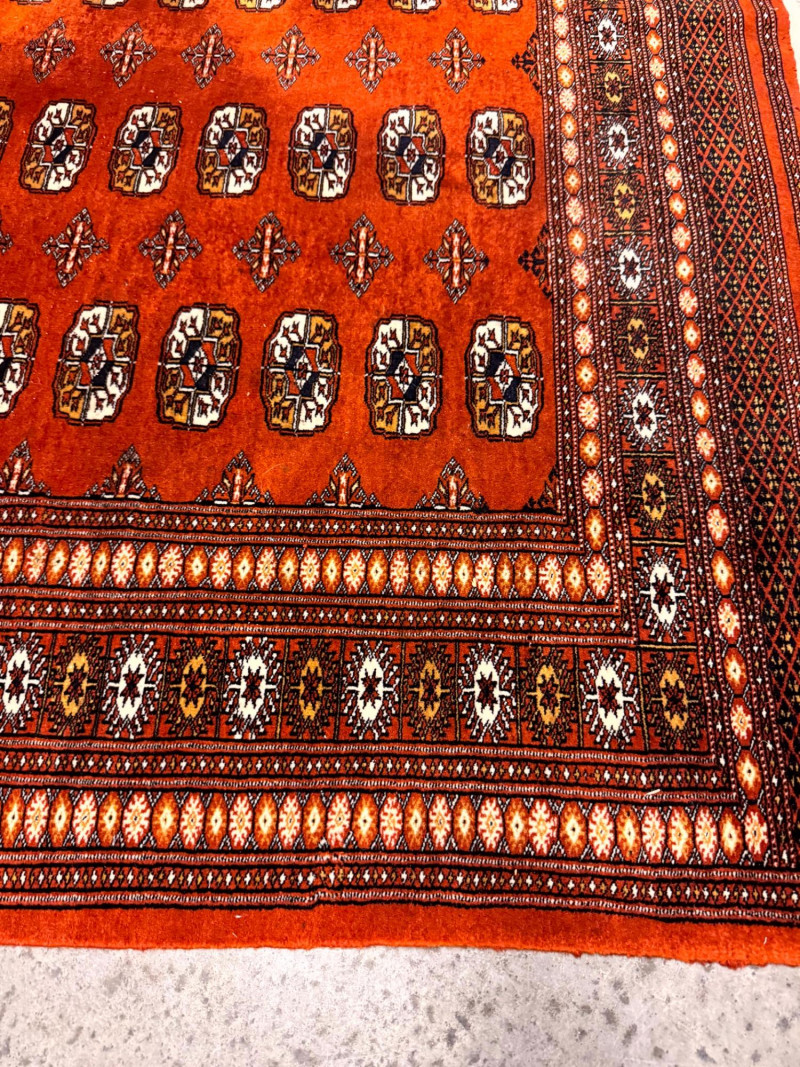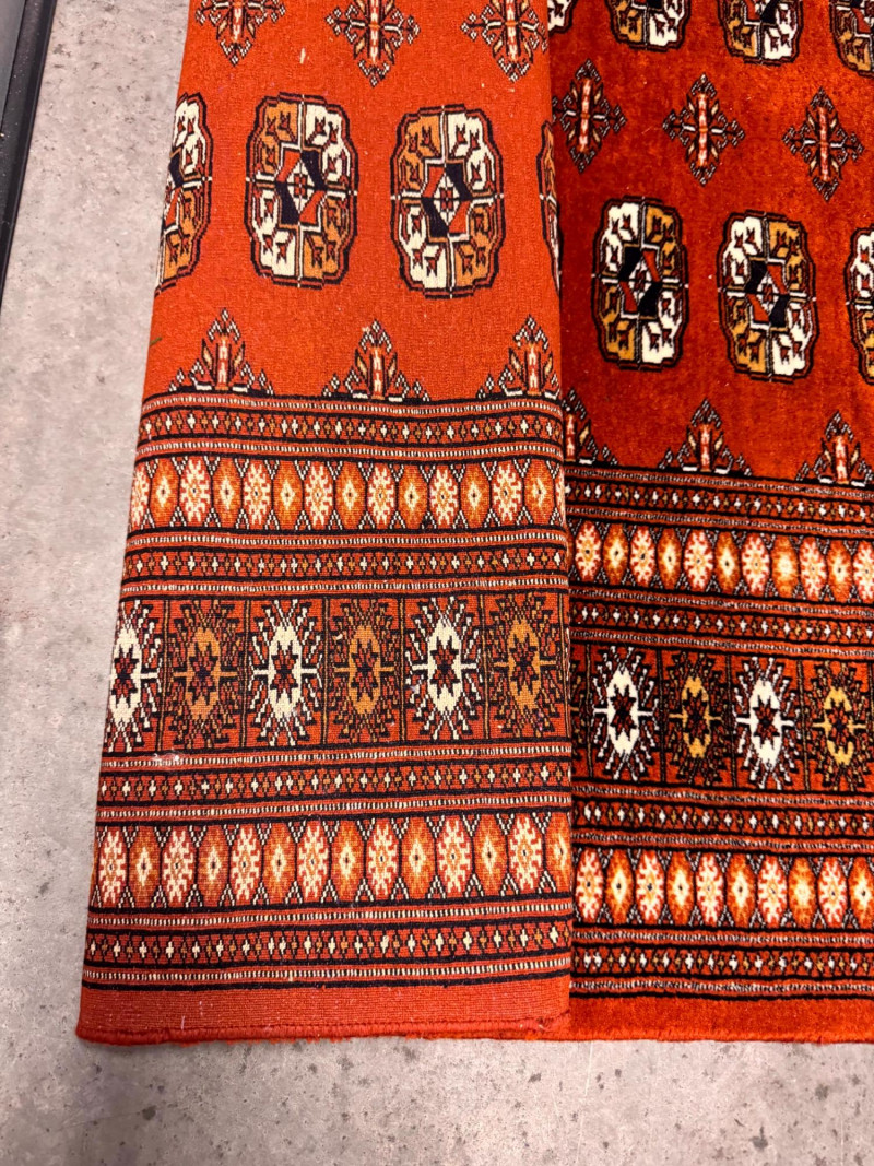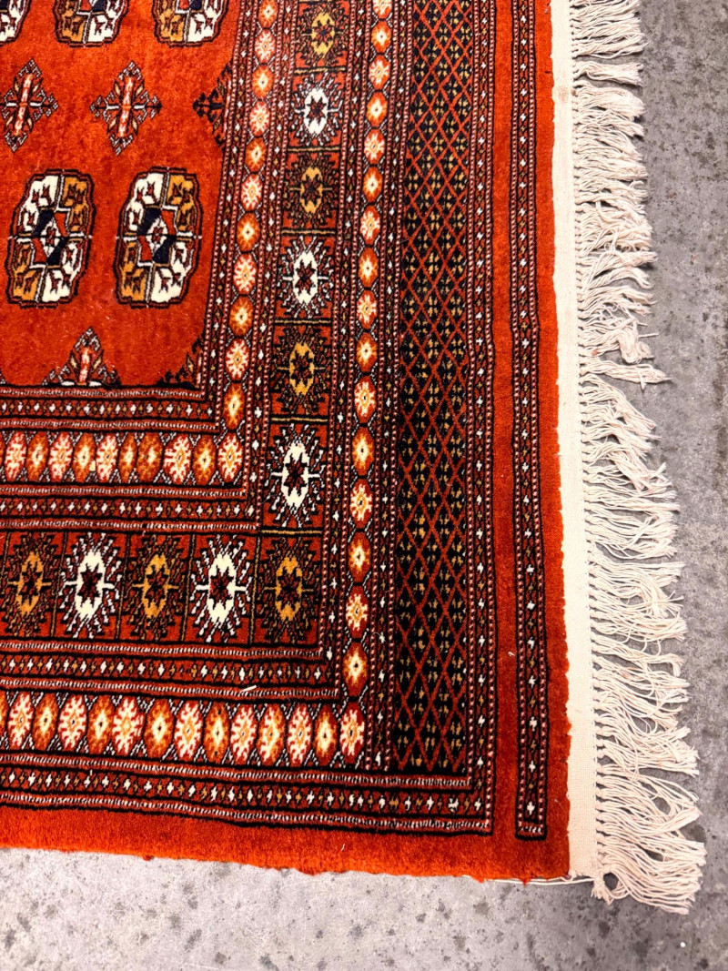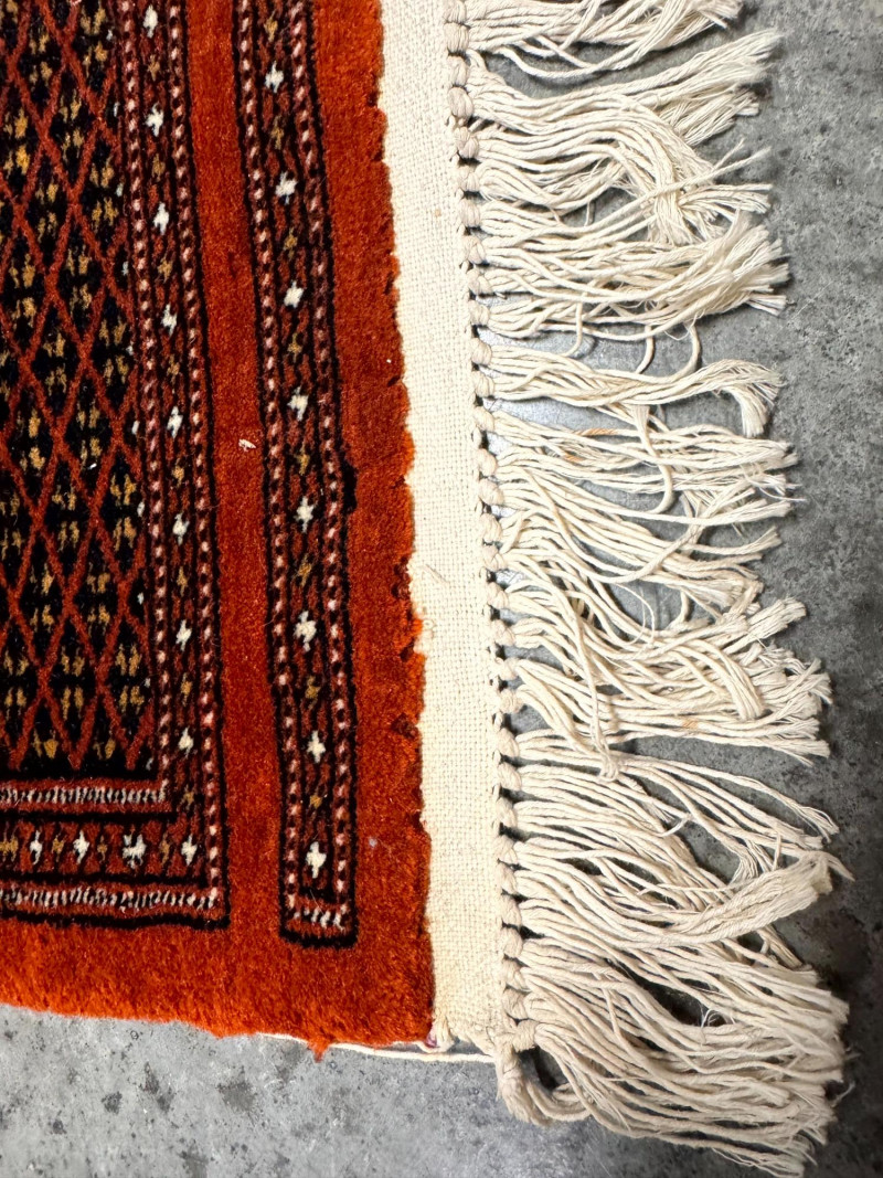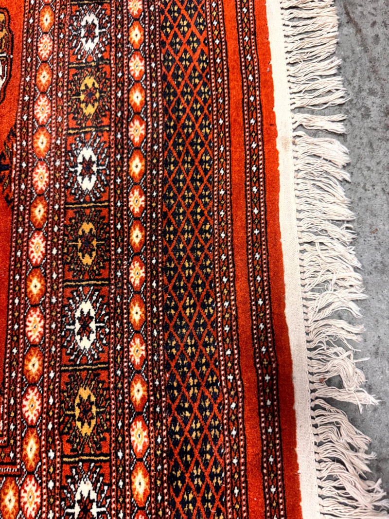 Vintage Wool Area Rug – Burnt Orange & Geometric Pattern. Measurements: