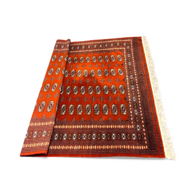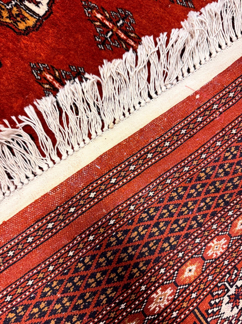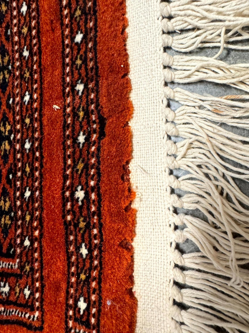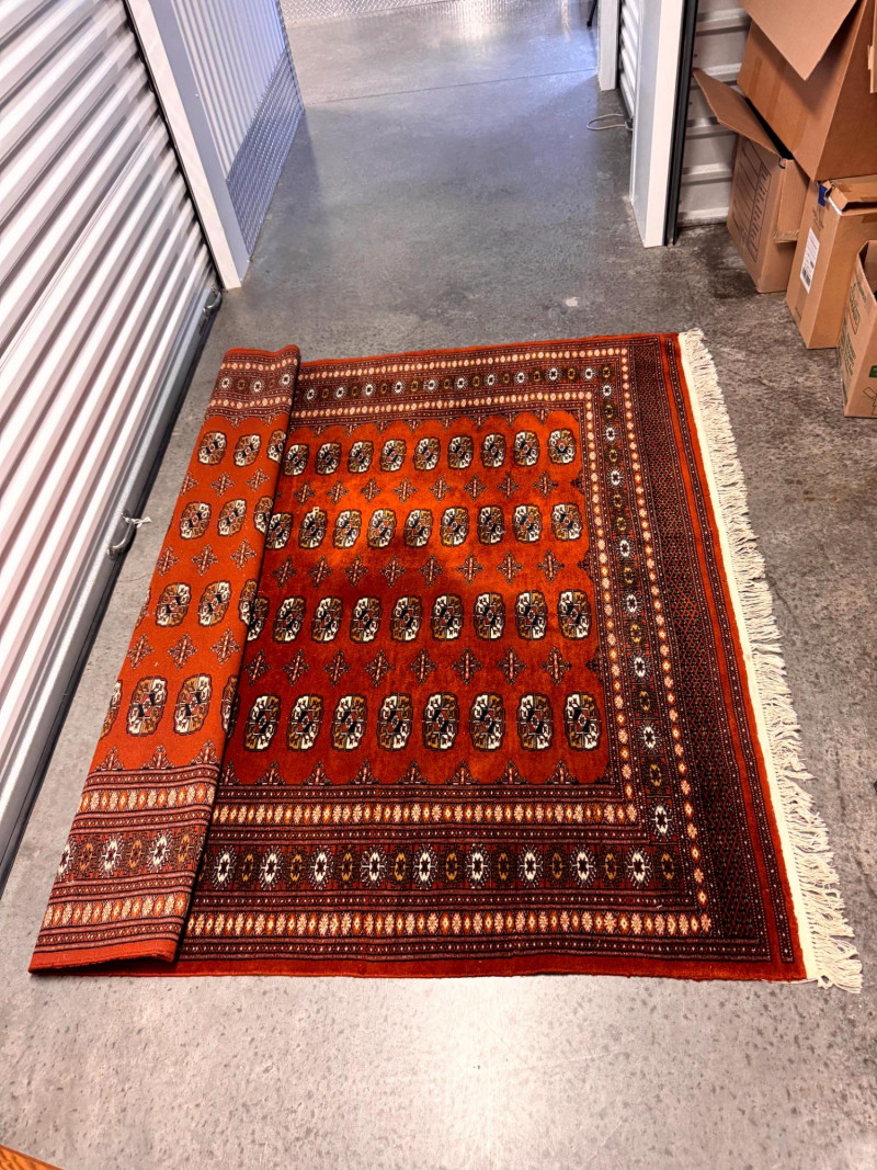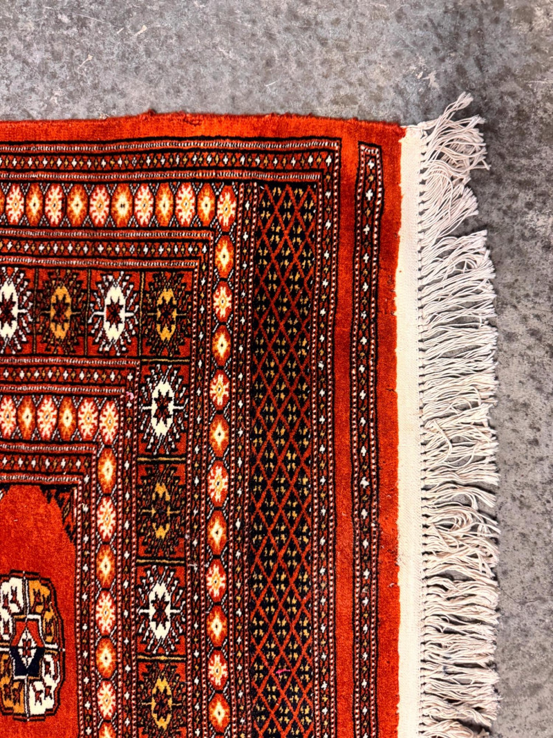 Vintage Wool Area Rug – Burnt Orange & Geometric Pattern. Measurements: