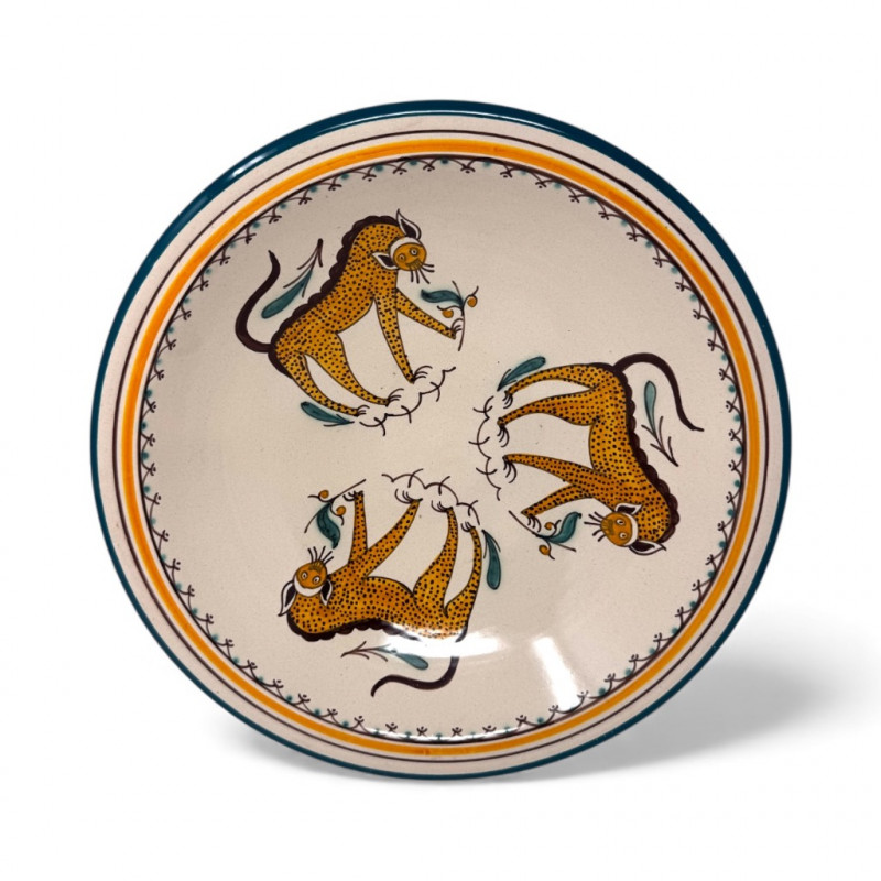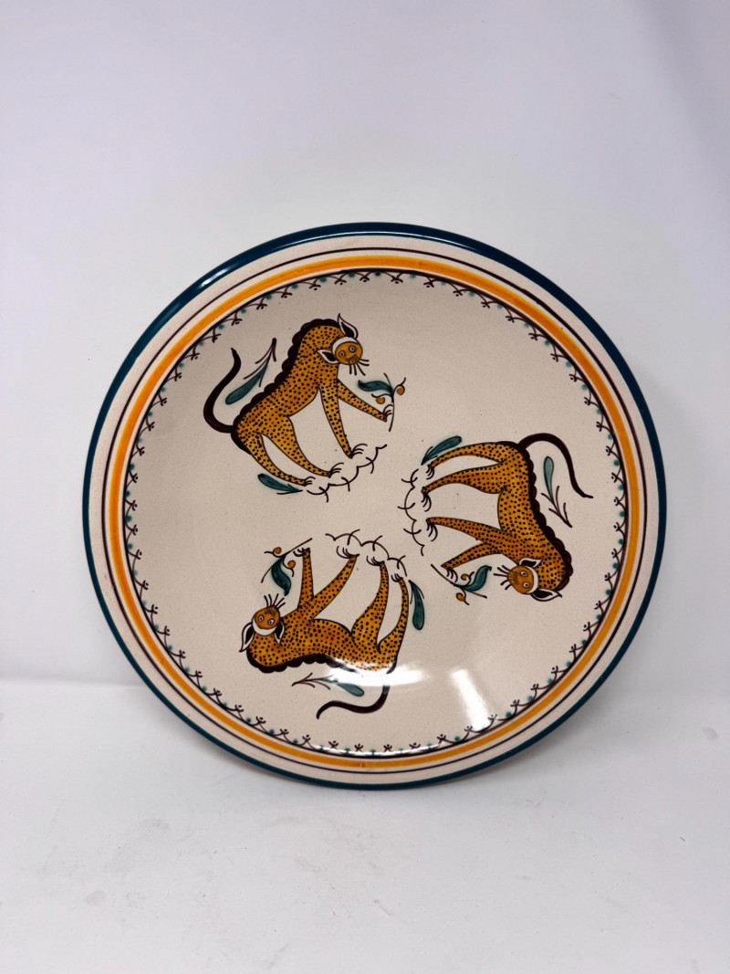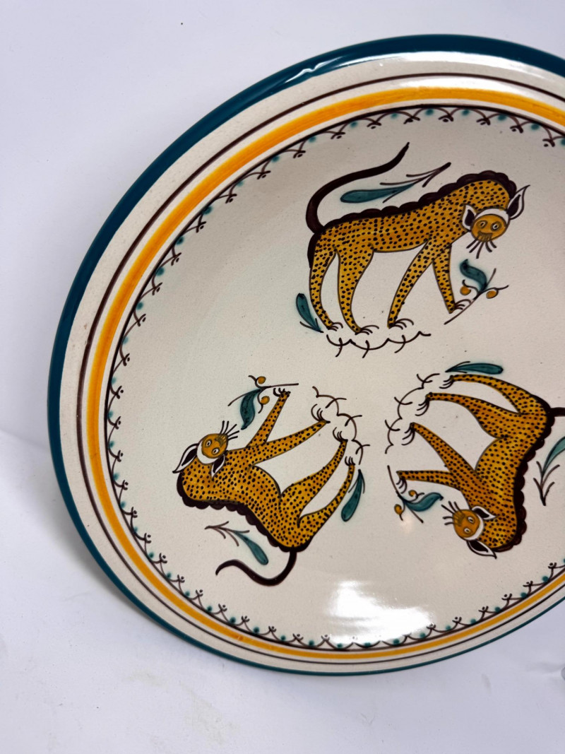 Large Hand-Painted Serving Bowl – Folk-Art Big Cat Motif.