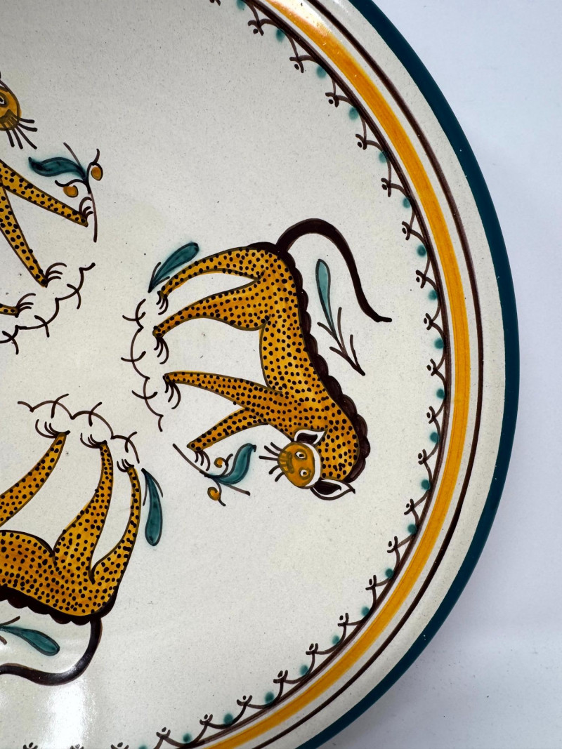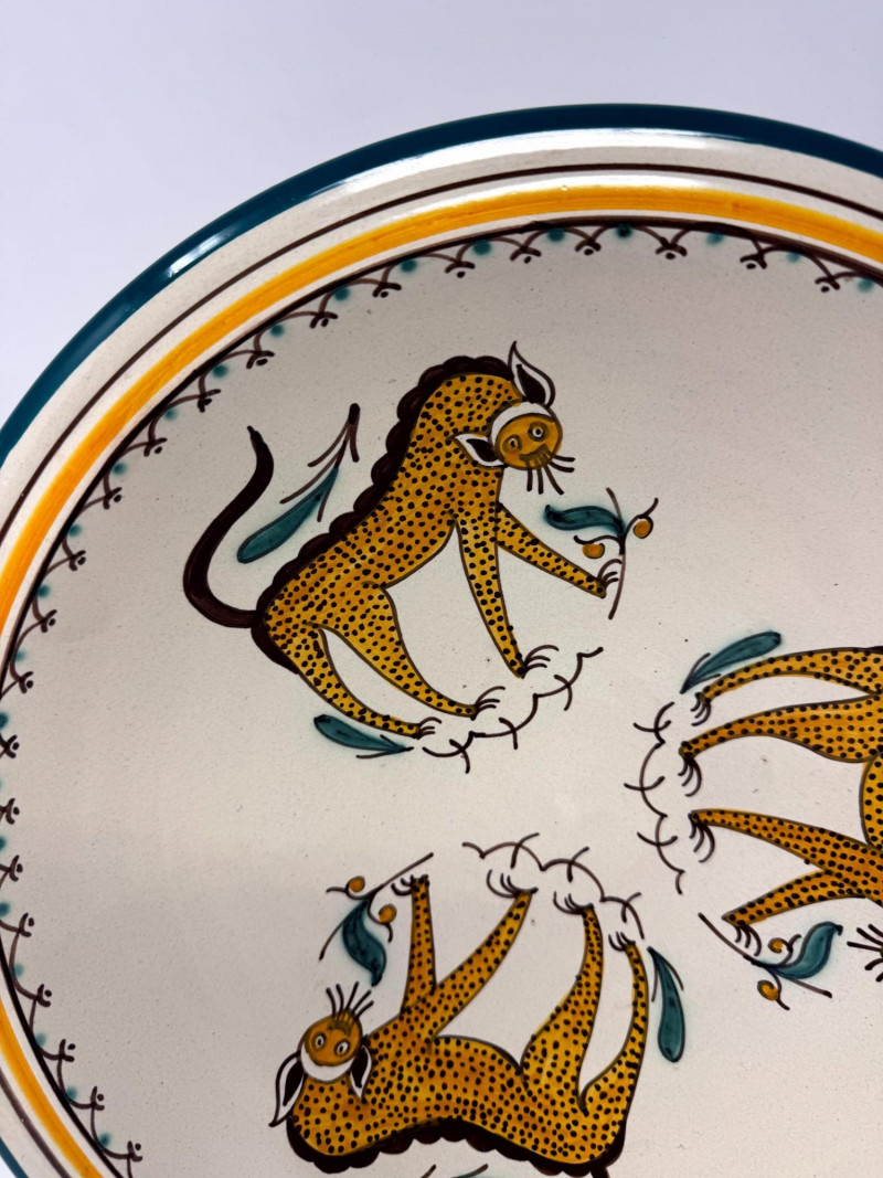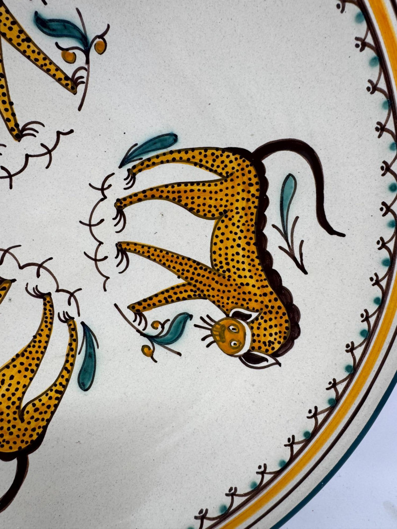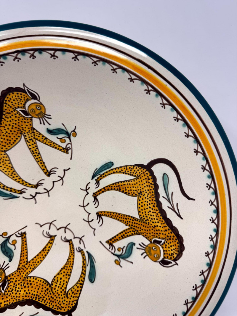 Lot # 85 - Large Hand-Painted Serving Bowl – Folk-Art Big Cat Motif