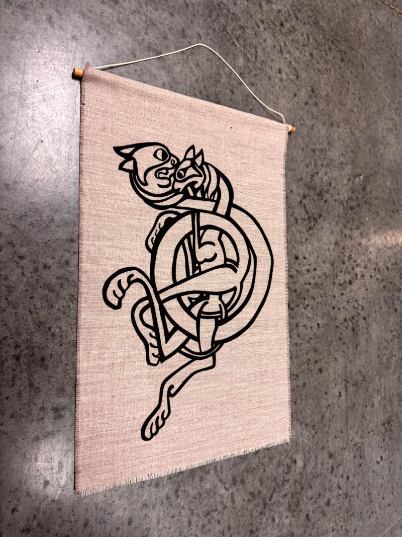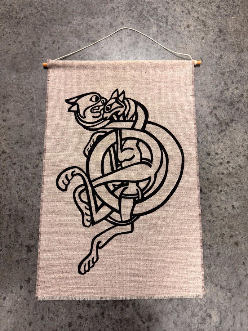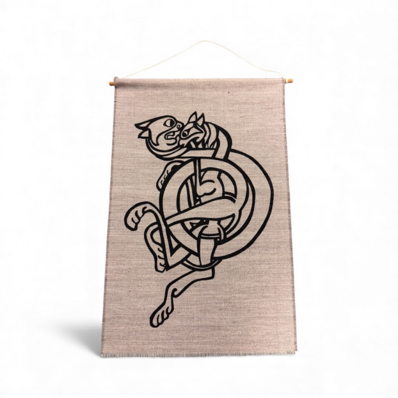 Celtic Knot Cat-Beast Wall Hanging Textile Art.