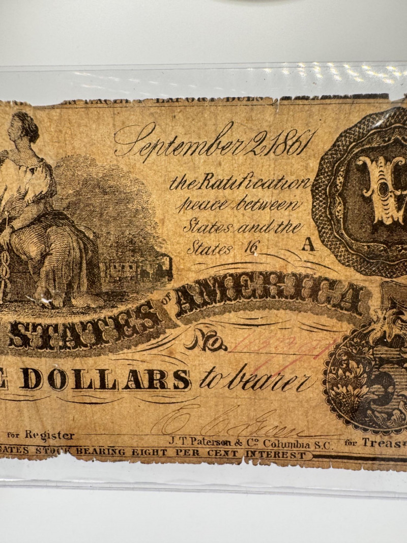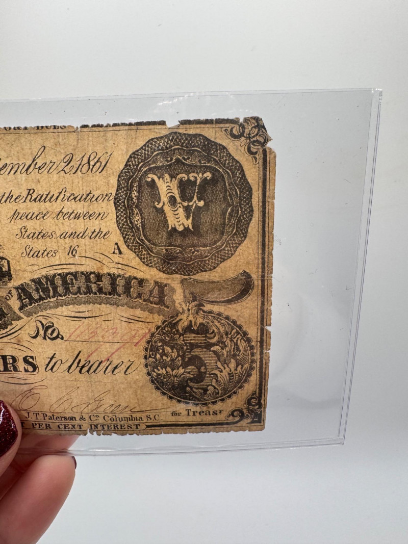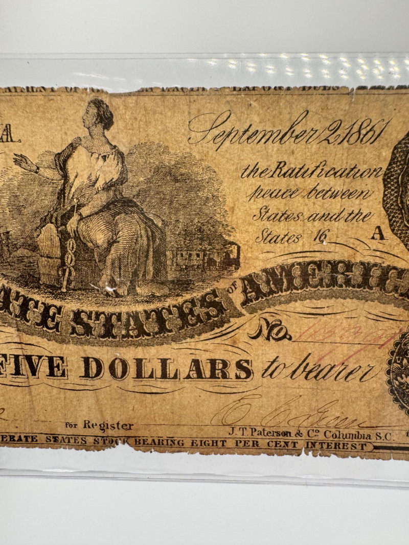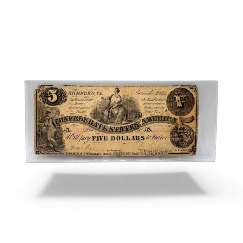 1861 Confederate $5 Richmond Note – Authentic Civil War Currency.