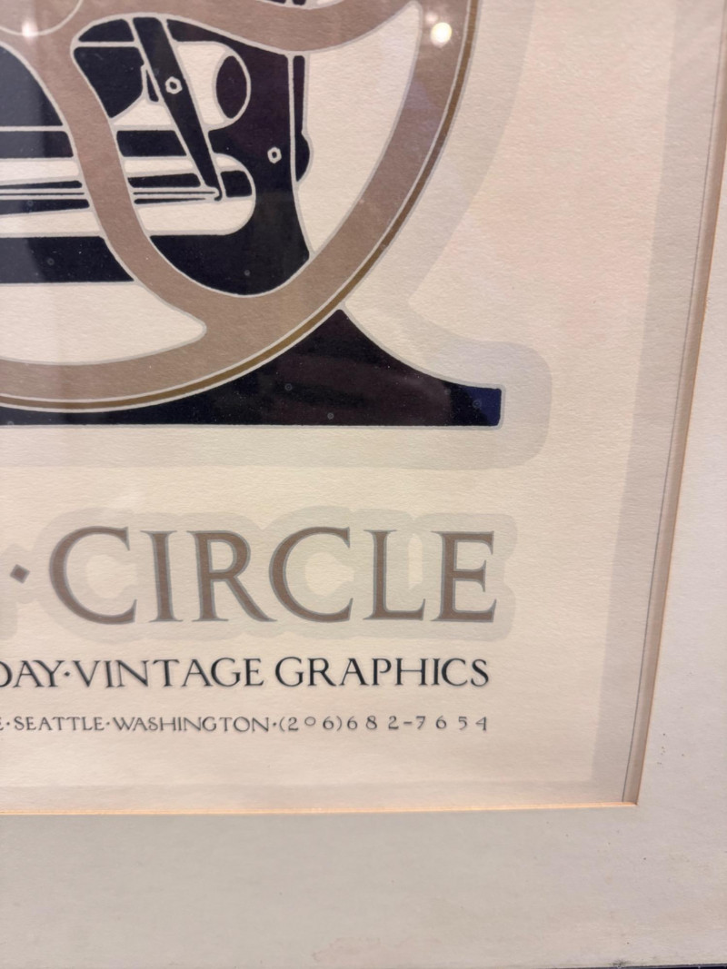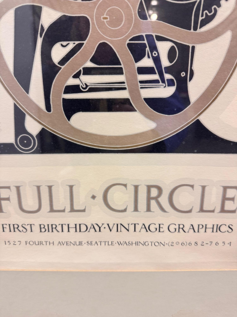 David Lance Goines 1936 Full Circle Poster Print. • Framed print titled “Full Circle – First Birthday: Vintage Graphics”