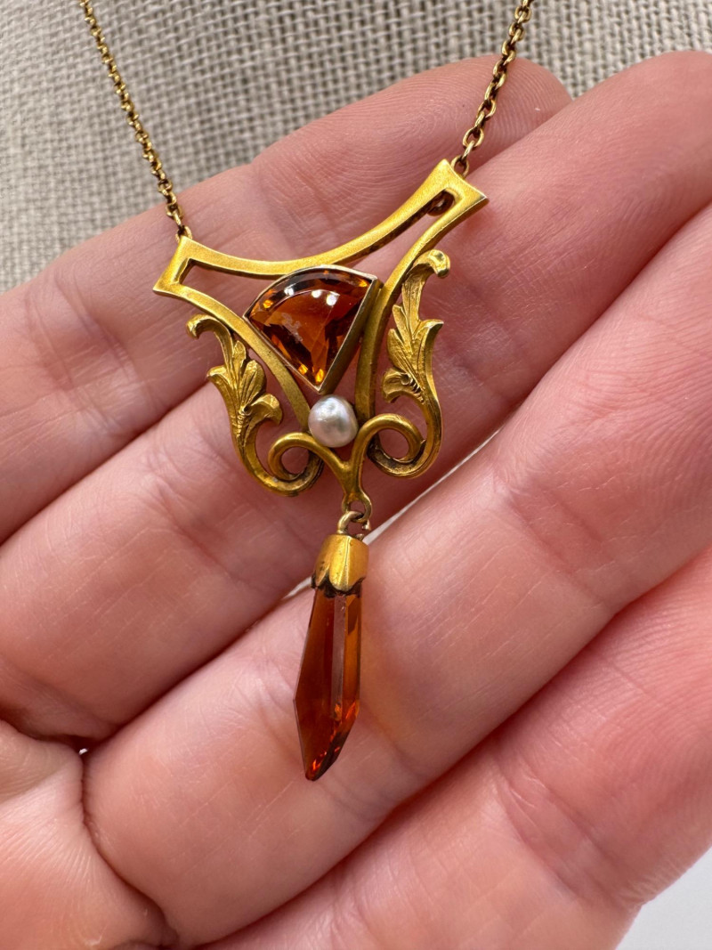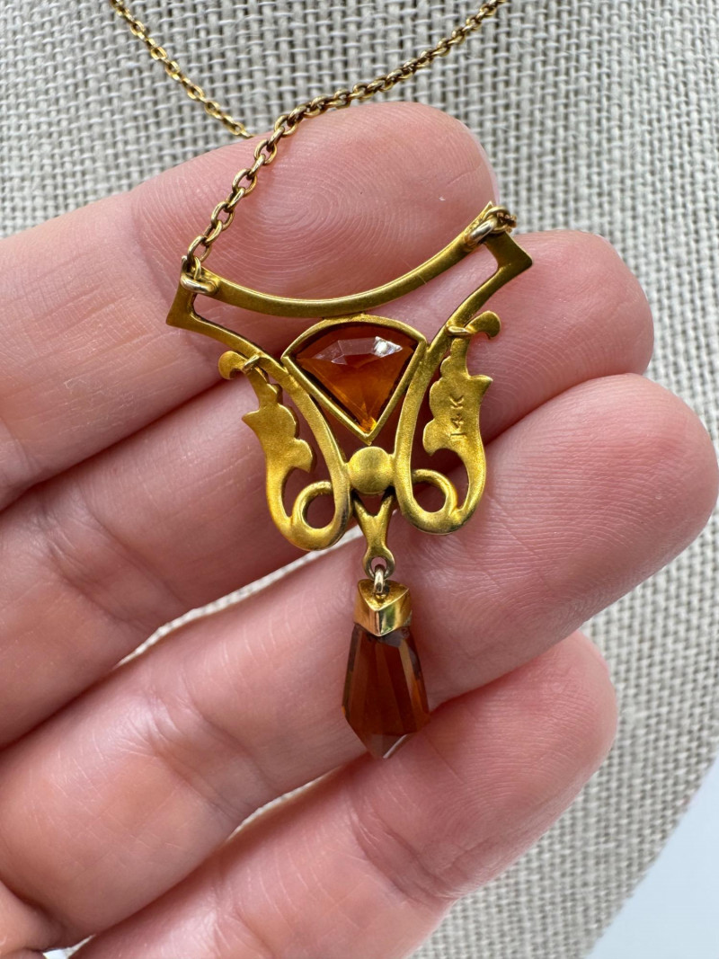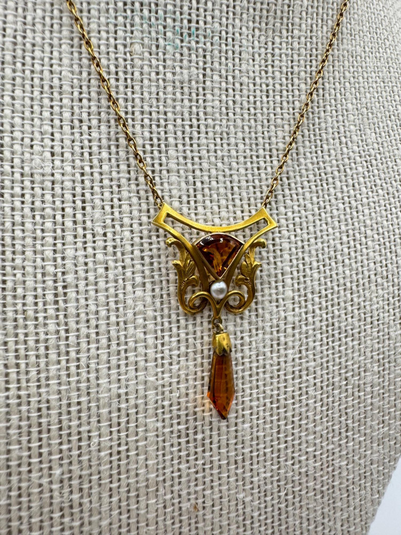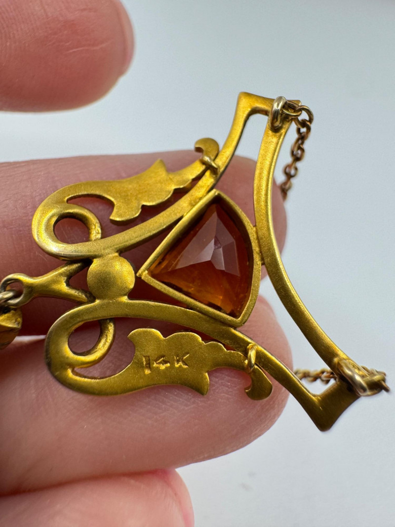 Vintage 14K & Citrine Art Nouveau Pendant Necklace- 5.07 Grams