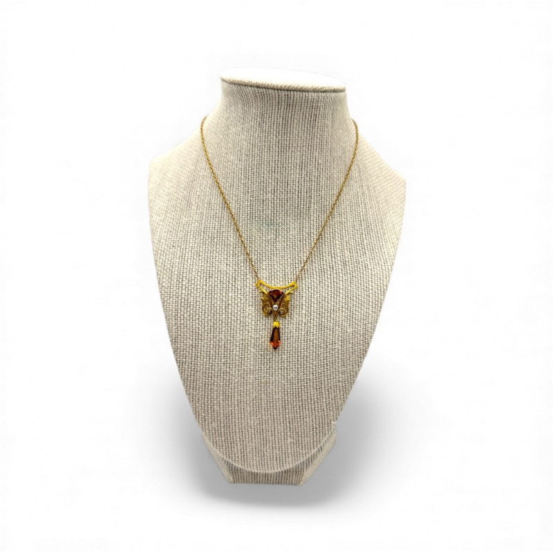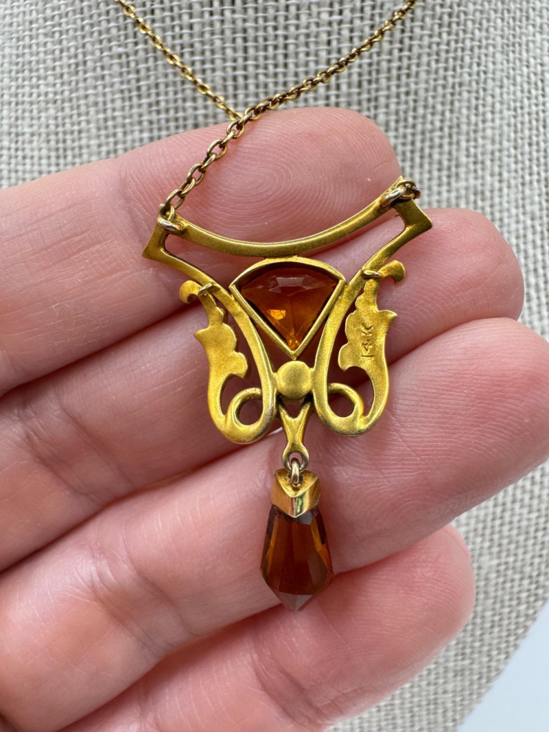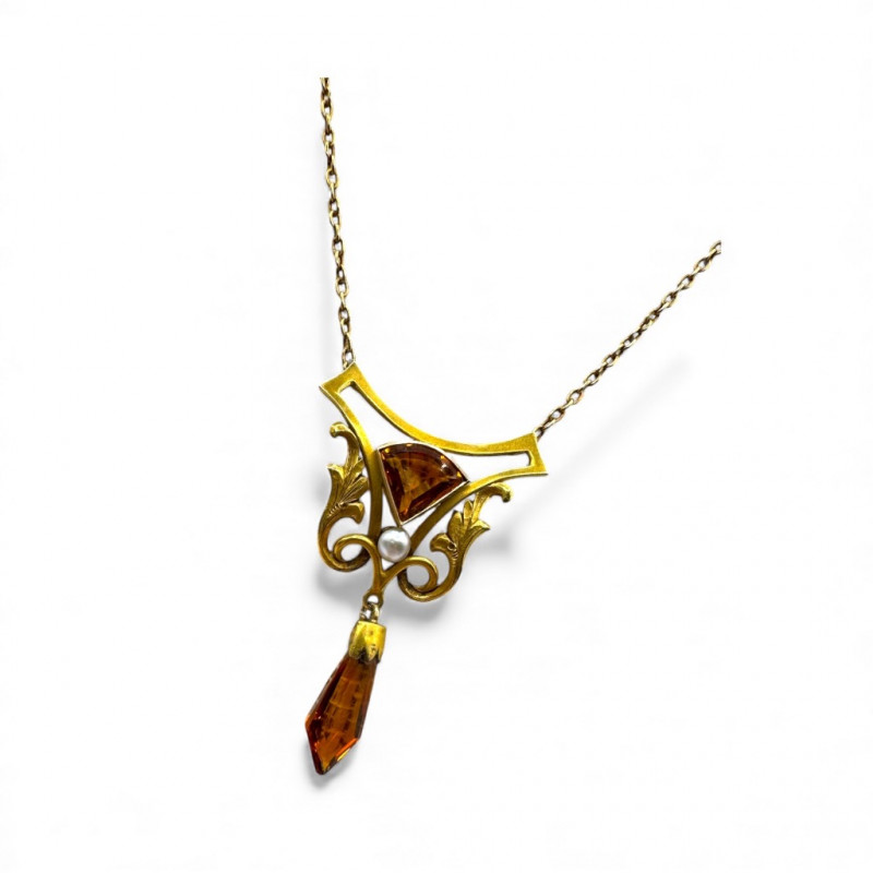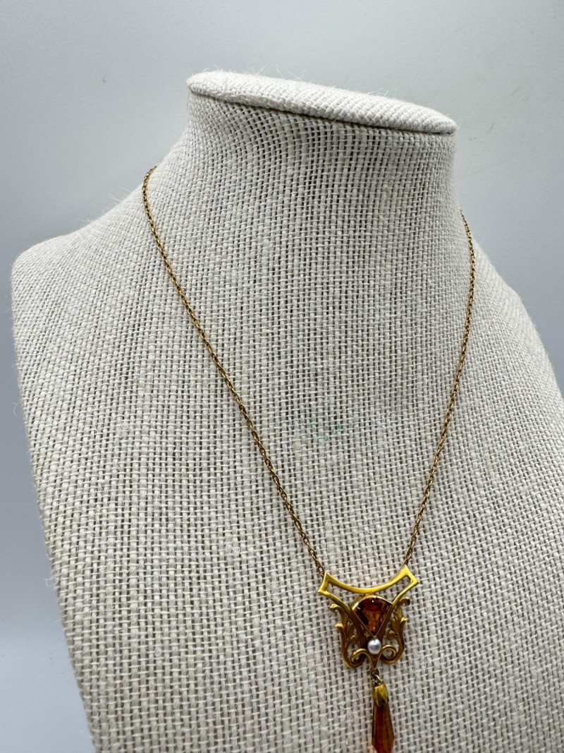 Lot # 96 - Vintage 14K & Citrine Art Nouveau Pendant Necklace- 5.07 Grams