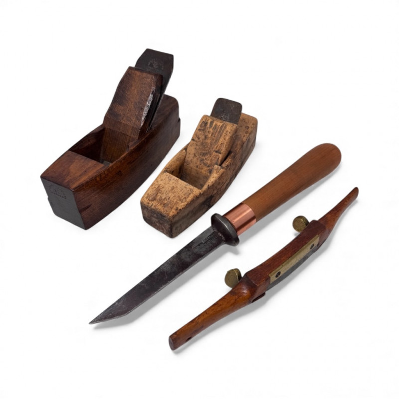 Antique Woodworking Tools – 2 Planes, Knife & Spokeshave.