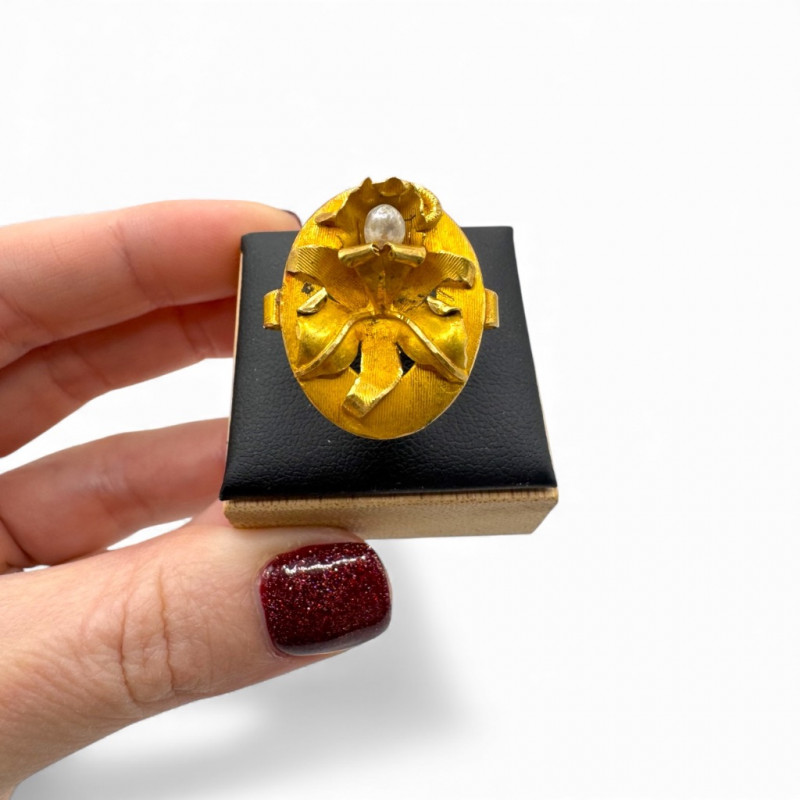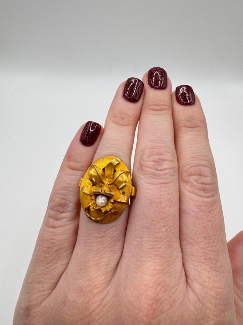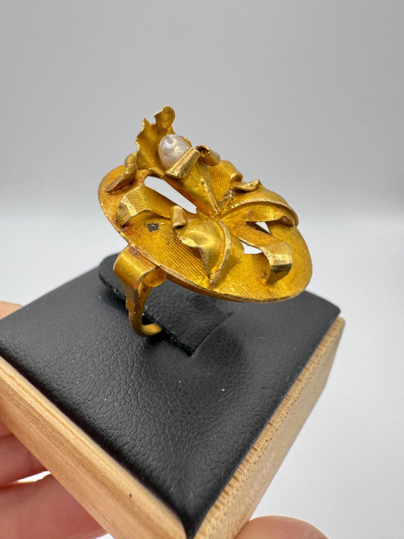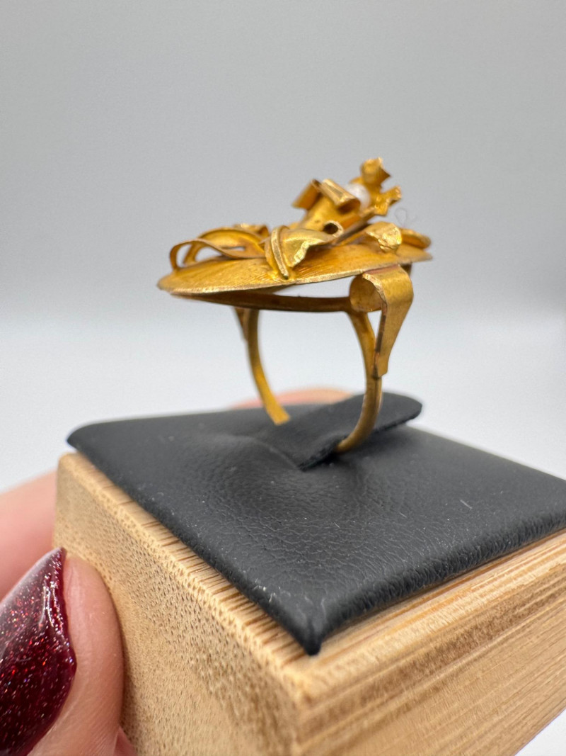 Lot # 105 - 14K Gold Vintage Floral Ring w/ Pearl Accent – Size 5, 5.62g