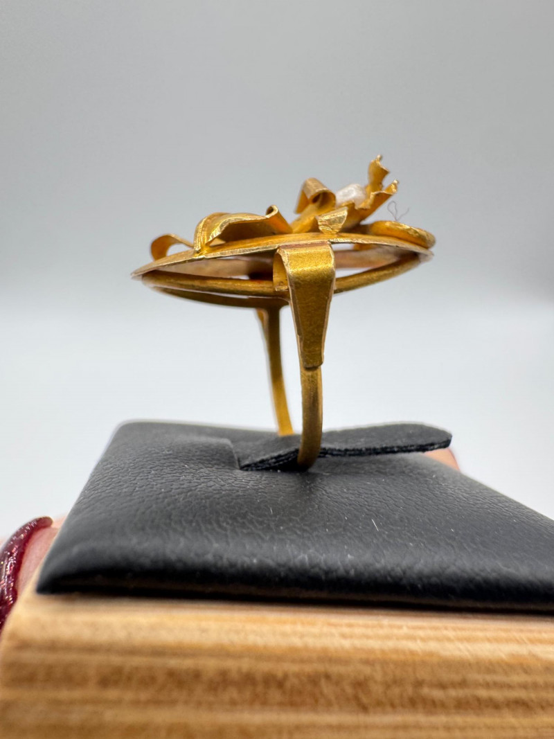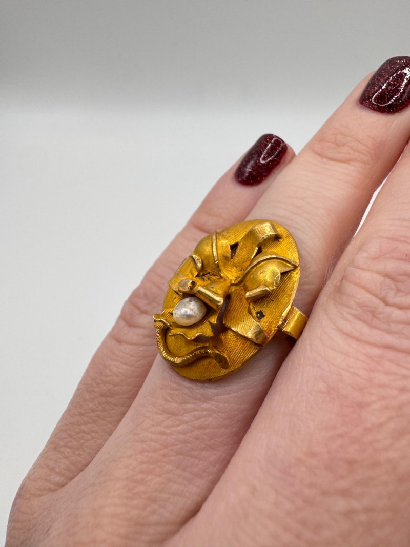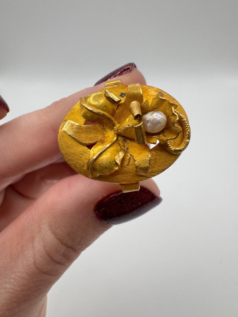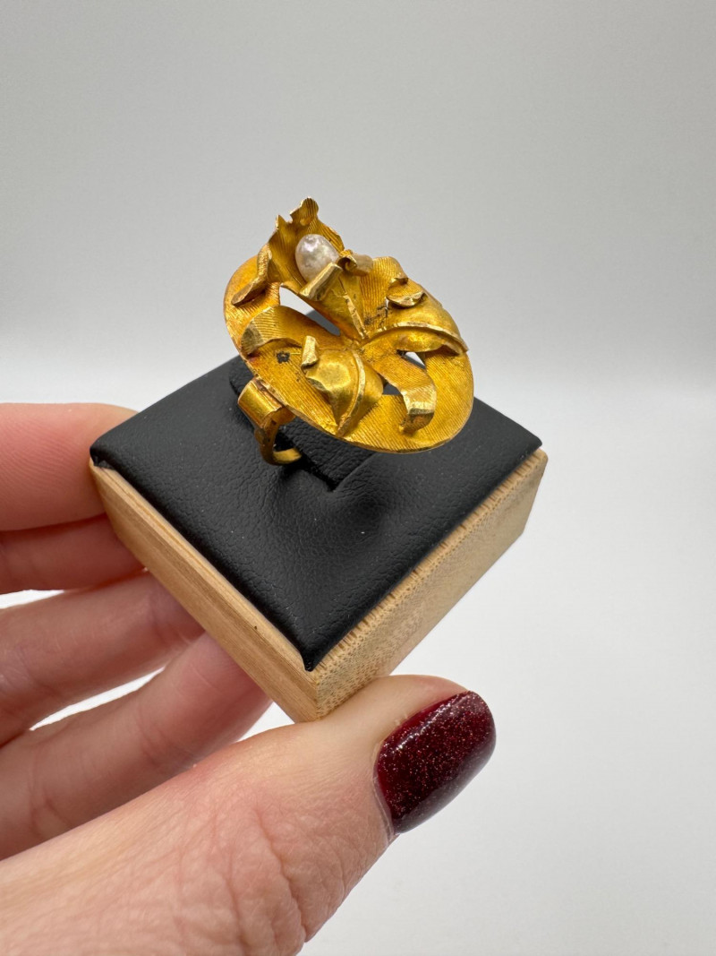 Lot # 105 - 14K Gold Vintage Floral Ring w/ Pearl Accent – Size 5, 5.62g