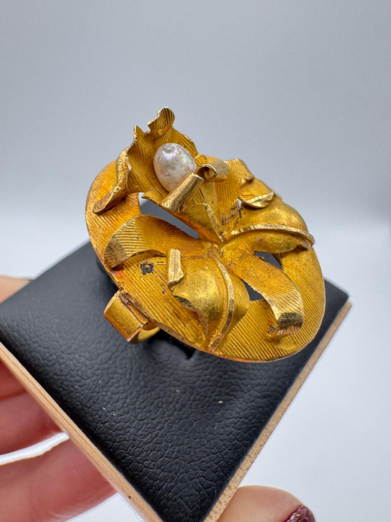 14k Gold Vintage Floral Ring w/ Pearl Accent – Size 5, 5.62g.
