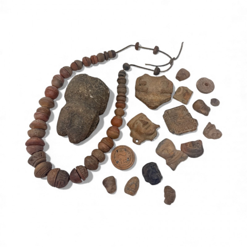 Lot # 114 - Clay Beads, Carved Figures & Stone Pieces Said to Be Ancient Artifacts