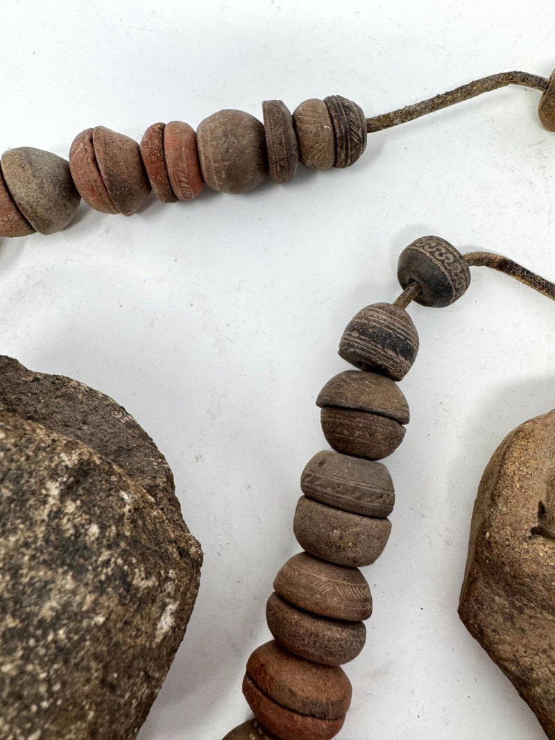 Clay Beads, Carved Figures & Stone Pieces Said to Be Ancient Artifacts. Assorted group of clay and stone items said by prior owner to be ancient artifacts.
