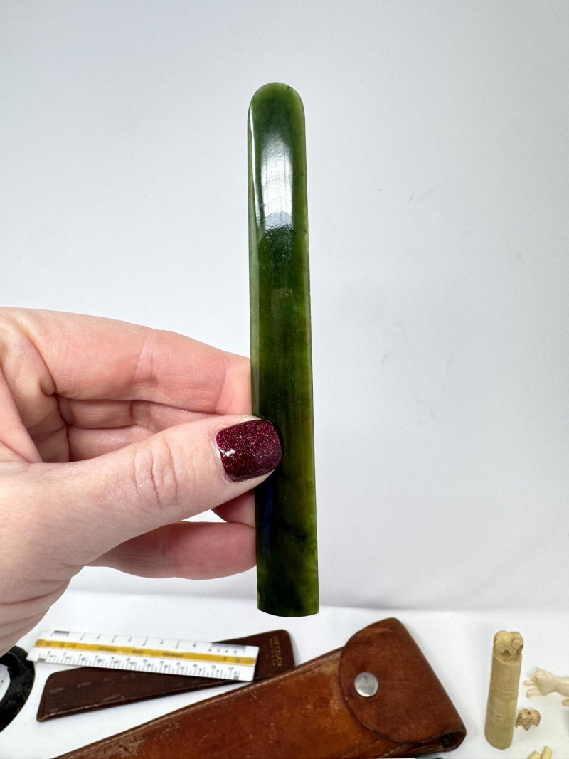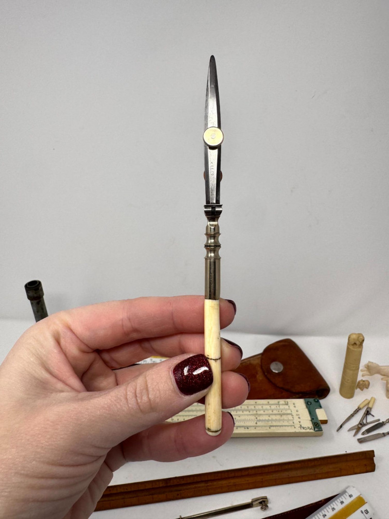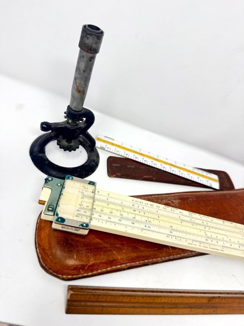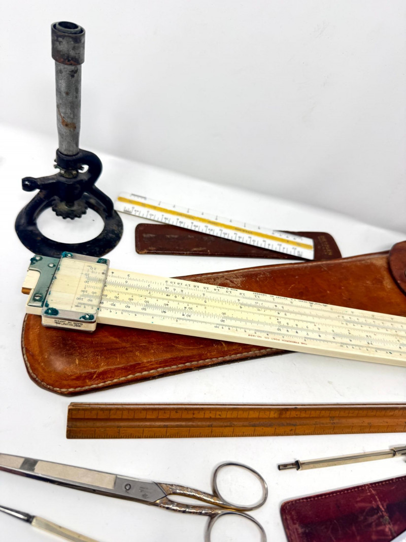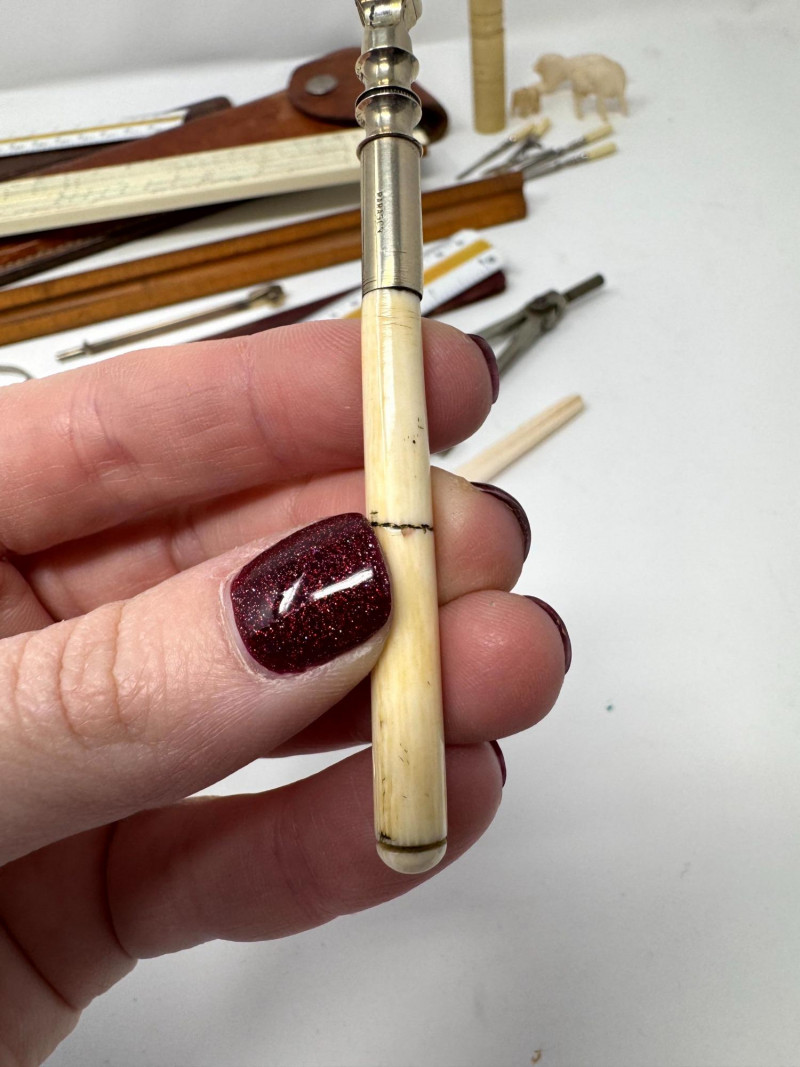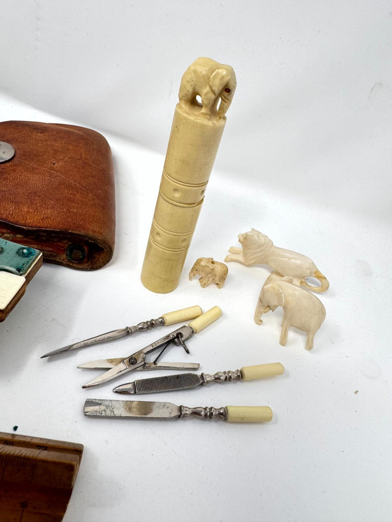 Lot # 116 - Assorted Vintage Measuring & Drafting Tools + Bone & Jade Items