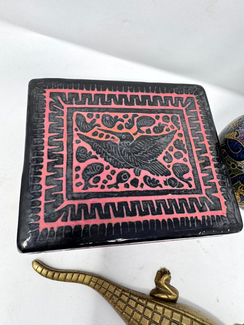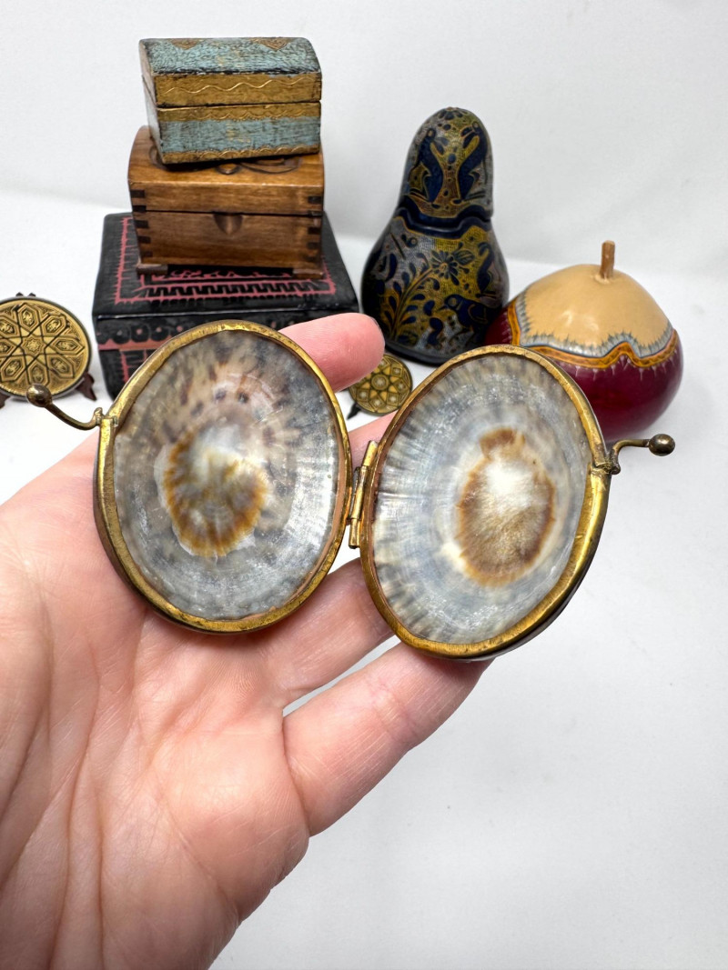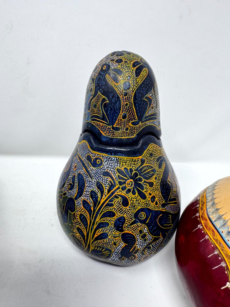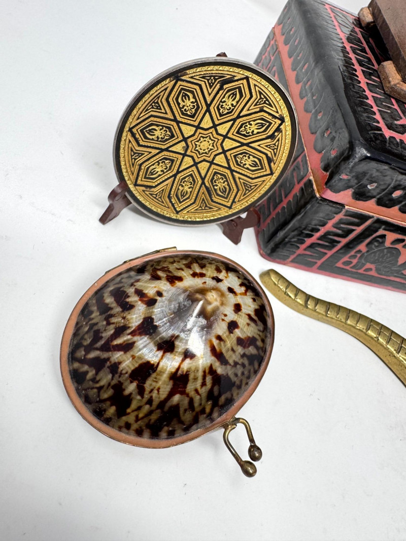 World Trinket Boxes, Crocodile Nutcracker, Carved Gourd & Mini Stands.