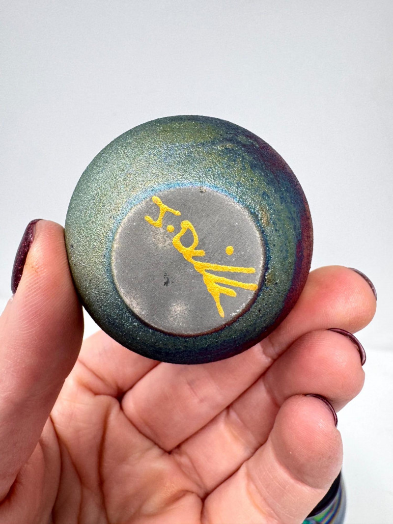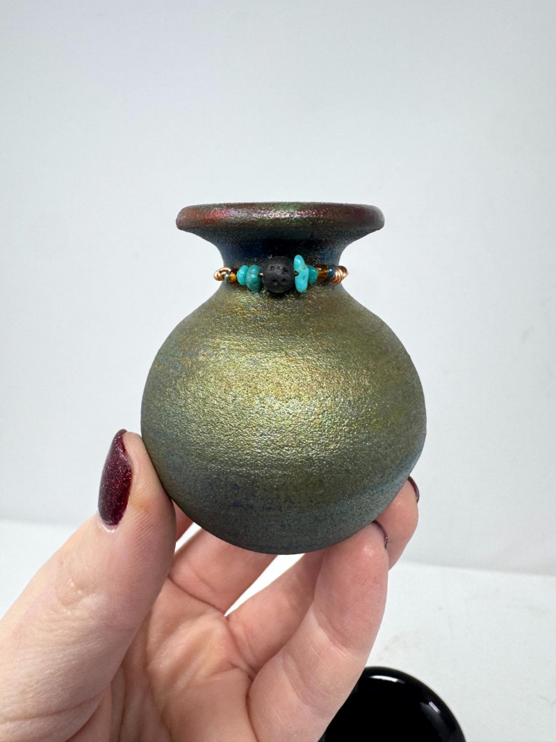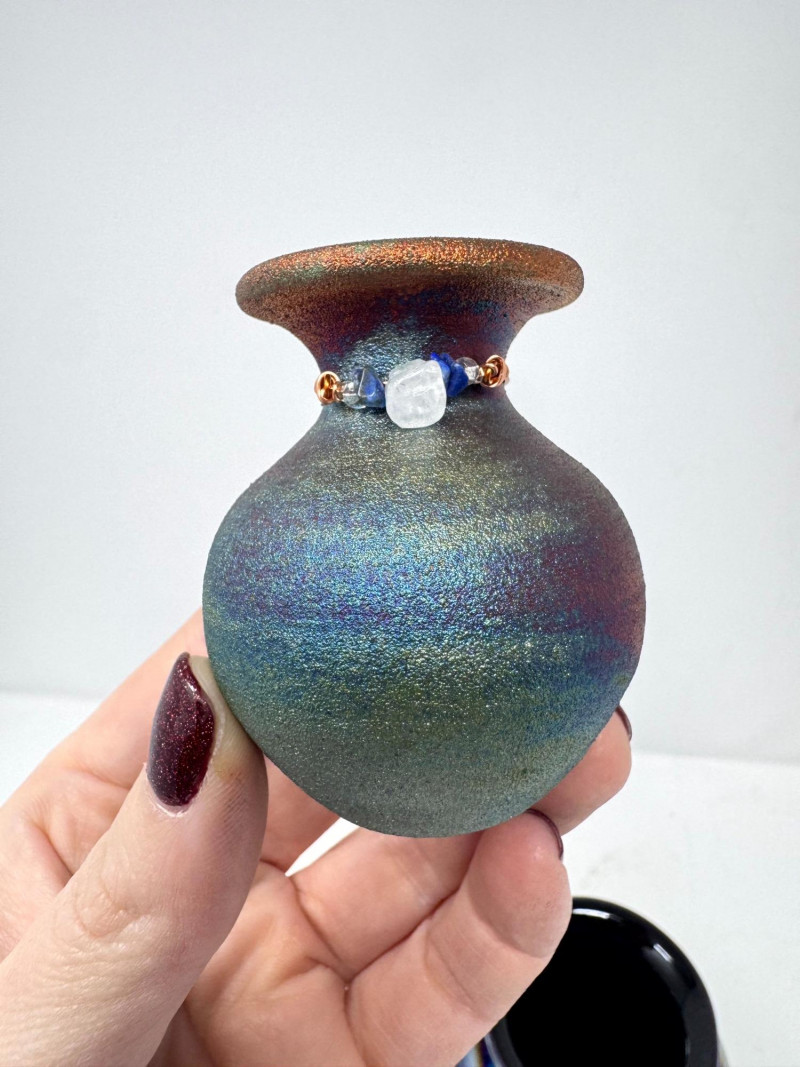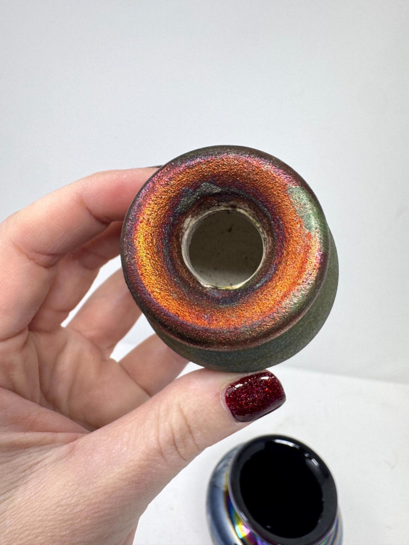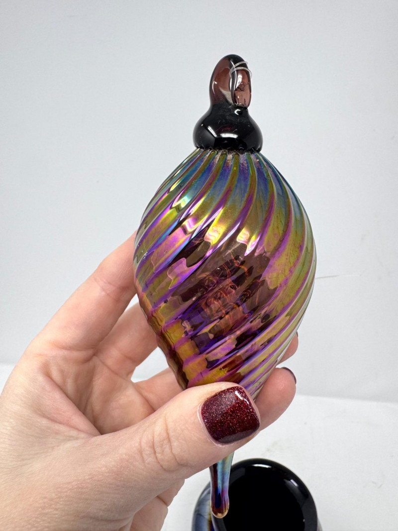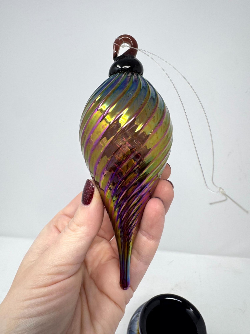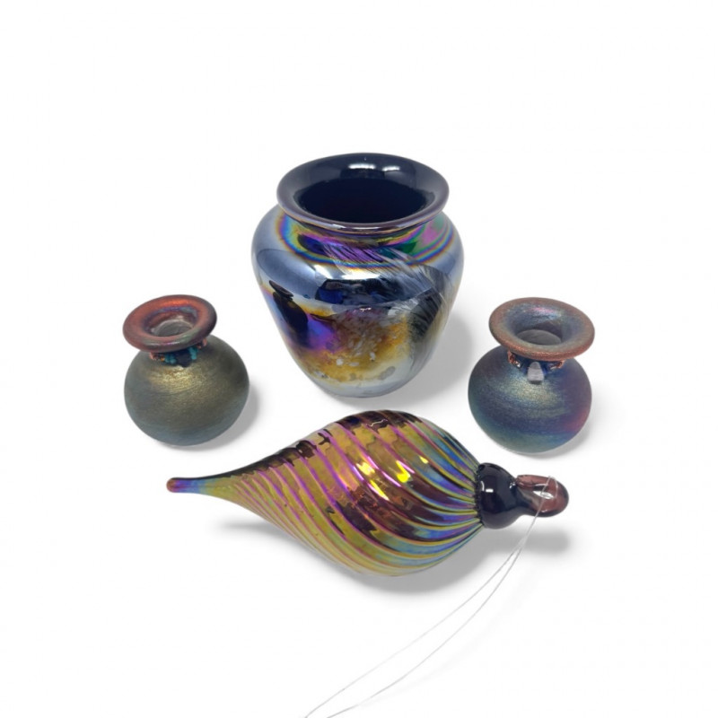 Iridescent Blown Glass Ornament + Mt. St. Helens & J. Diller Vases.