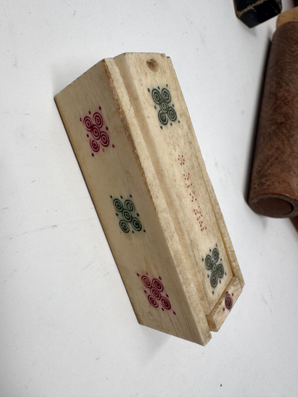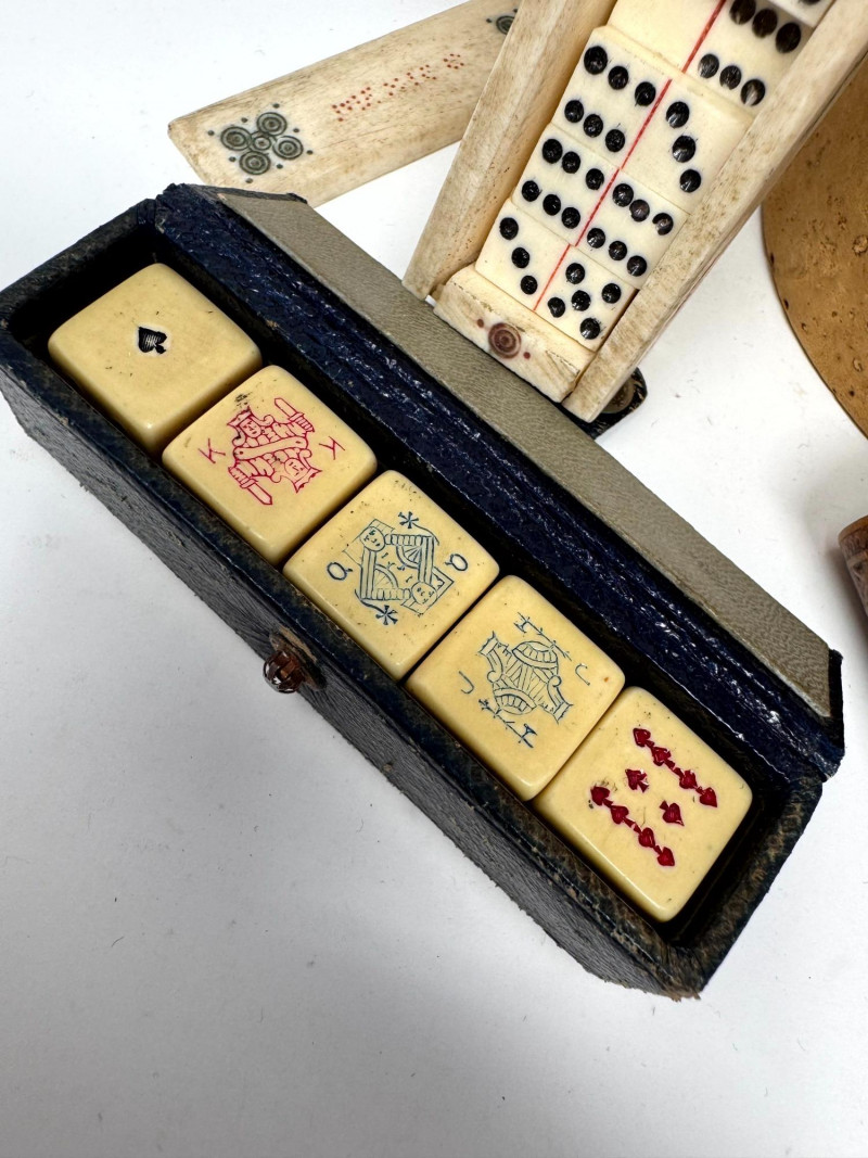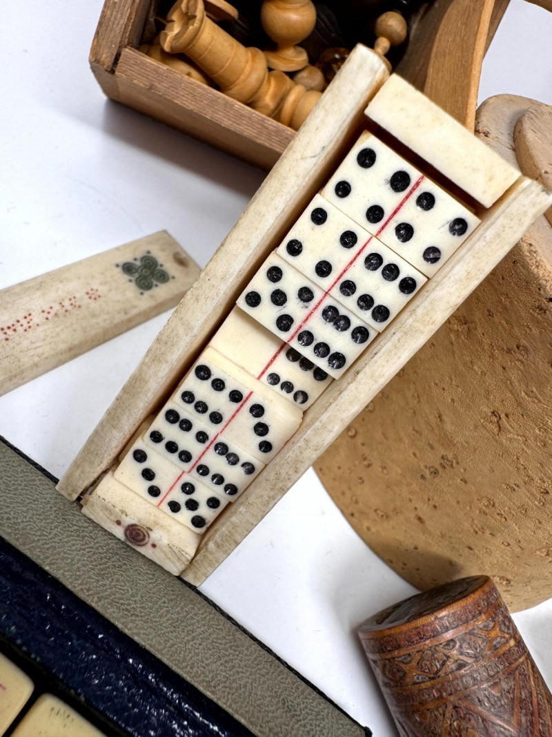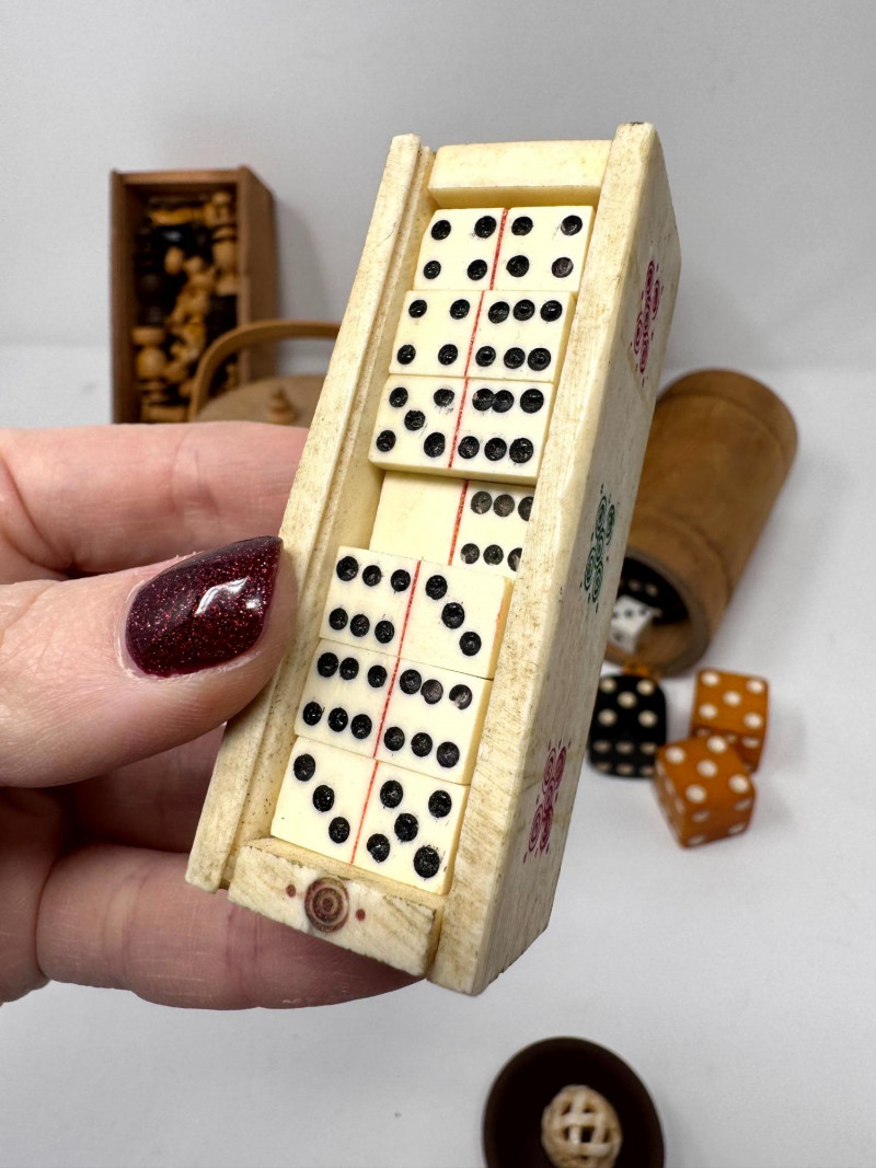 Lot # 129 - Vintage Game & Trinket Set – Dice, Marbles, Wood & Bone Vessels +