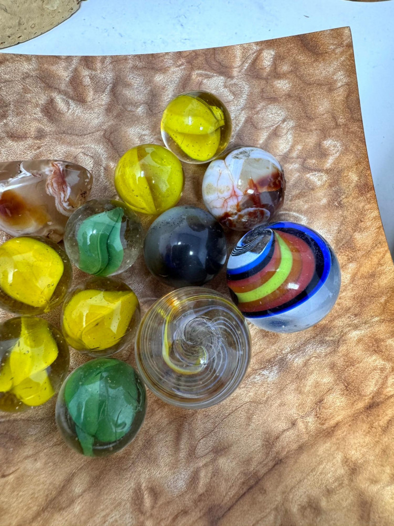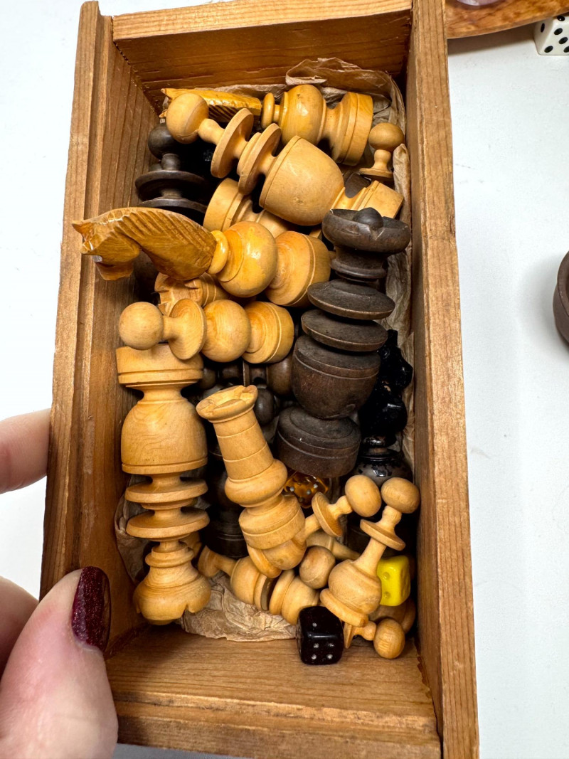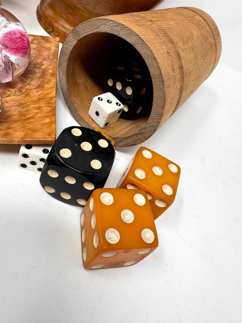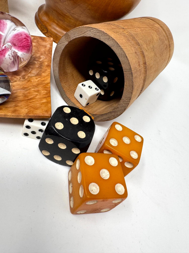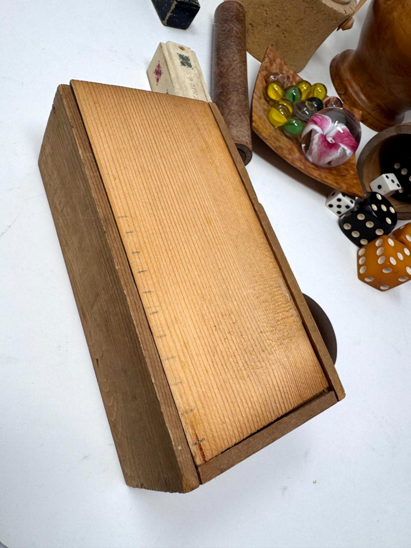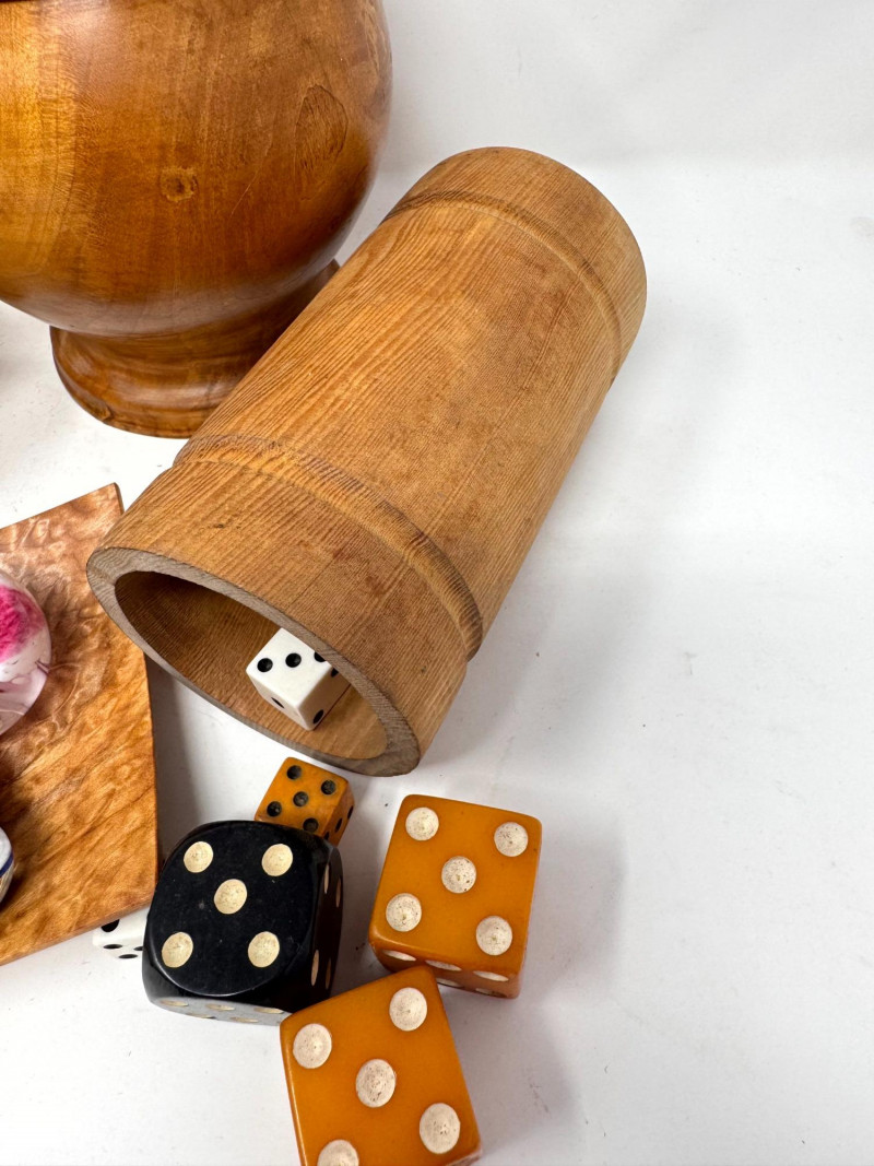Vintage Game & Trinket Set – Dice, Marbles, Wood & Bone Vessels +