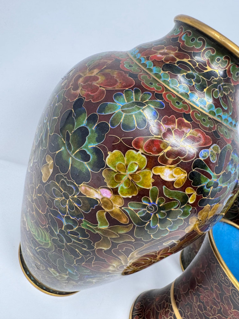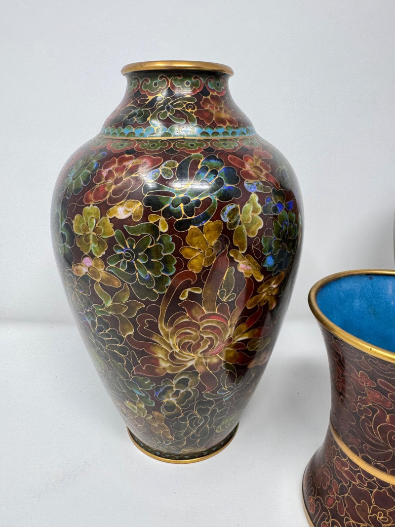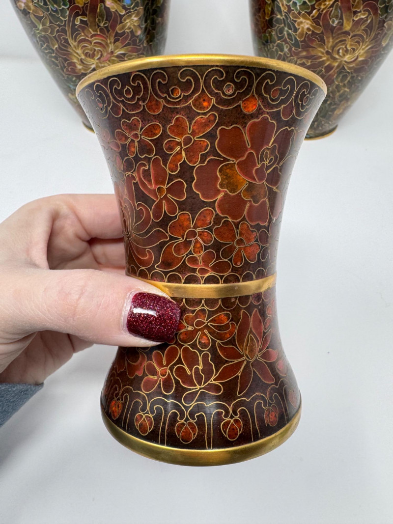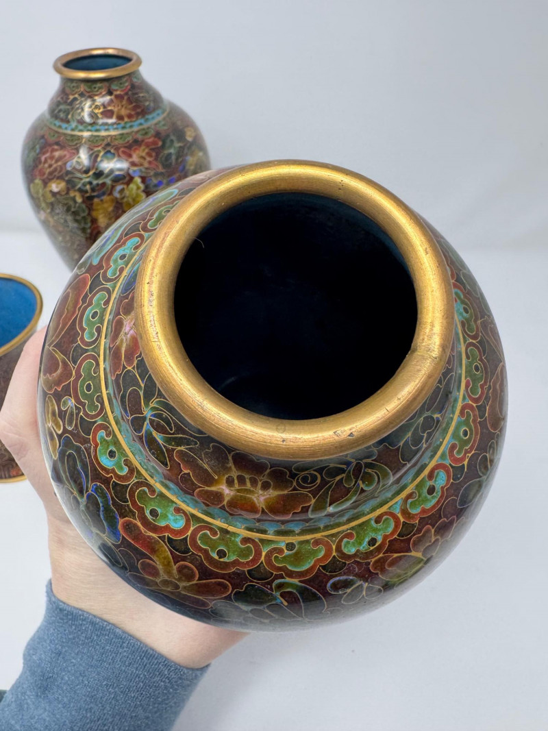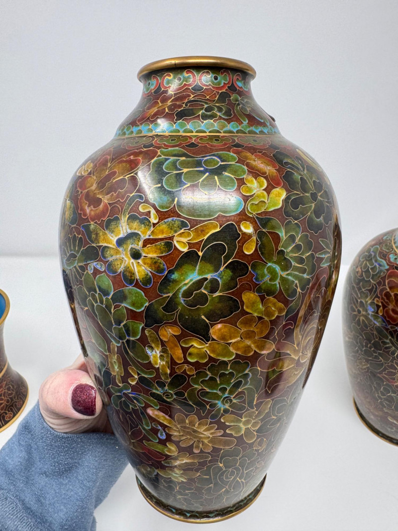 Lot # 147 - Antique Cloisonné Vase Trio – Rich Multicolor Enamel Design