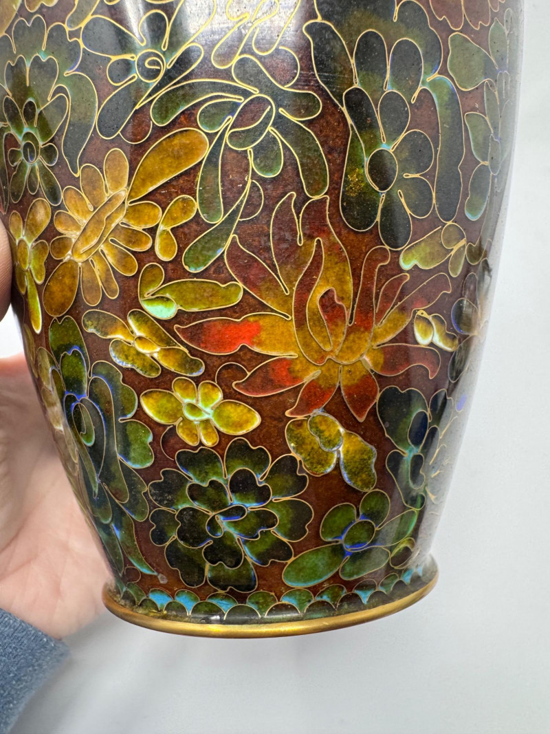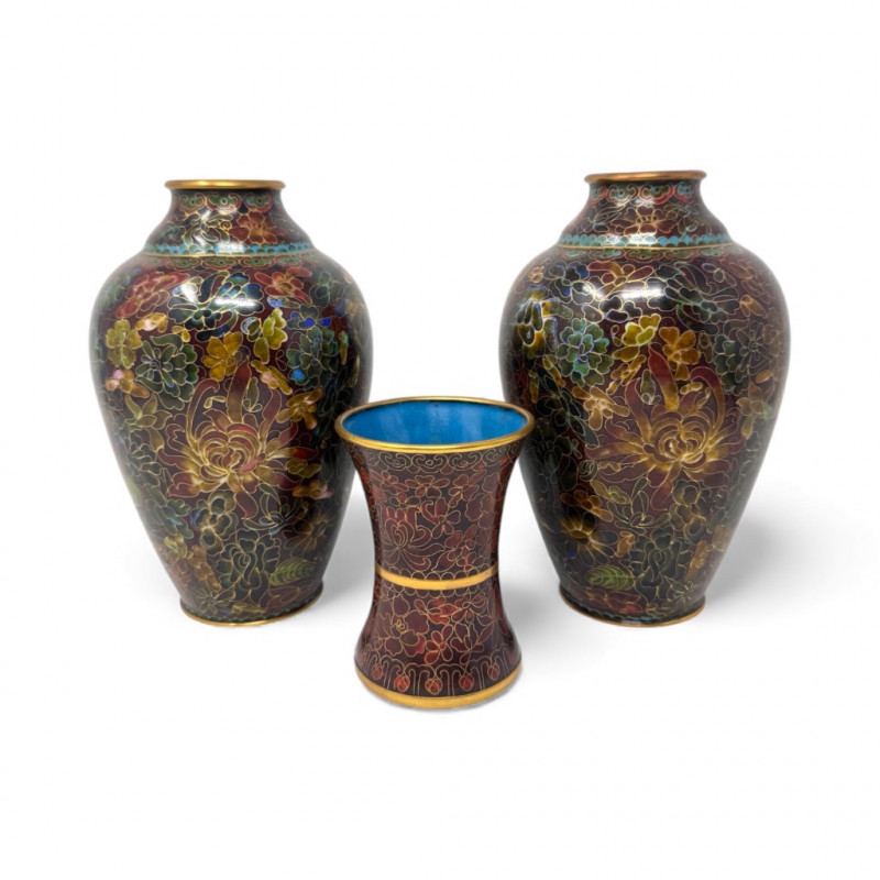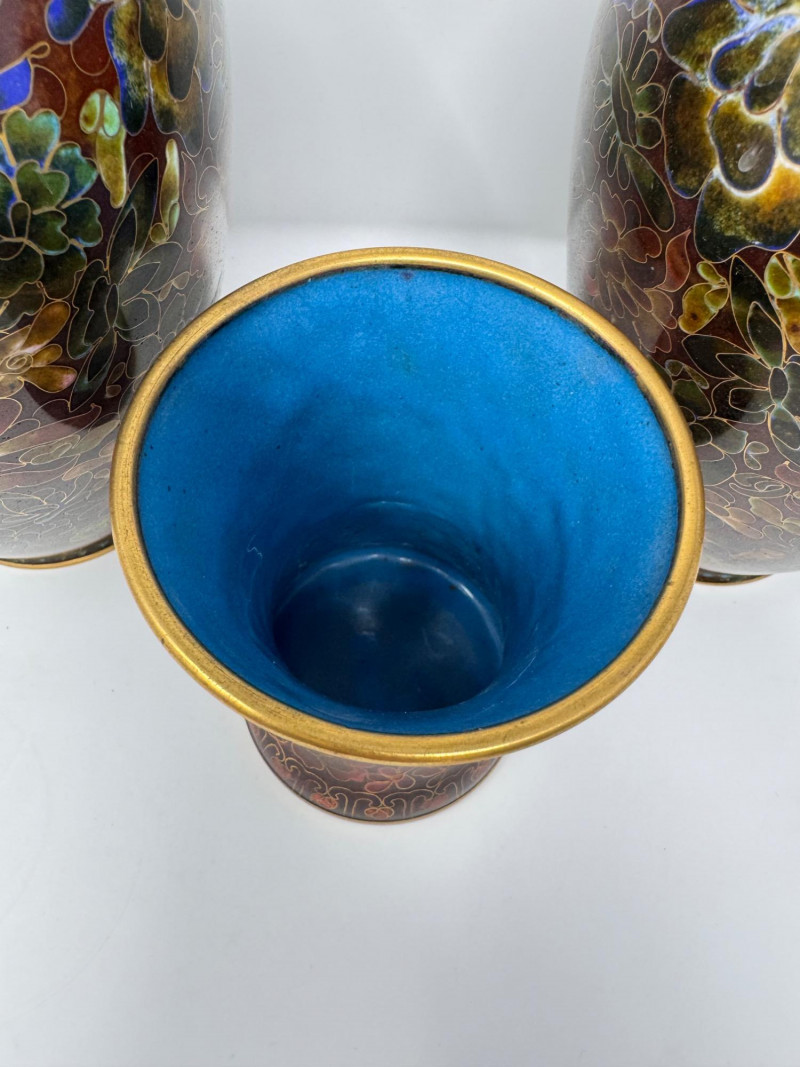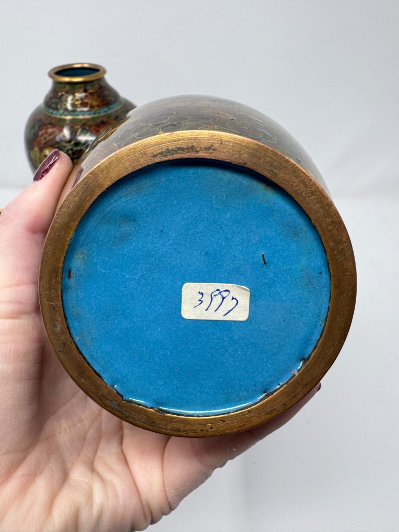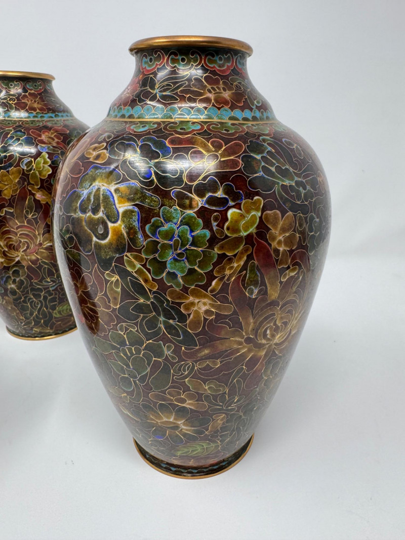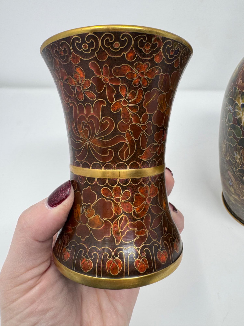 Lot # 147 - Antique Cloisonné Vase Trio – Rich Multicolor Enamel Design
