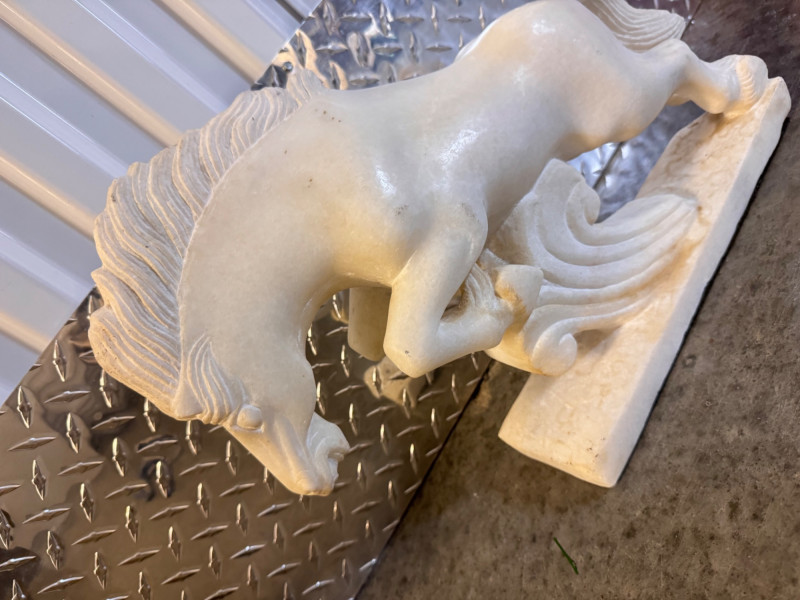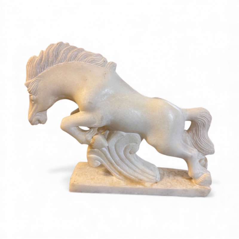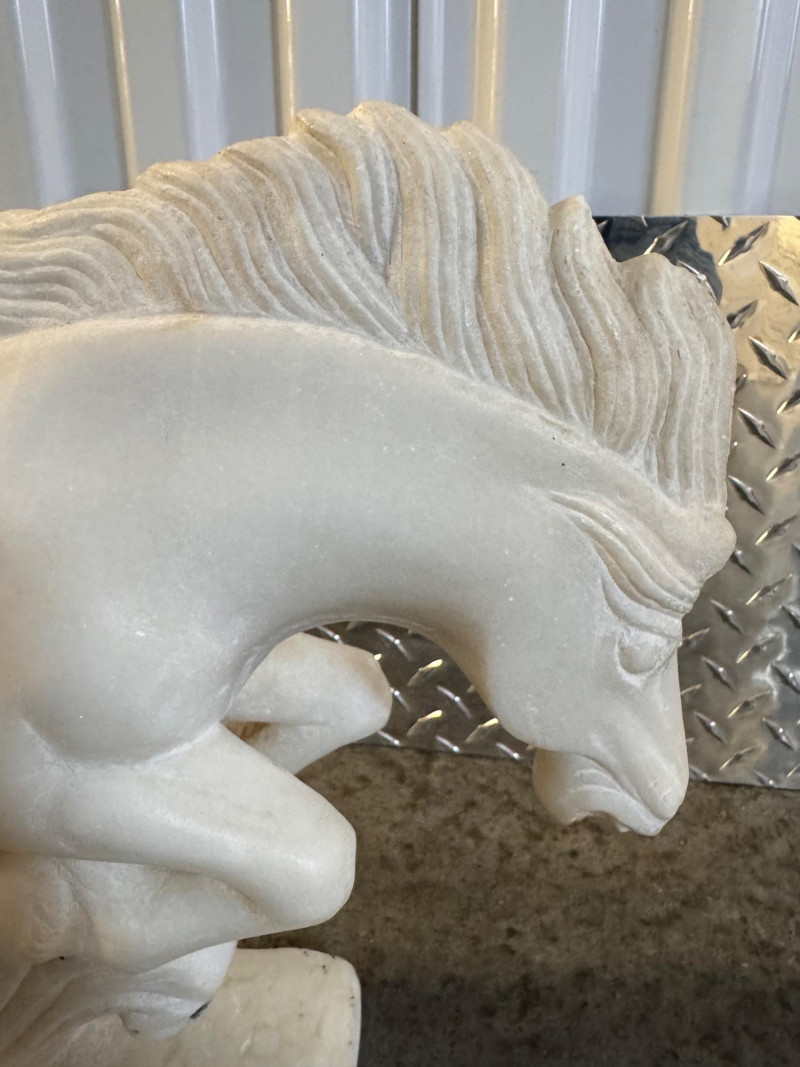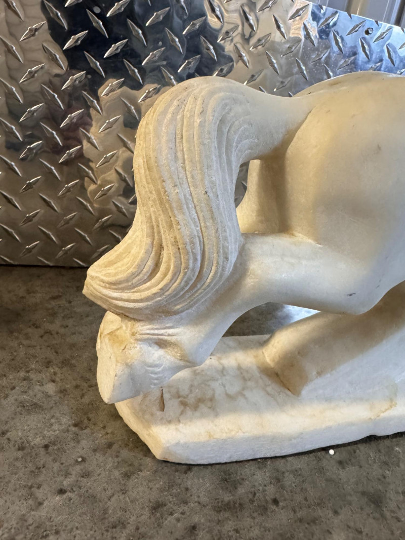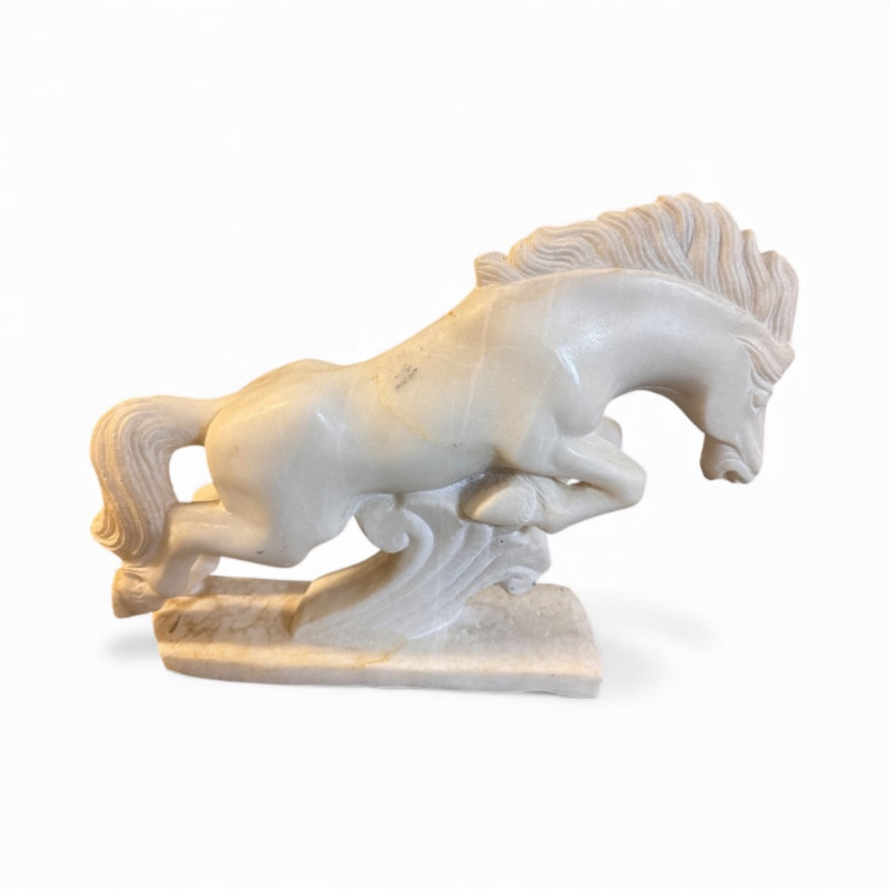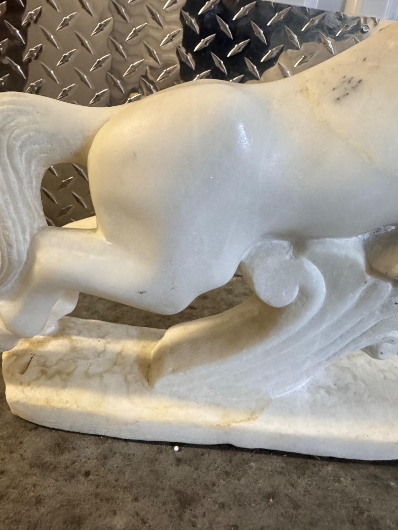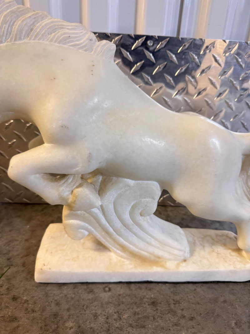 White Marble Galloping Horse Sculpture. • Measures approx. 17" wide x 13" tall