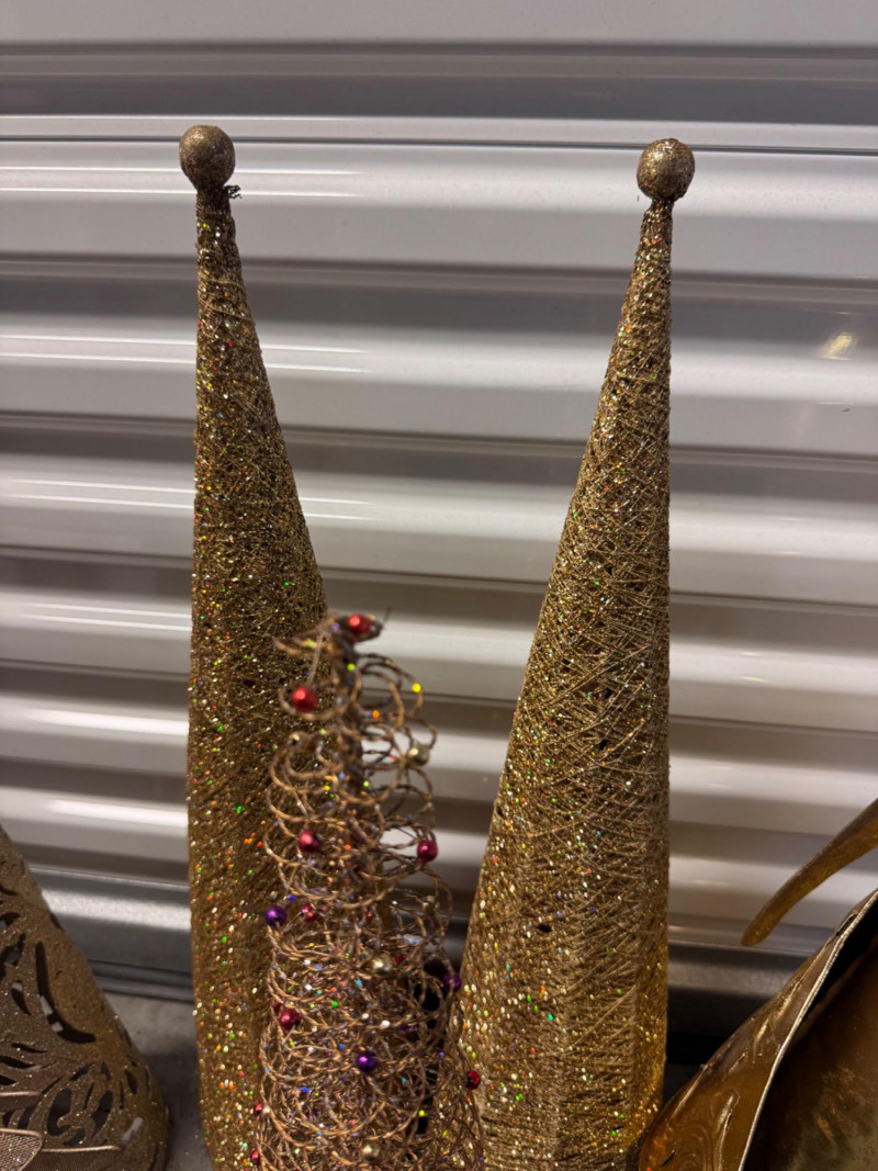 Lot # 152 - Gold Metal Angel & Decorative Gold Christmas Trees - Mixed Styles
