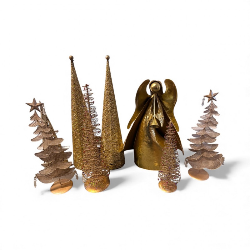 Gold Metal Angel & Decorative Gold Christmas Trees - Mixed Styles.