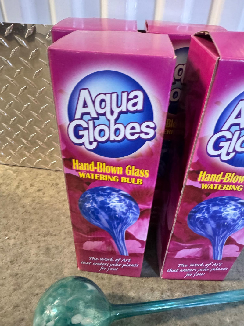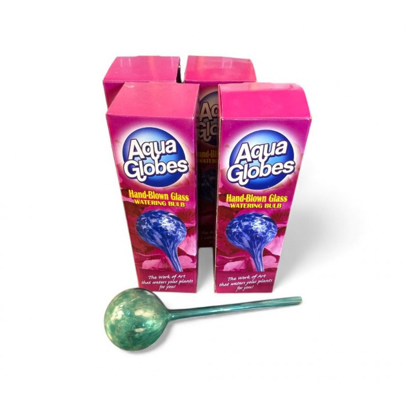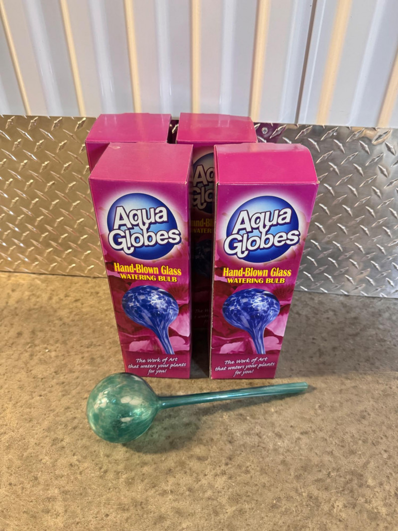 Aqua Globes Hand-Blown Glass Watering Bulbs – Set of 4, New in Box.
