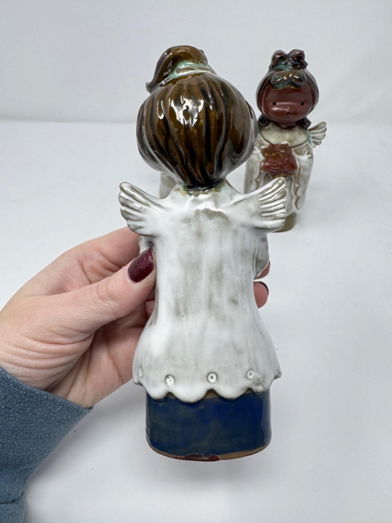 Lot # 154 - Three Glazed Pottery Angel Figurines