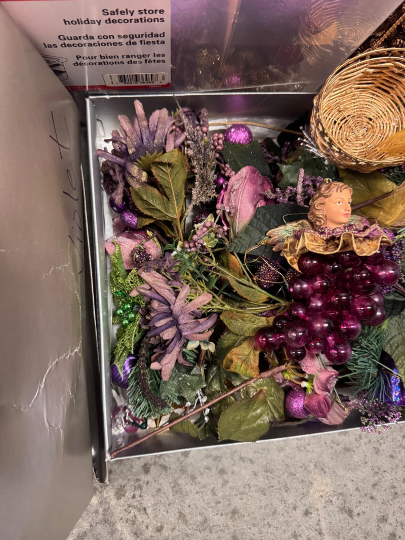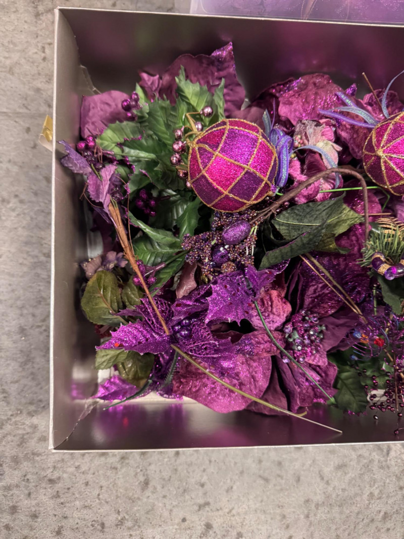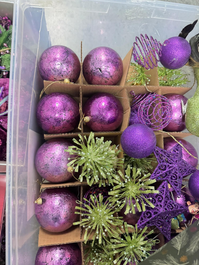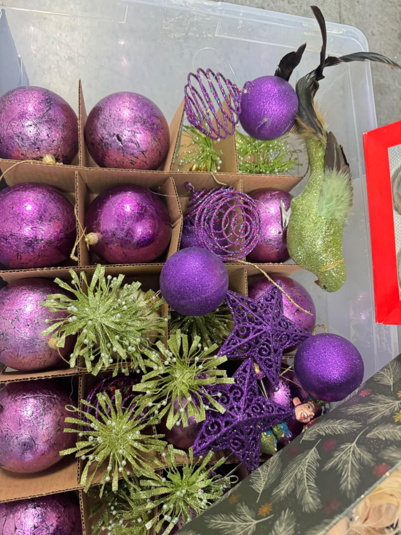 Purple & Gold Christmas Décor Assortment w/ Waterford Ornaments.