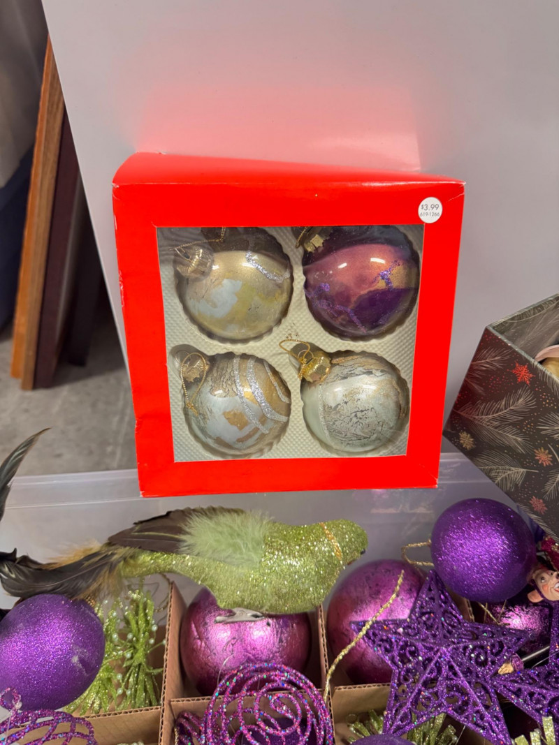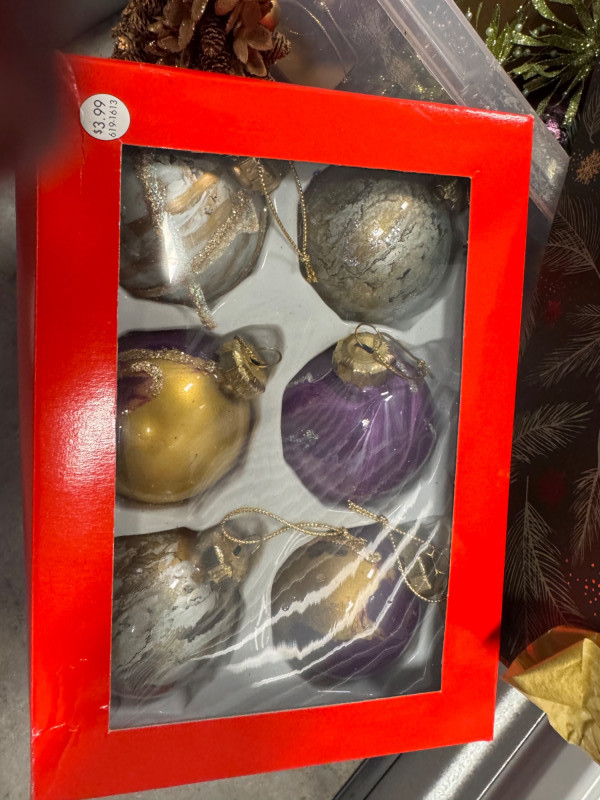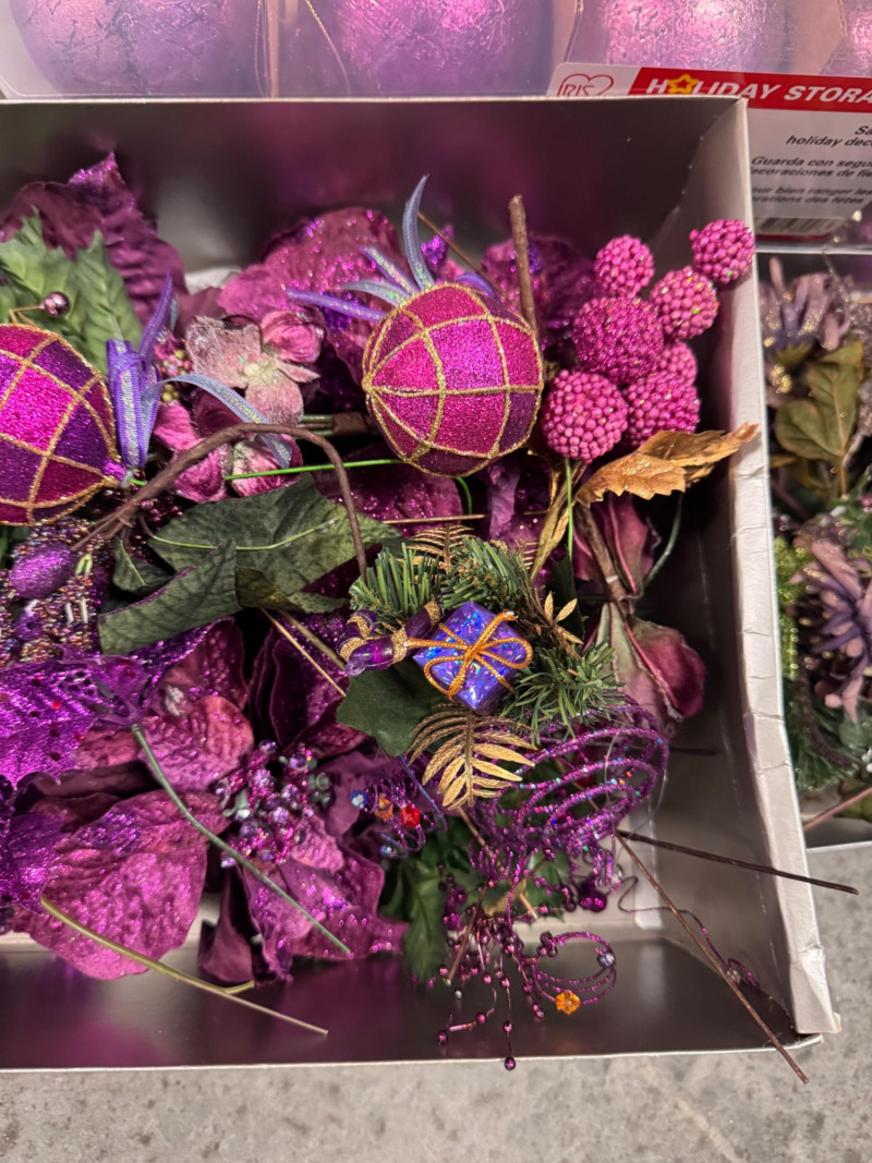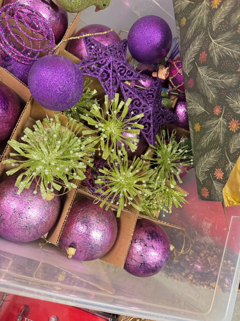 Purple & Gold Christmas Décor Assortment w/ Waterford Ornaments.