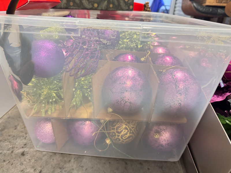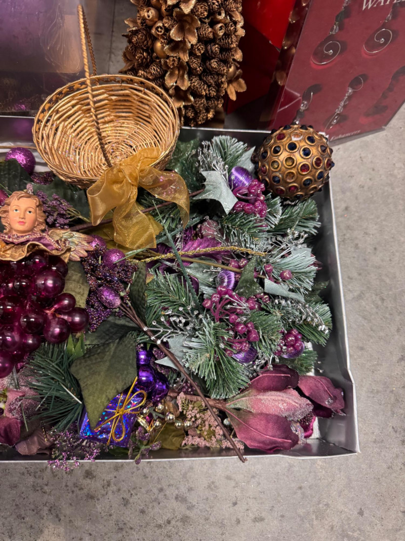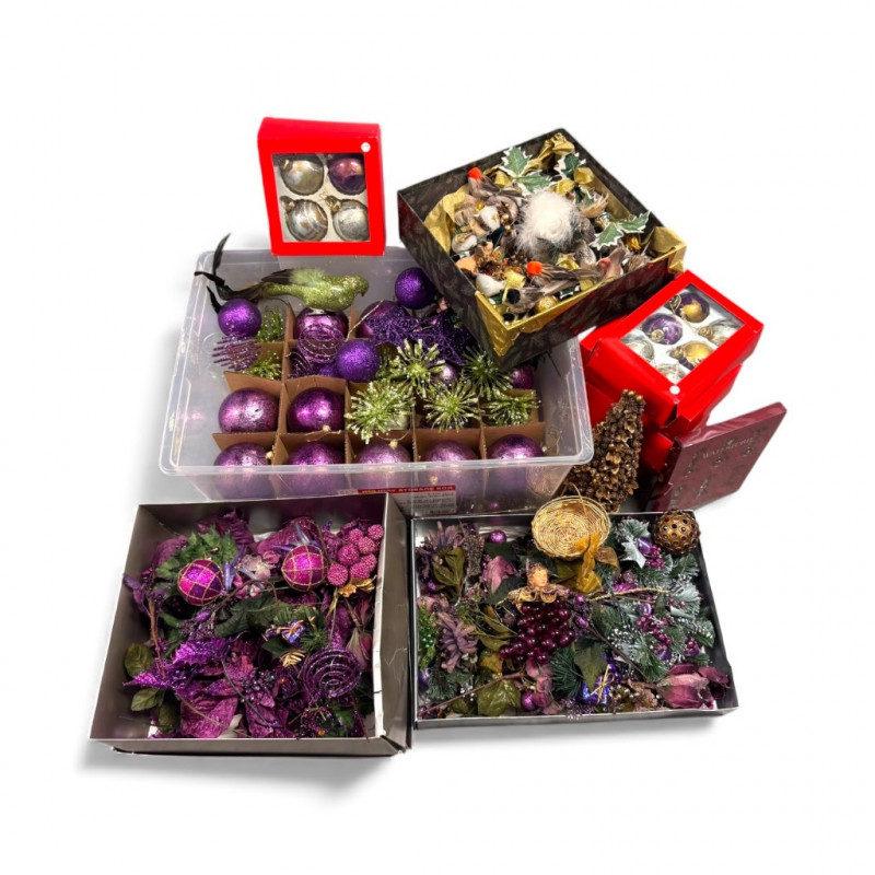 Lot # 156 - Purple & Gold Christmas Décor Assortment w/ Waterford Ornaments