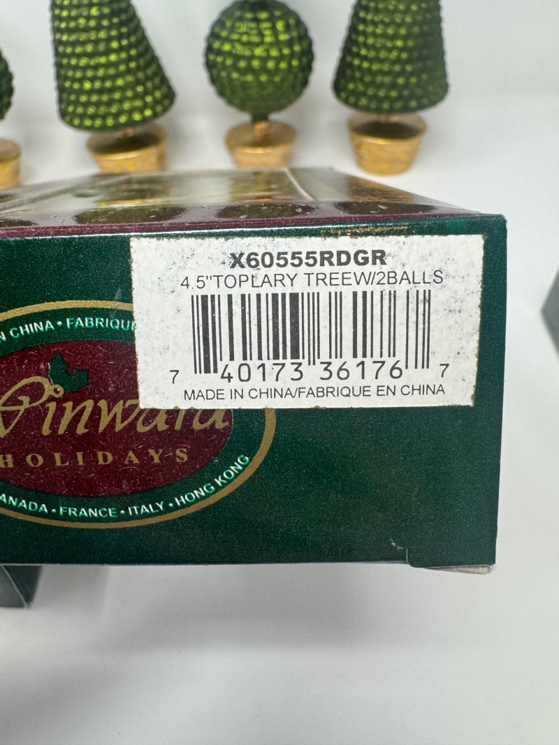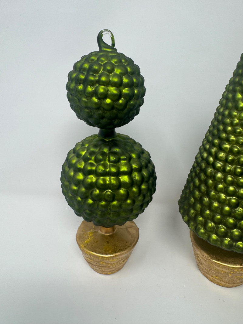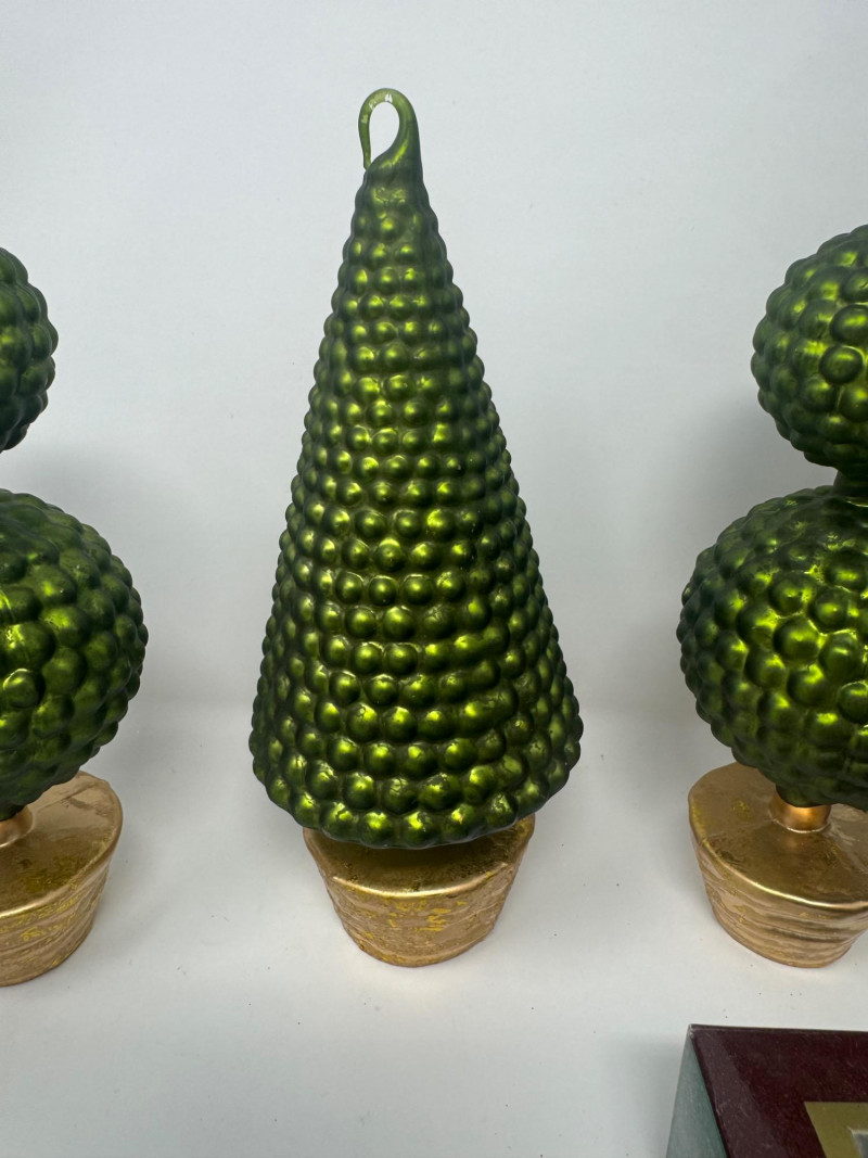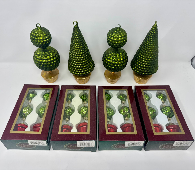 Lot # 1 - Set of 4 Blown Glass Trees & 8 Winward Topiary Ornaments – Green/Gold