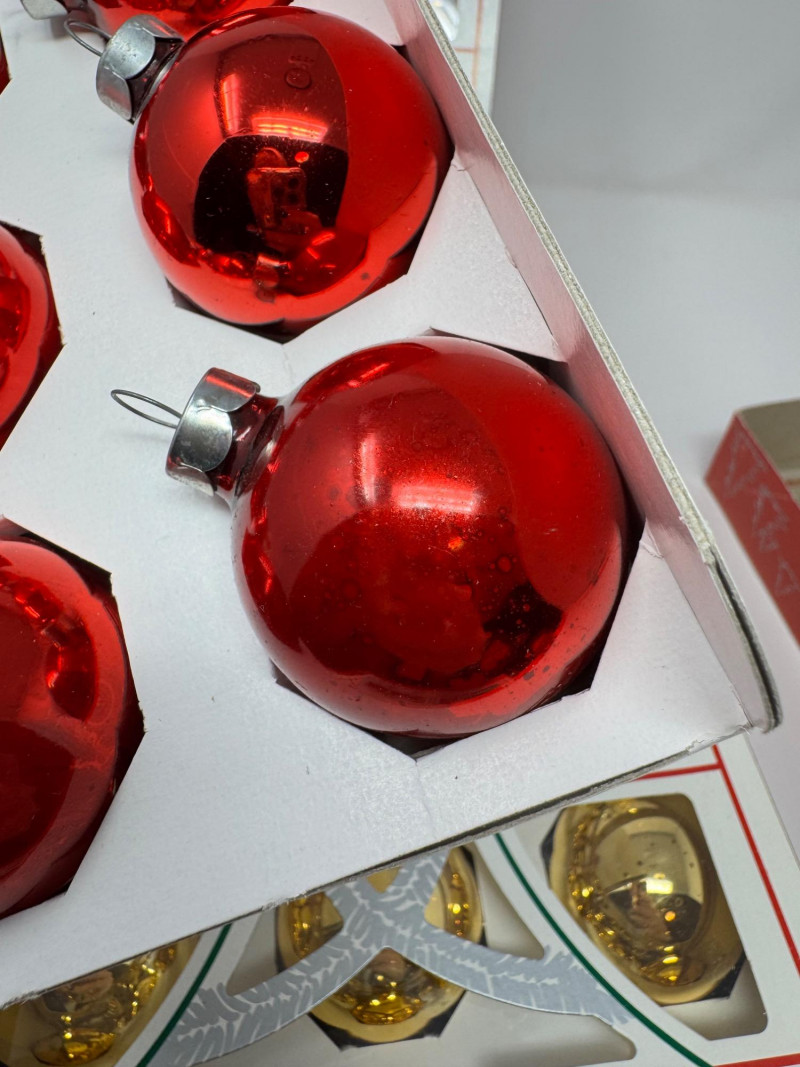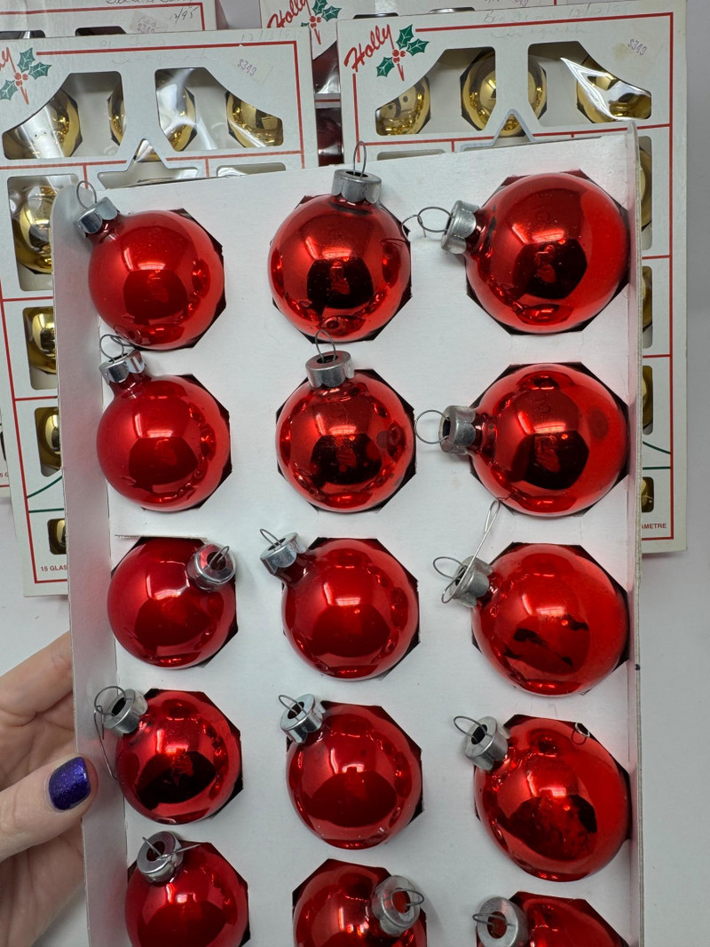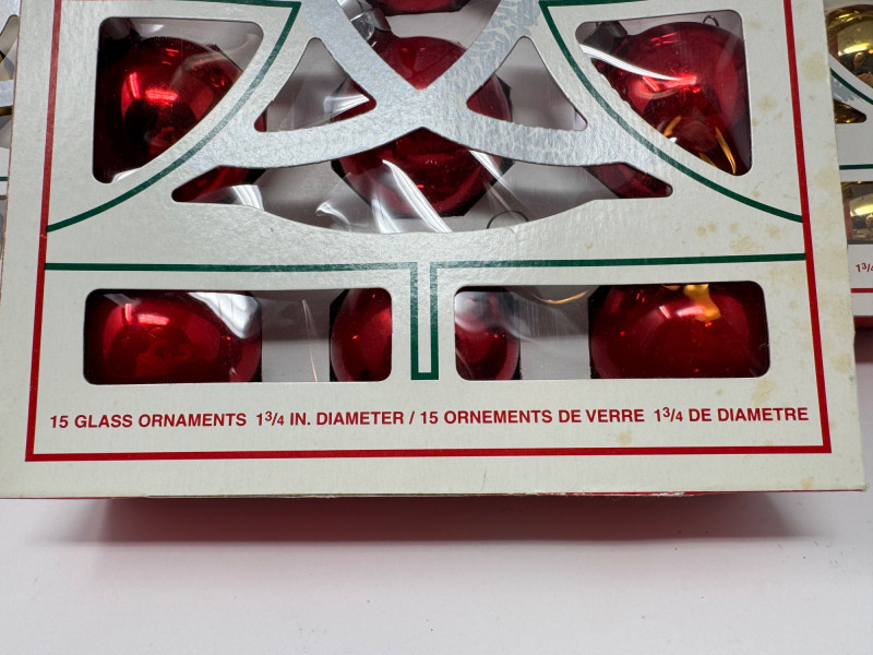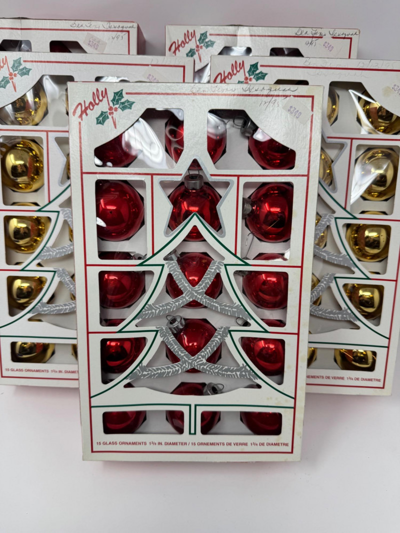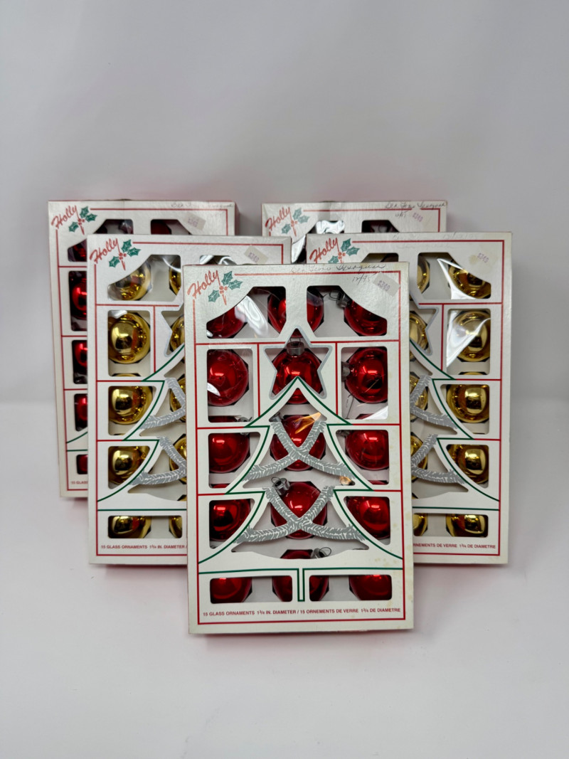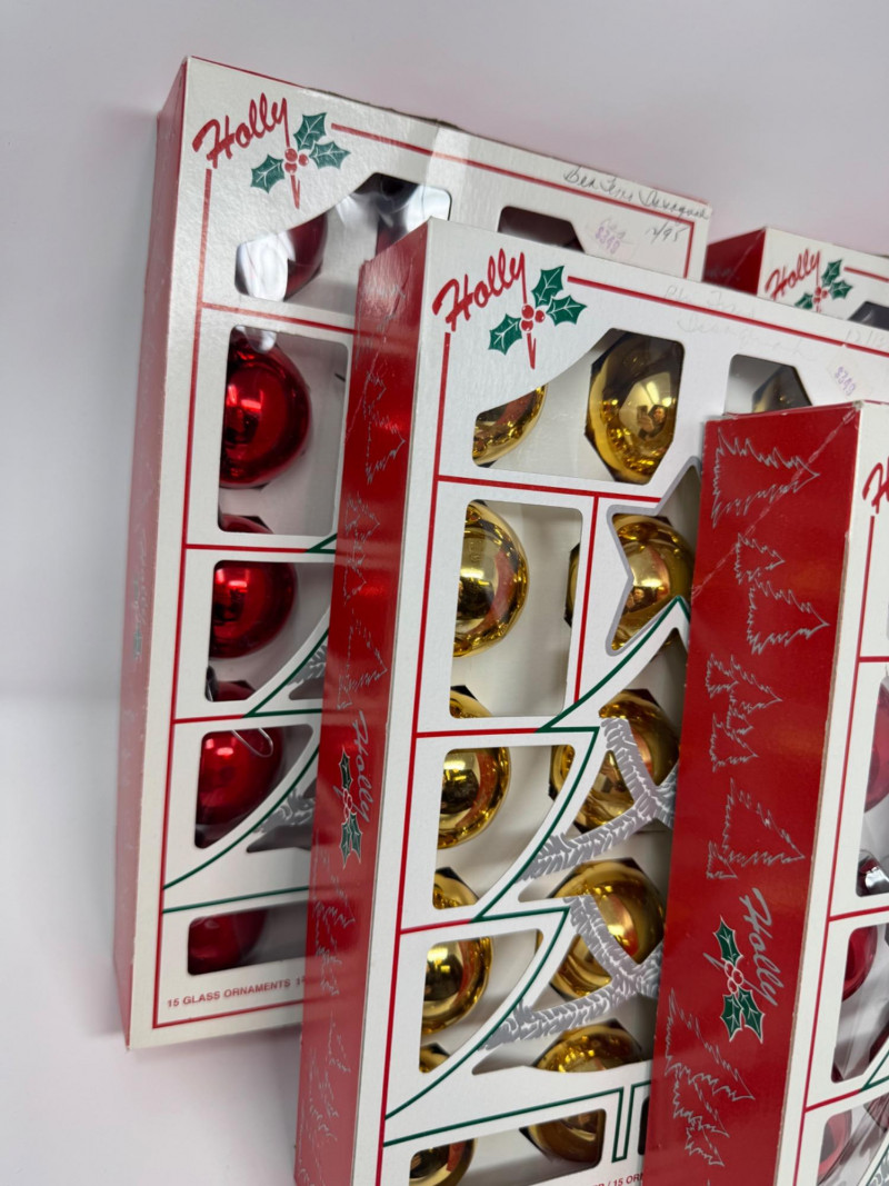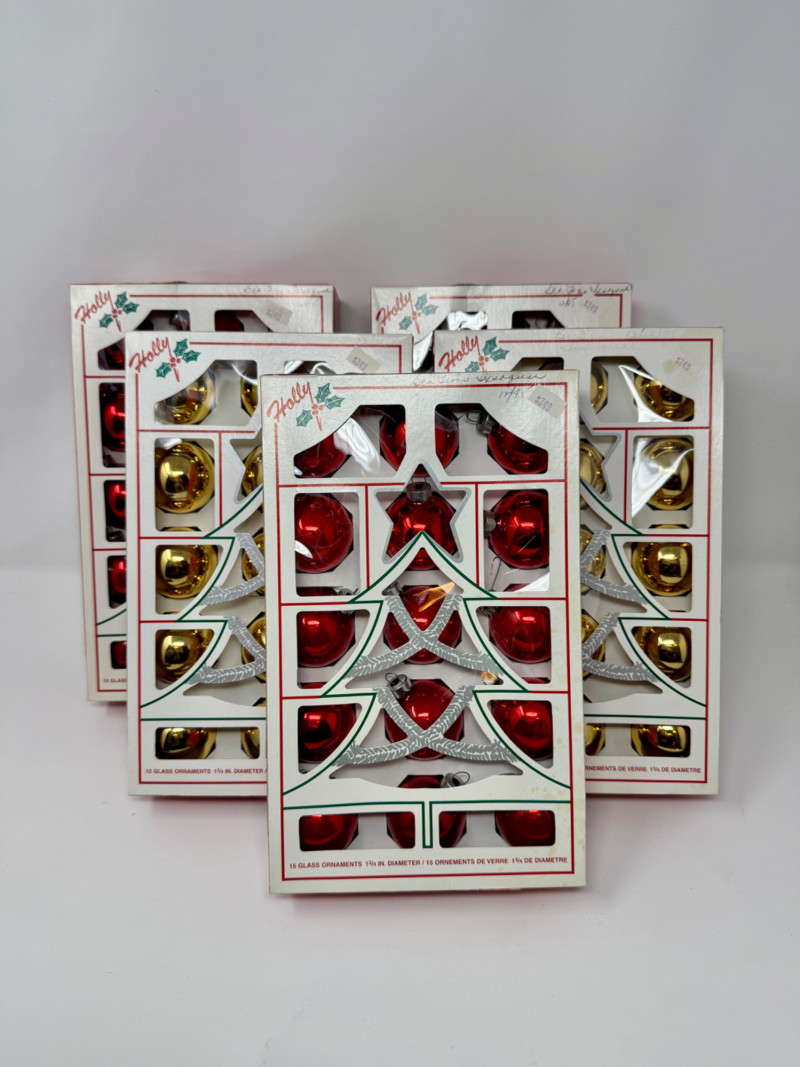 Lot # 3 - Holly Glass Christmas Ornaments – Red & Gold, 5 Box Set