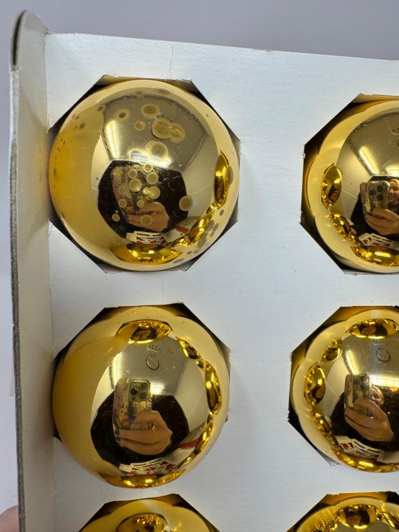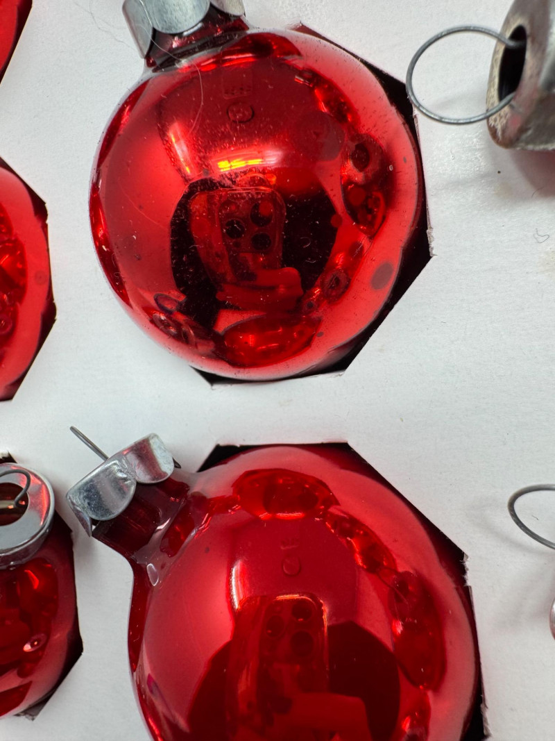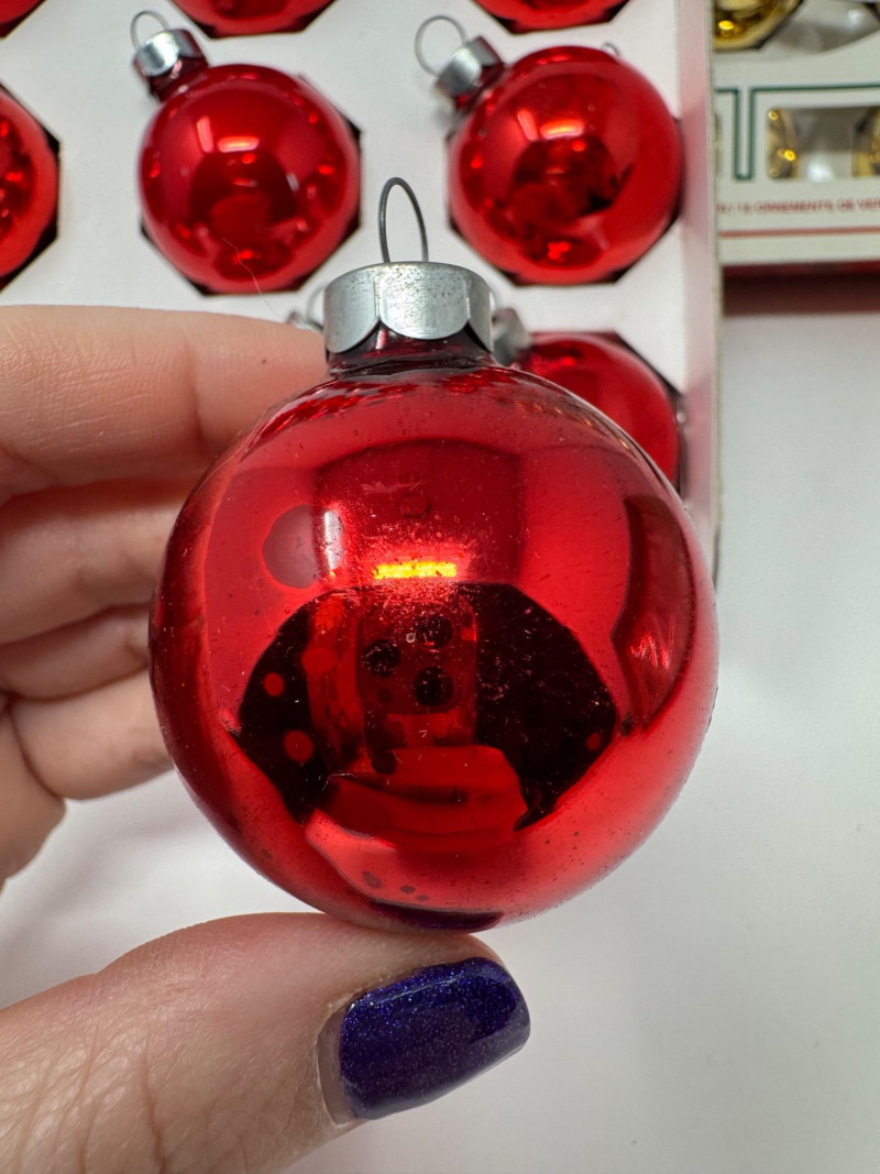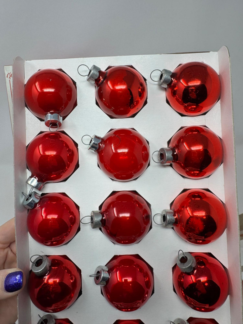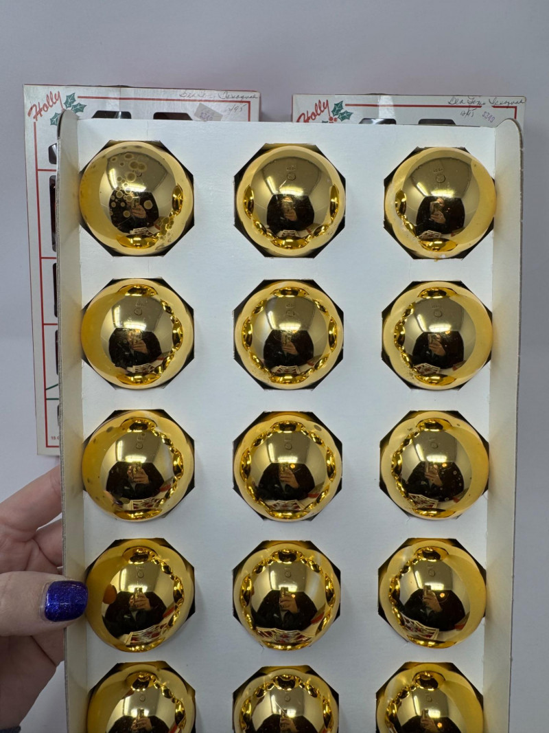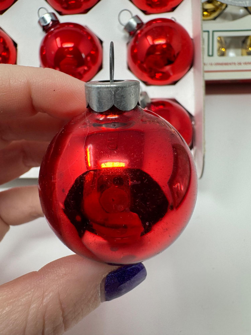 Lot # 3 - Holly Glass Christmas Ornaments – Red & Gold, 5 Box Set