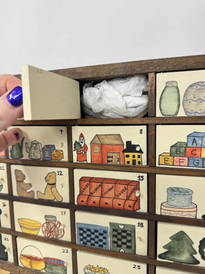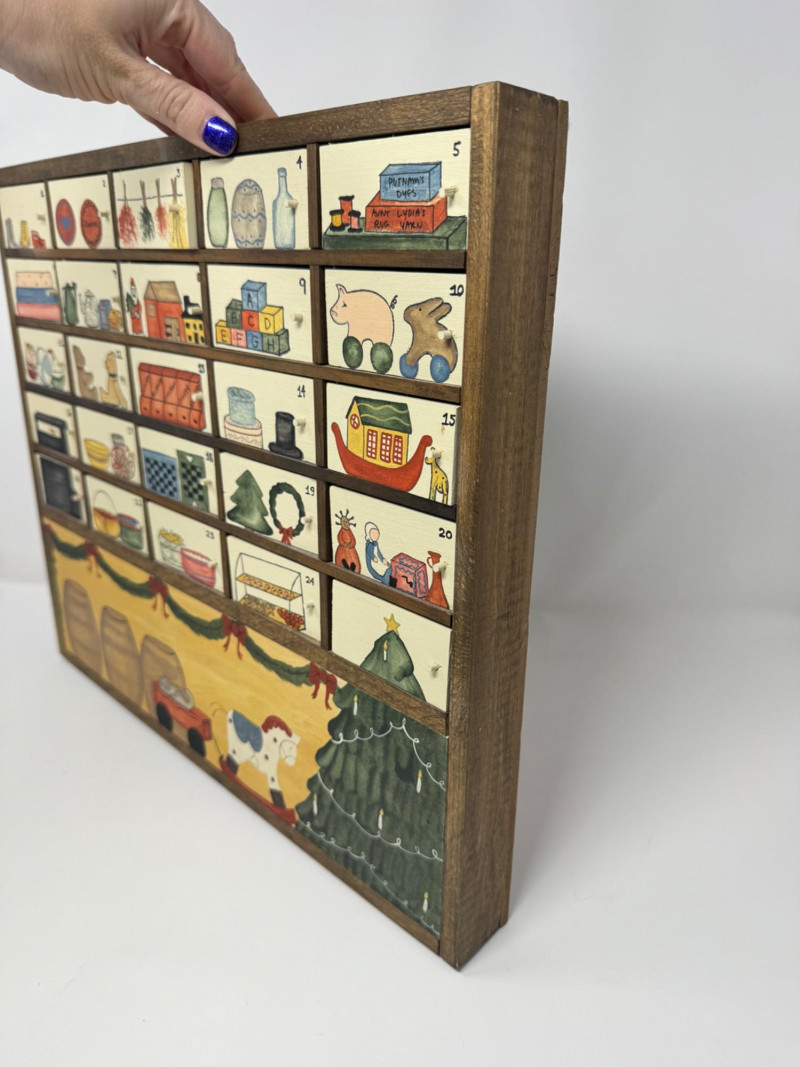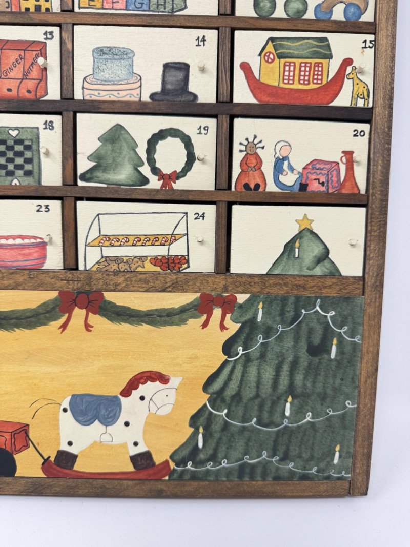 Hand-Painted Wooden Advent Calendar – 25 Drawer Wall Hanging.