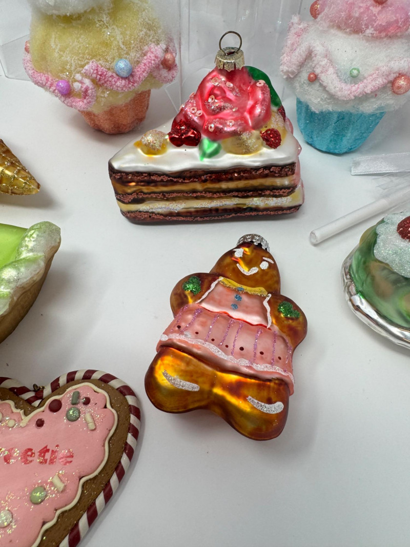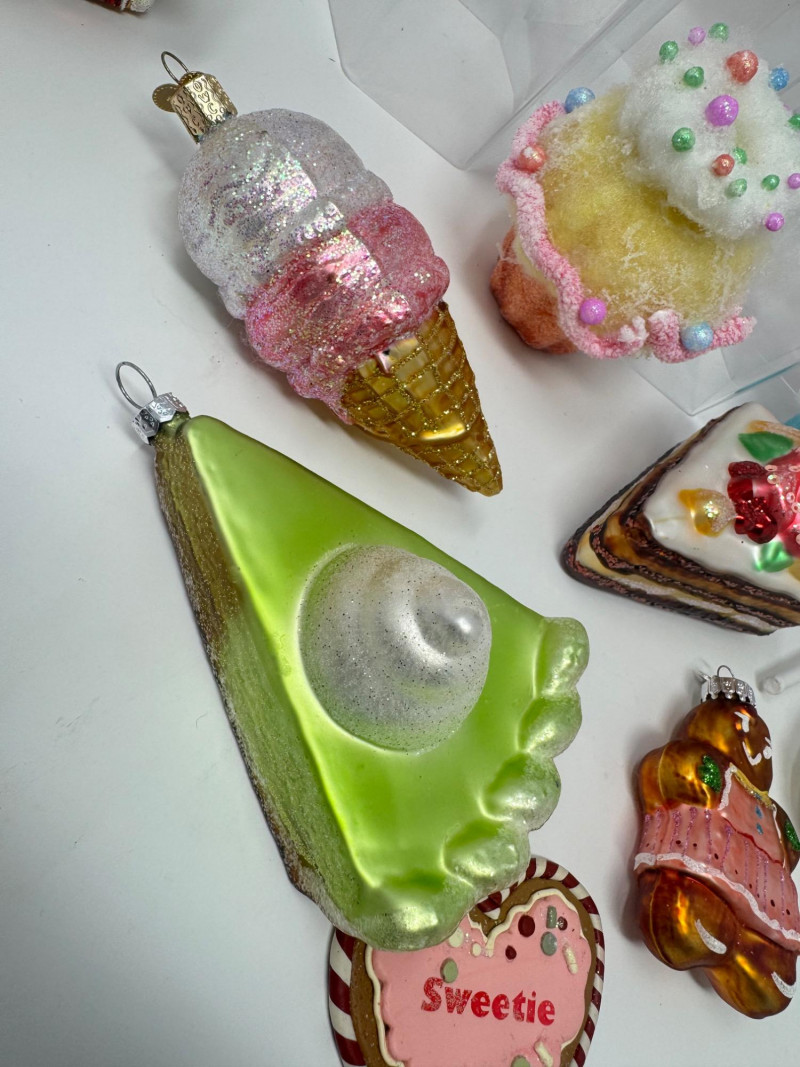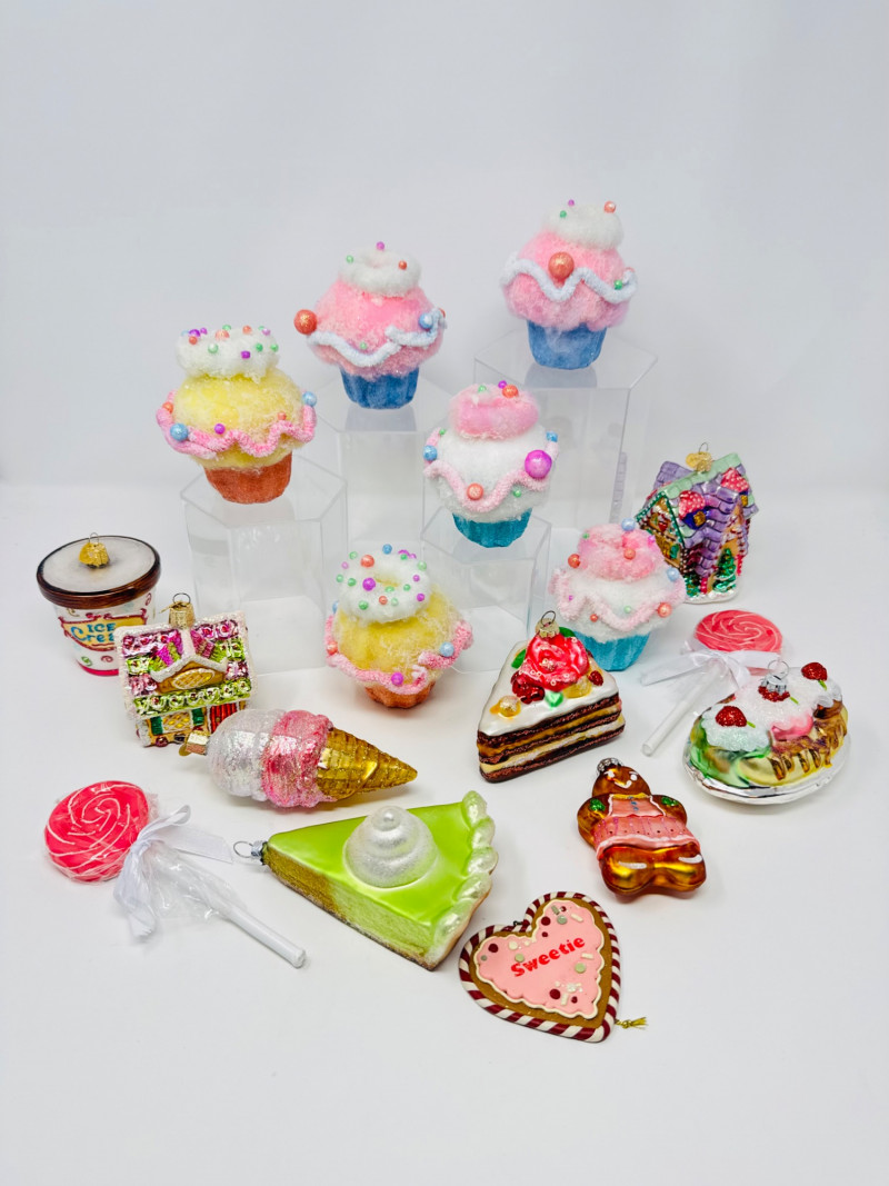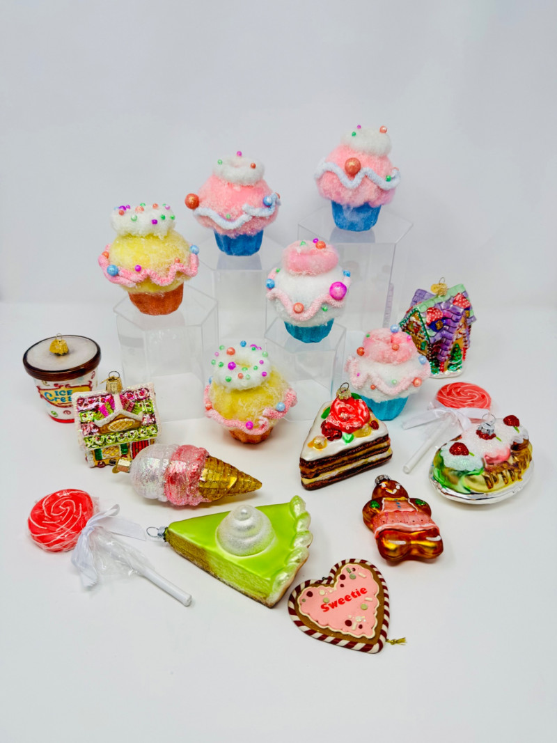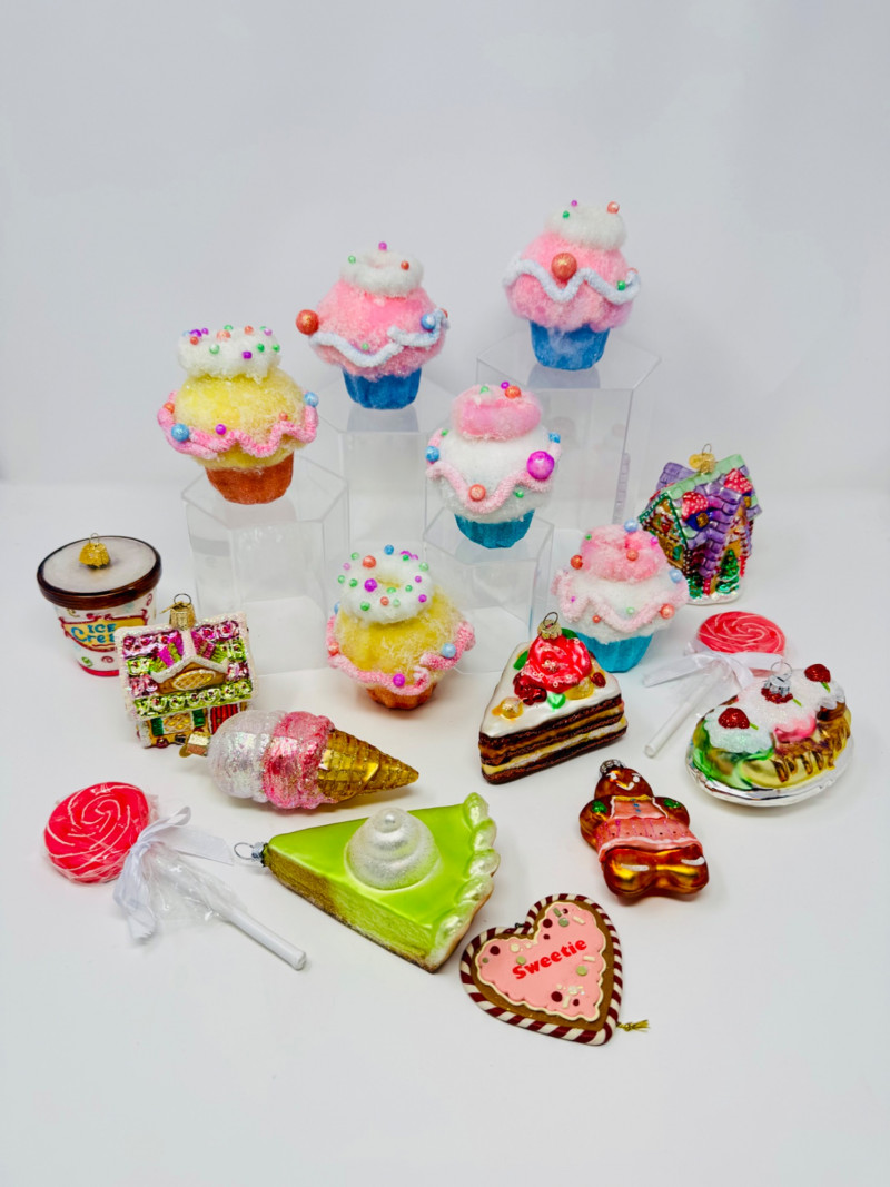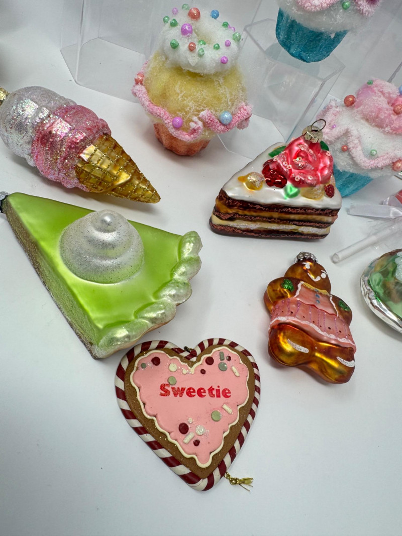 Set of 17 Sweet Treat Ornaments – Glass, Wax & Cupcake Décor.