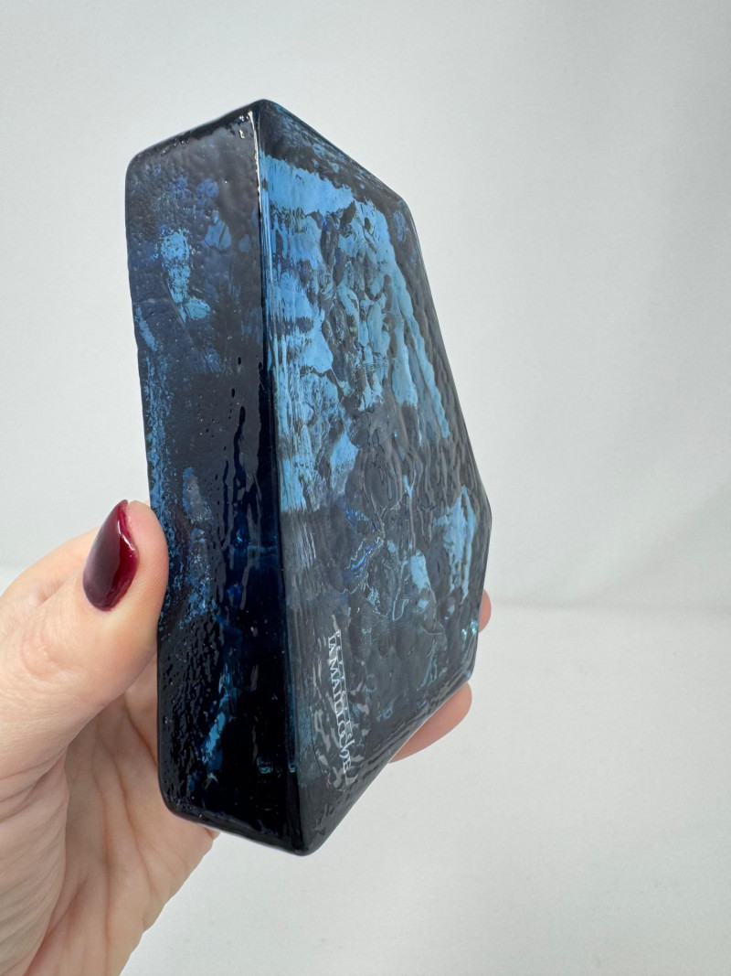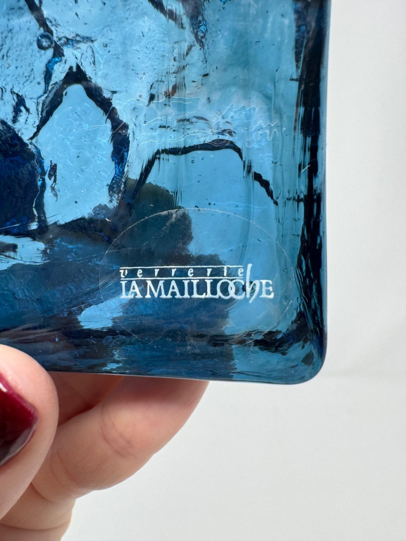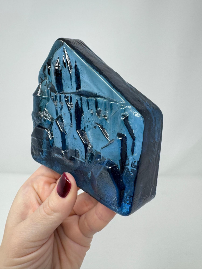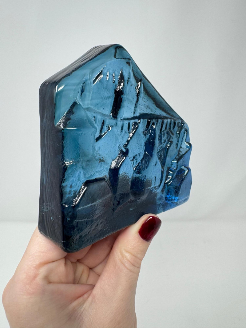 Verrerie La Mailloche Blue Art Glass Paperweight Town Scene.