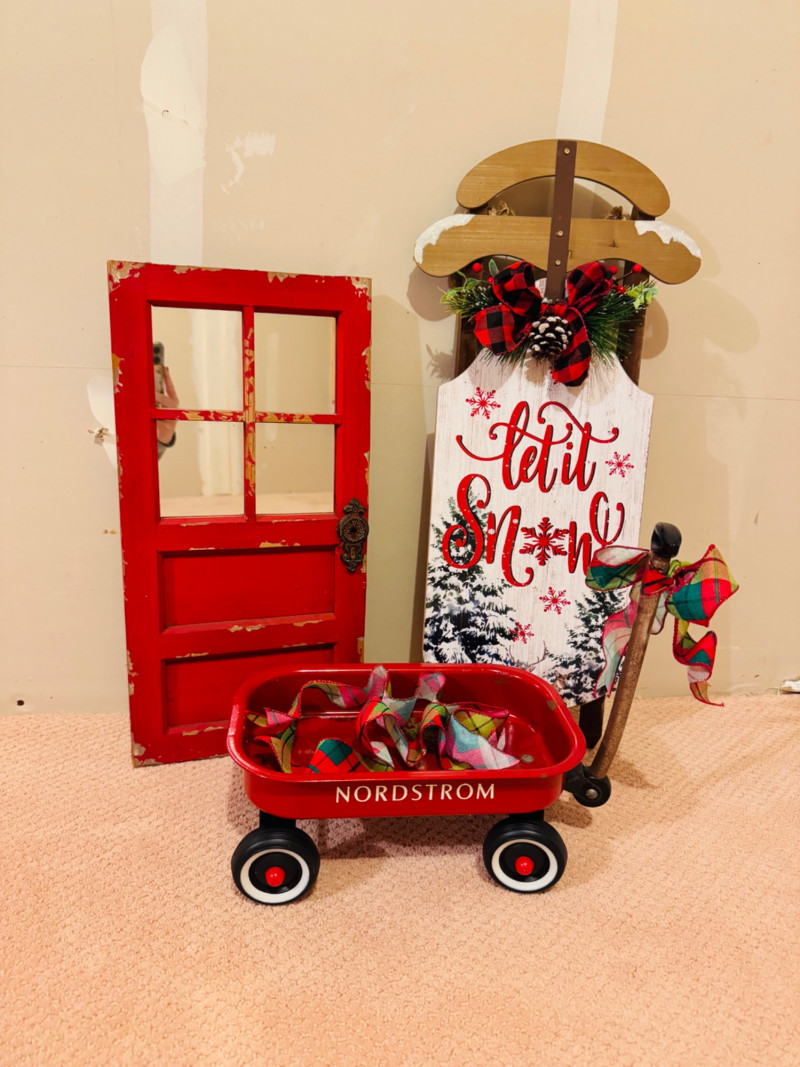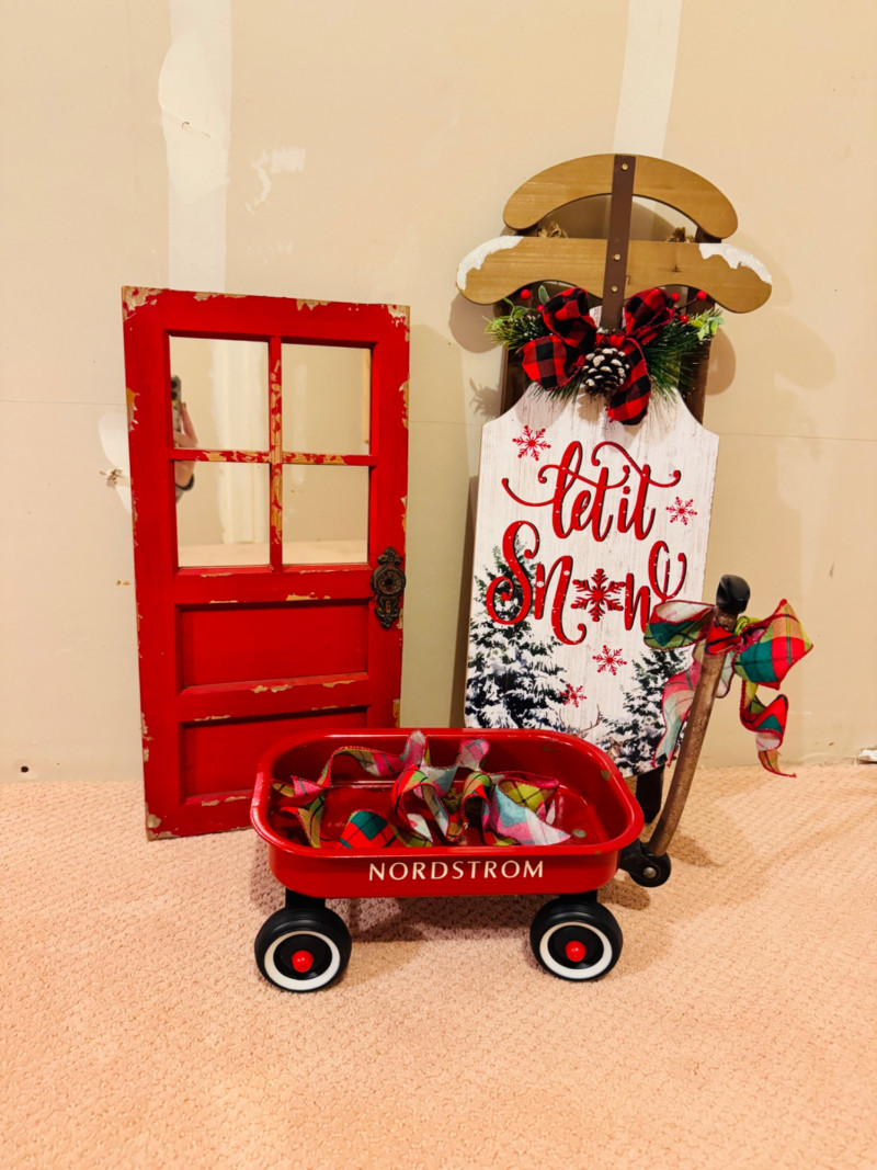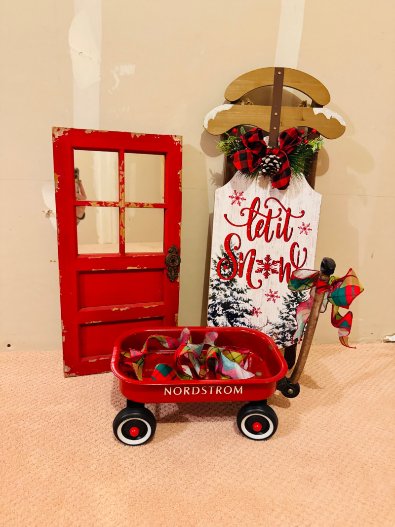 Vintage Nordstrom Metal Toy Wagon + Rustic Holiday Decor Set.