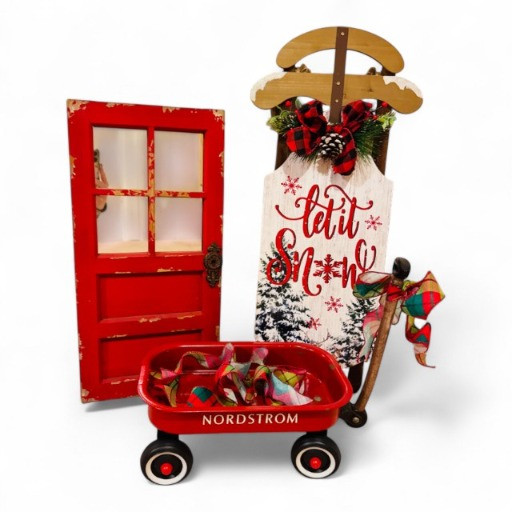 Lot # 34 - Vintage Nordstrom Metal Toy Wagon + Rustic Holiday Decor Set