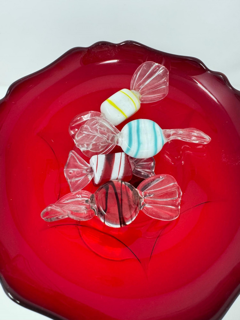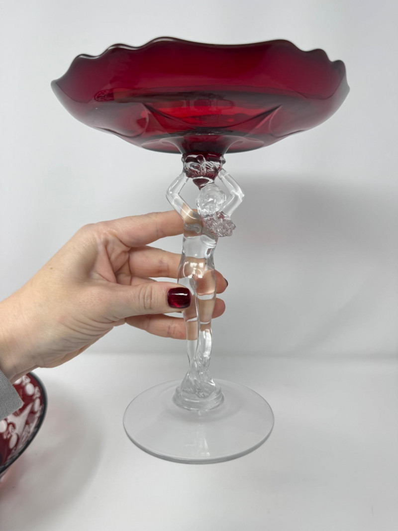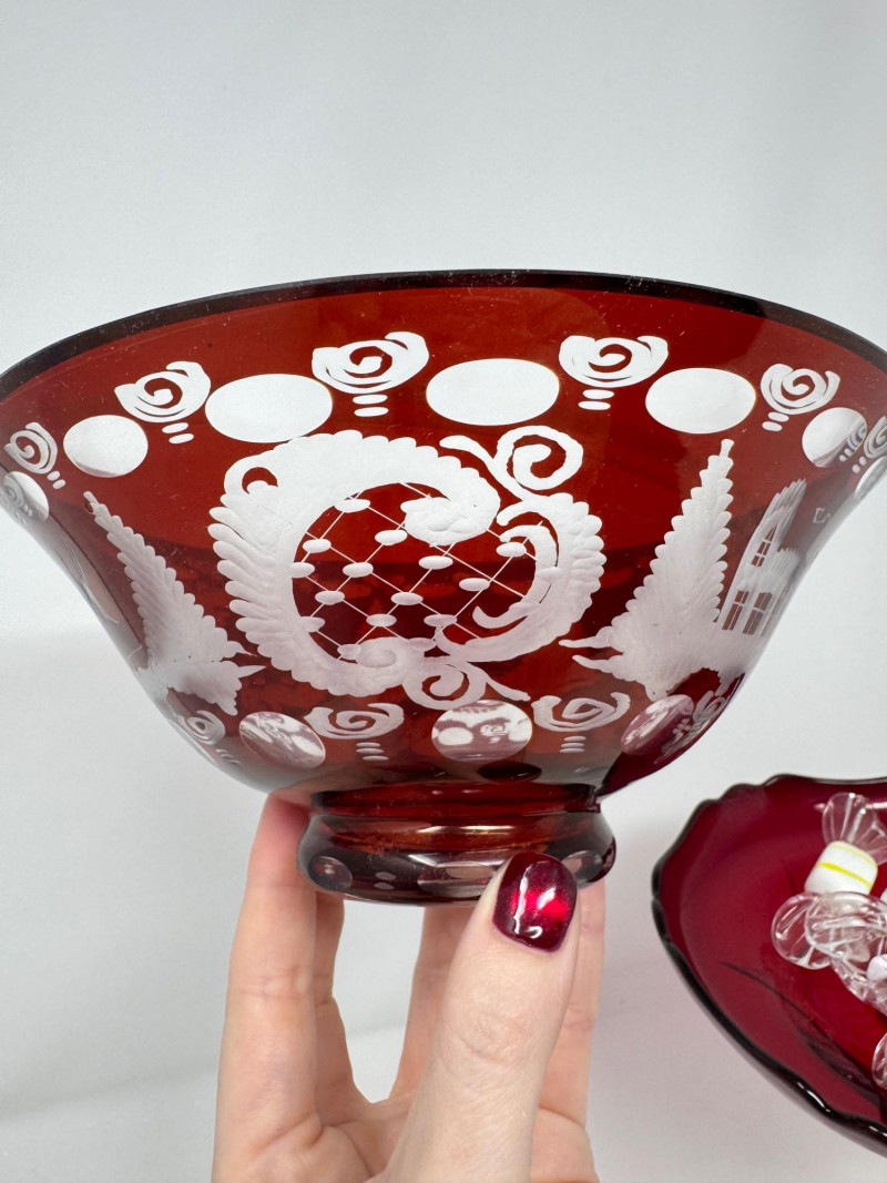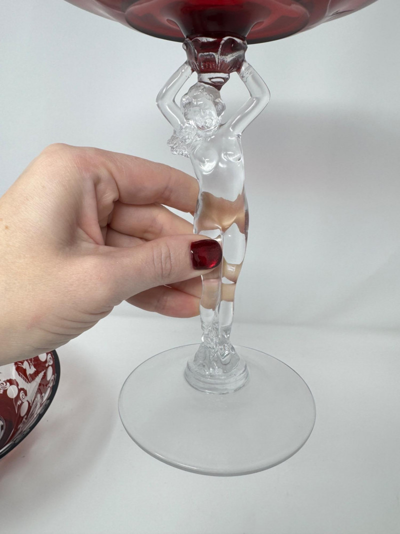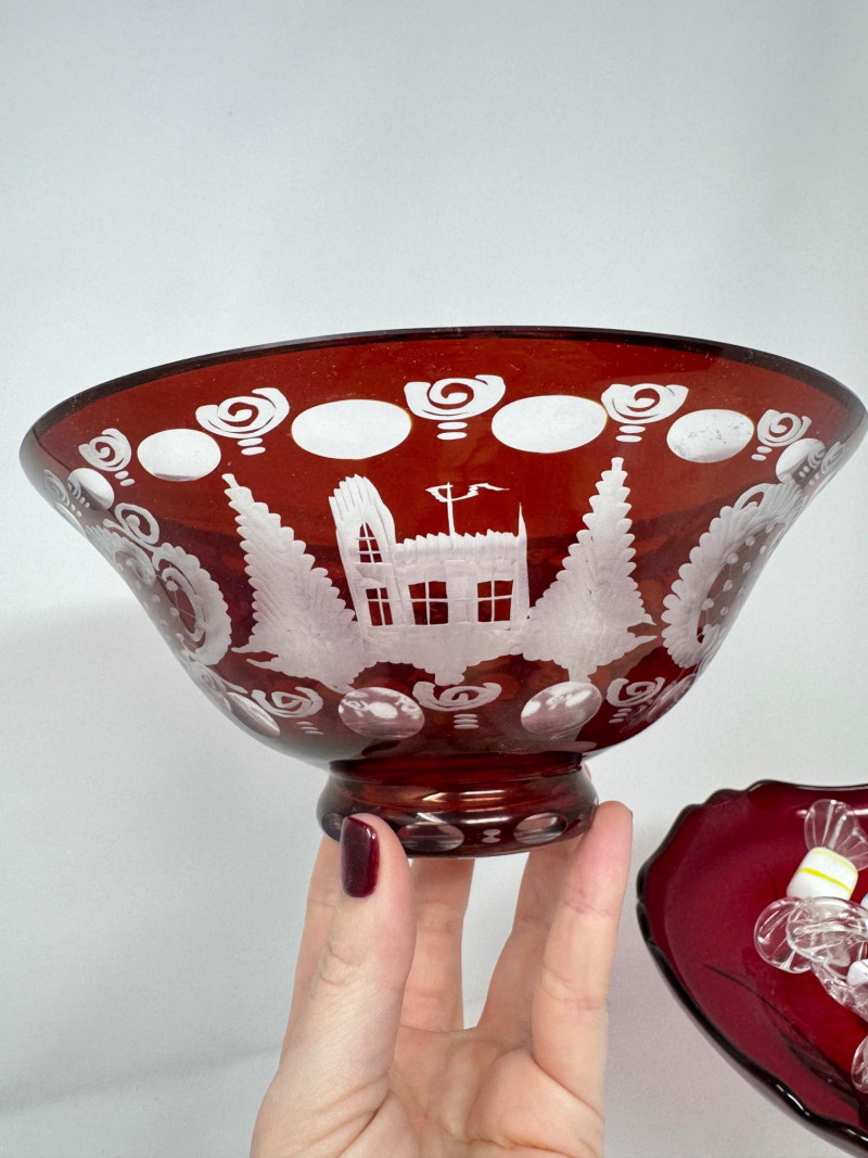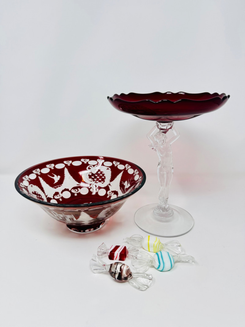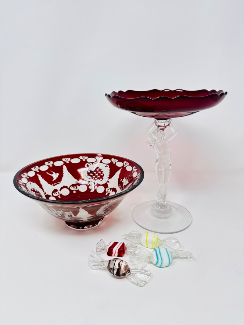 Nude Stem Compote & Bohemian-Style Etched Crystal Bowl w/ Glass Candy.