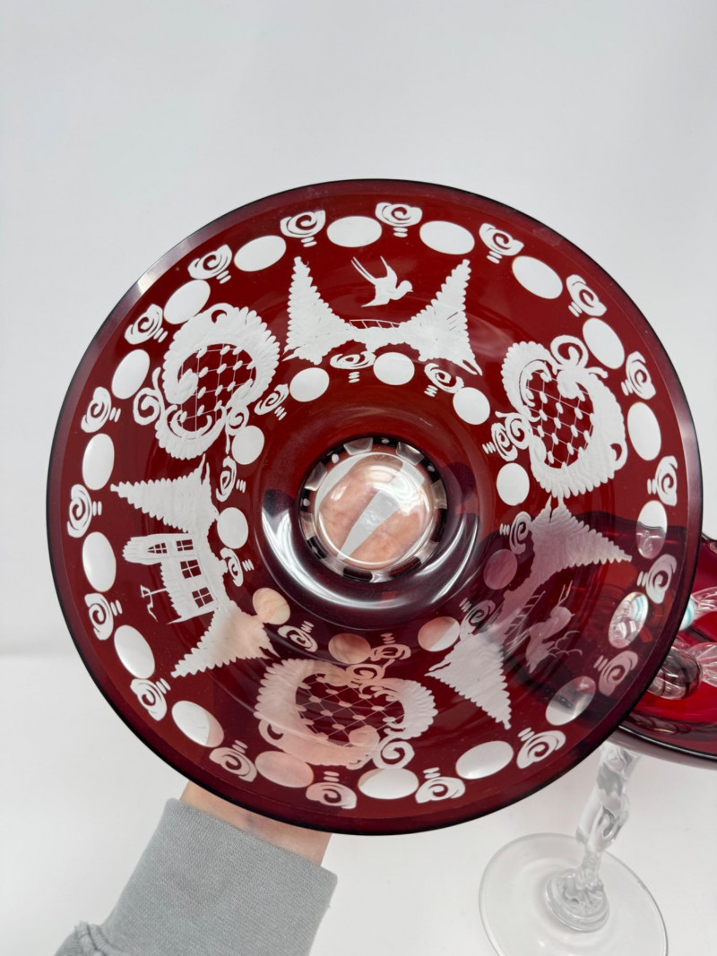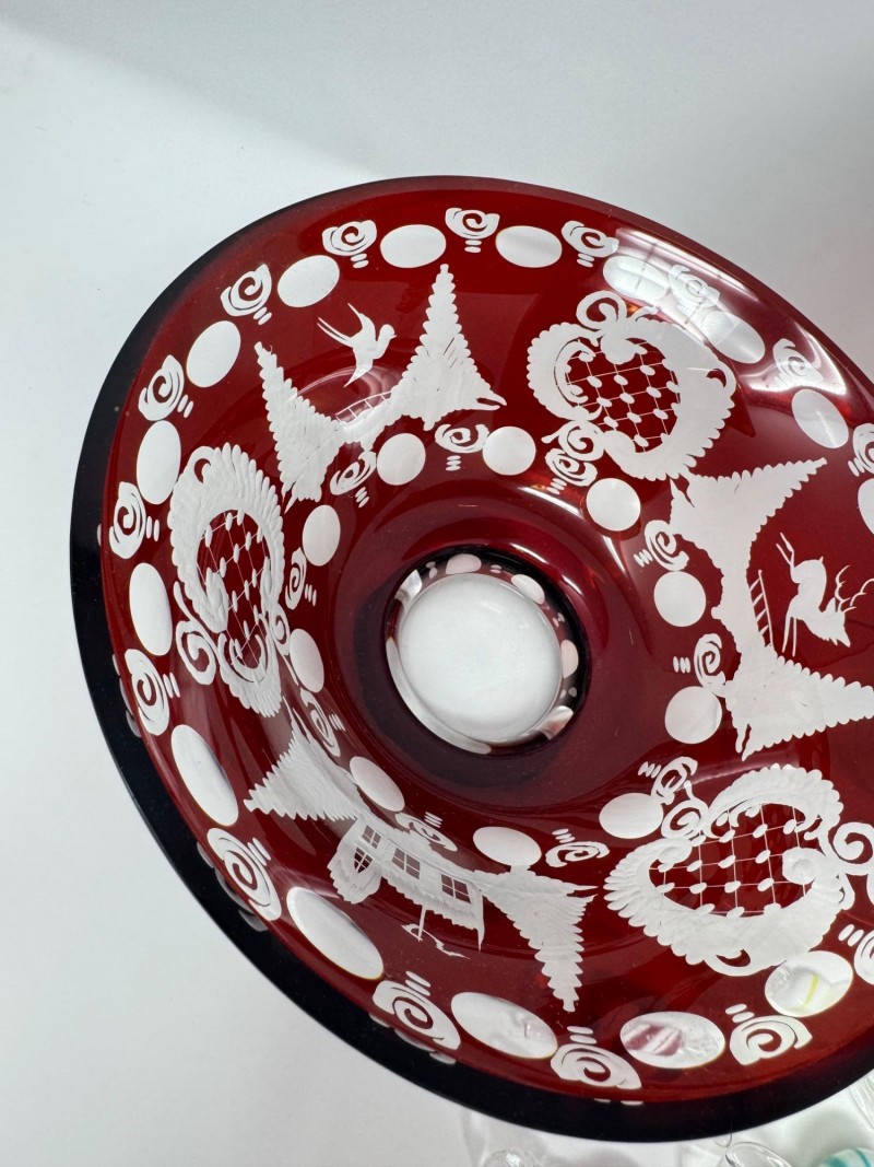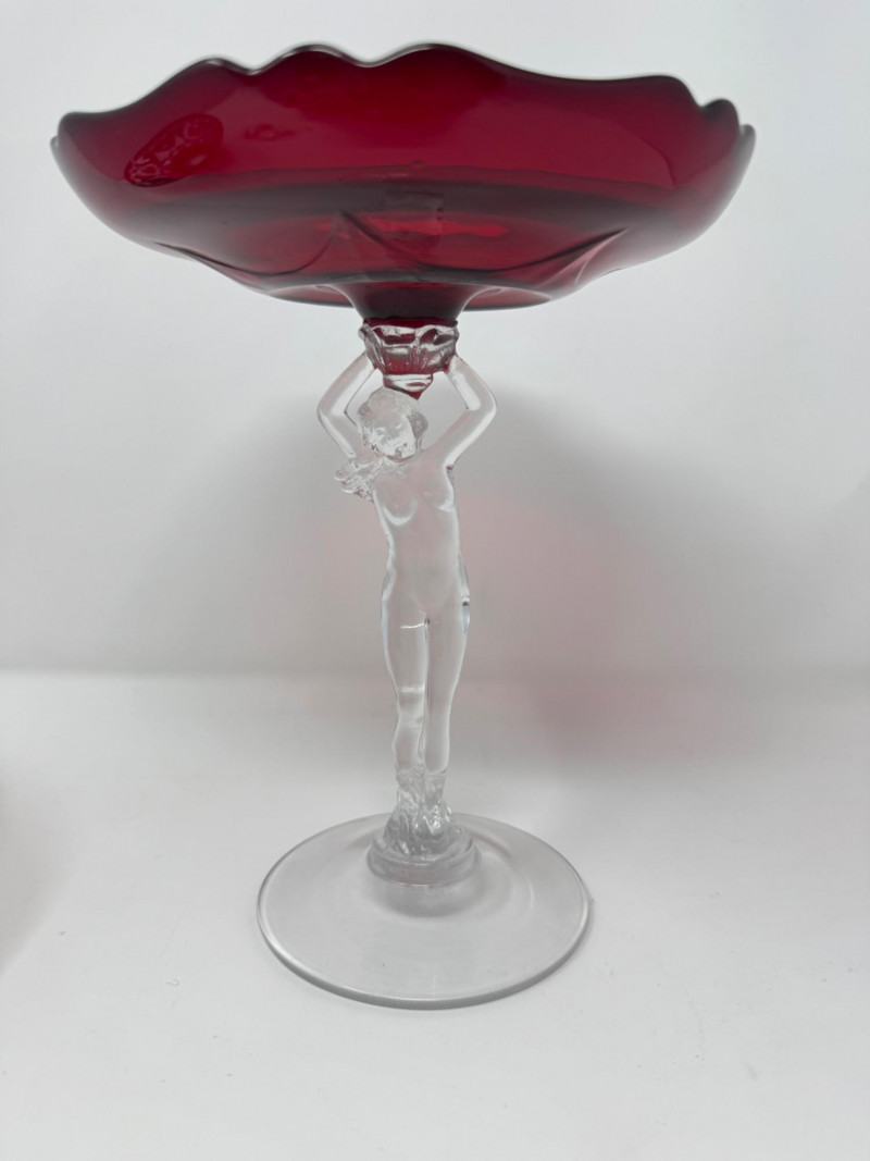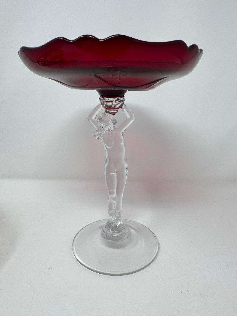 Lot # 36 - Nude Stem Compote & Bohemian-Style Etched Crystal Bowl w/ Glass Candy
