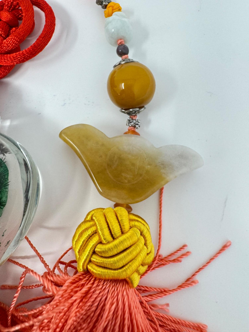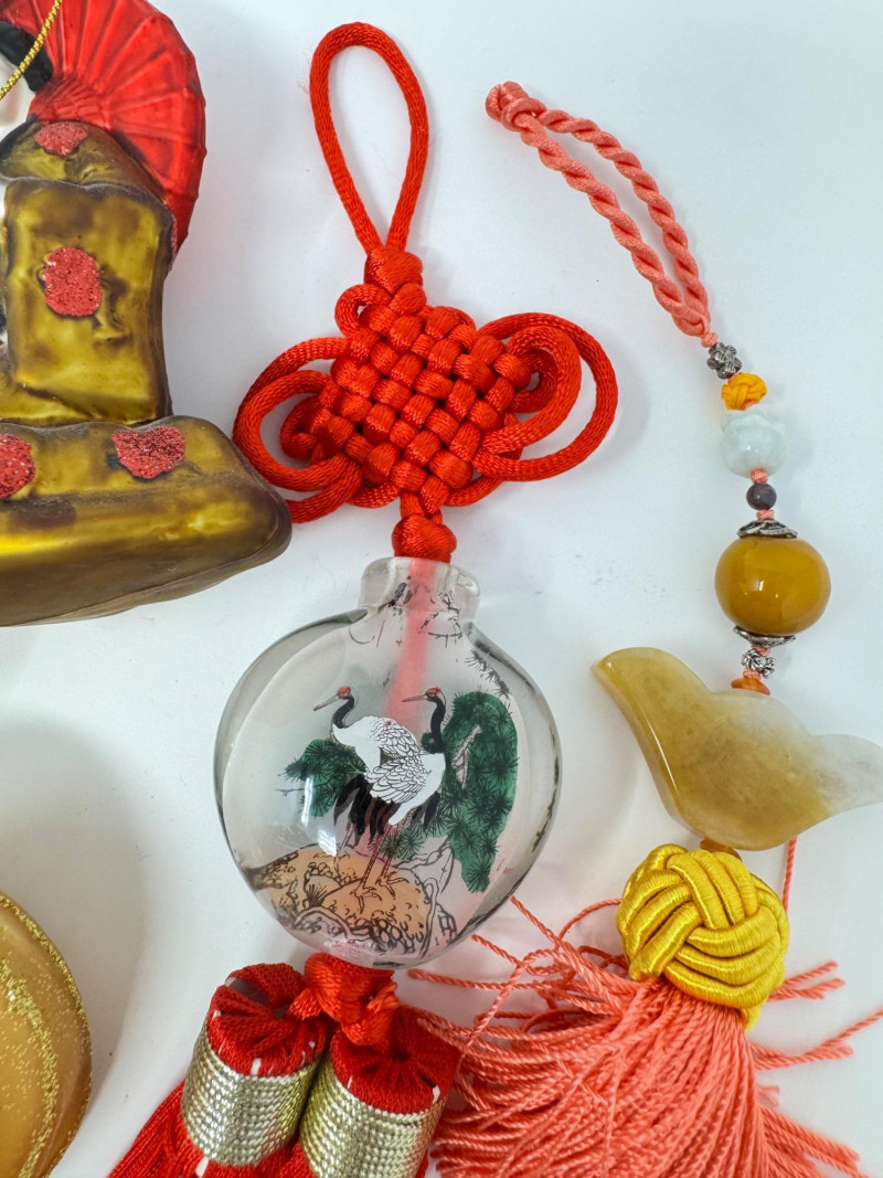 Lot # 40 - Asian-Inspired Ornaments – Blown Glass, Polished Stone & Tassels