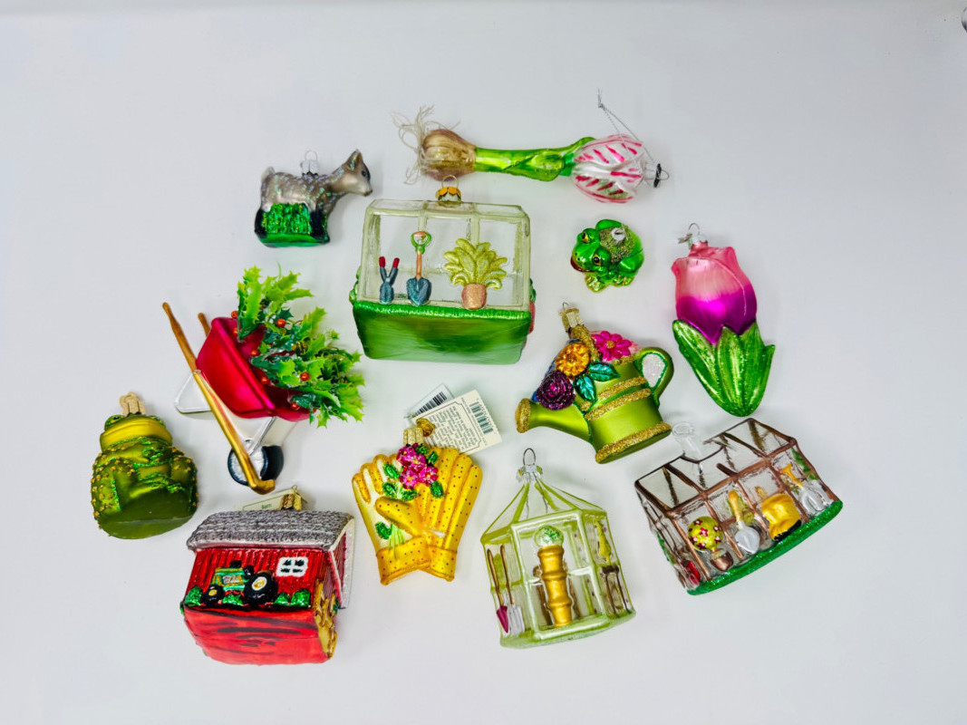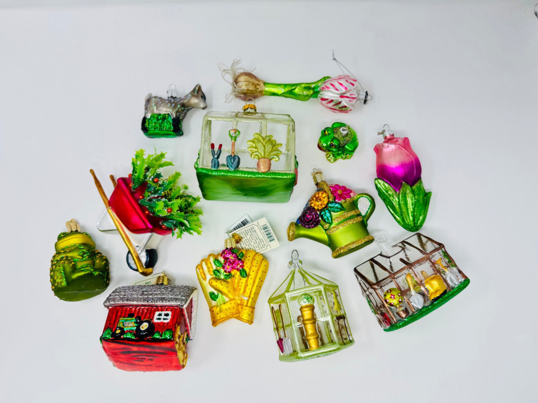 Garden & Greenhouse Ornaments – Blown Glass Gardening Theme.