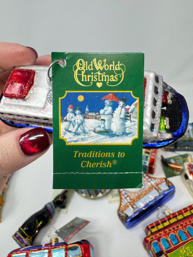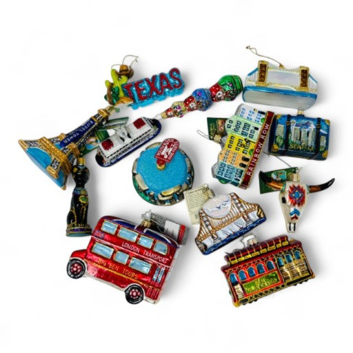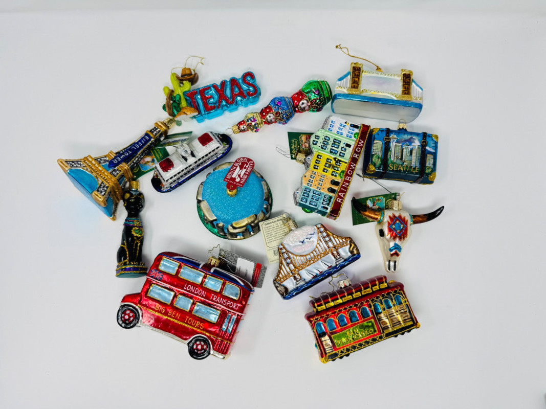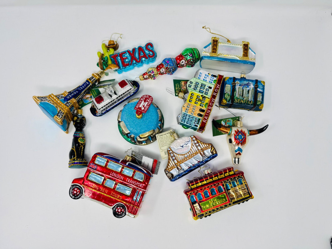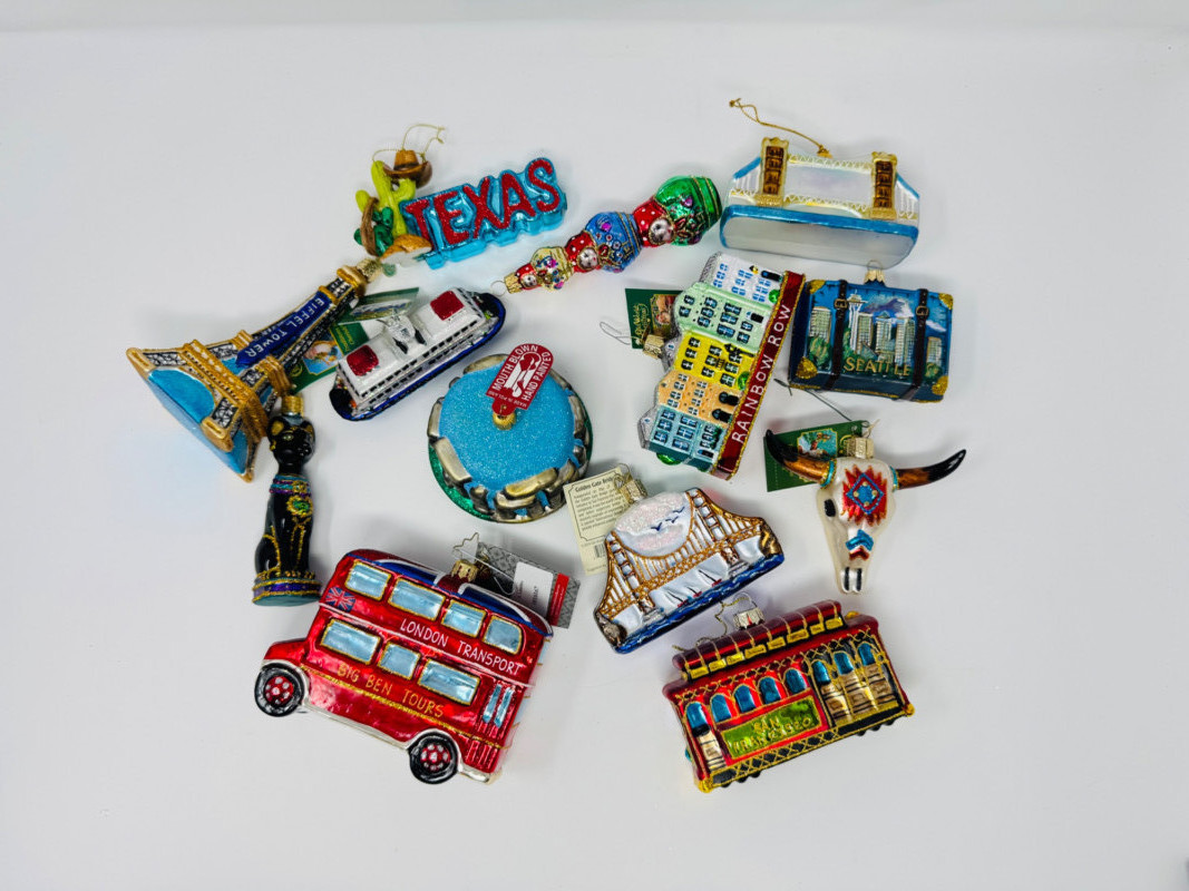 Travel-Themed Blown Glass Ornaments – Radko, Old World Christmas +
